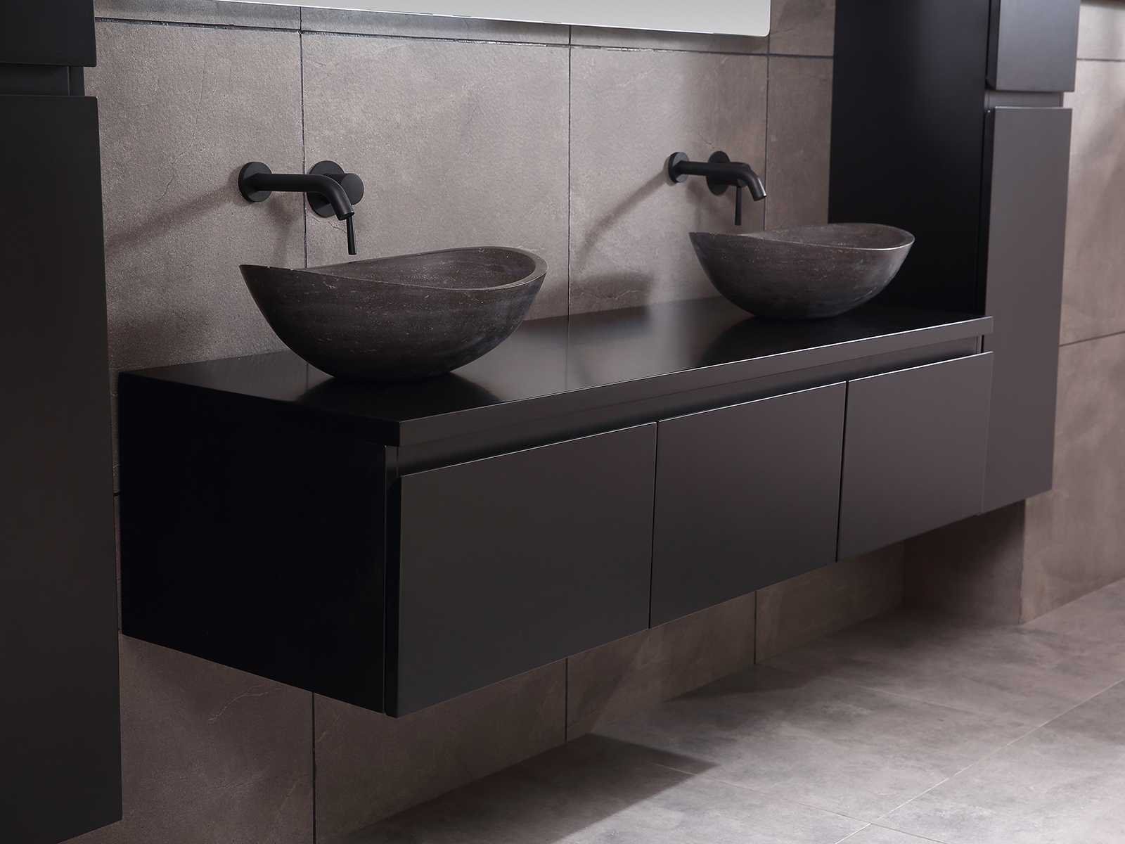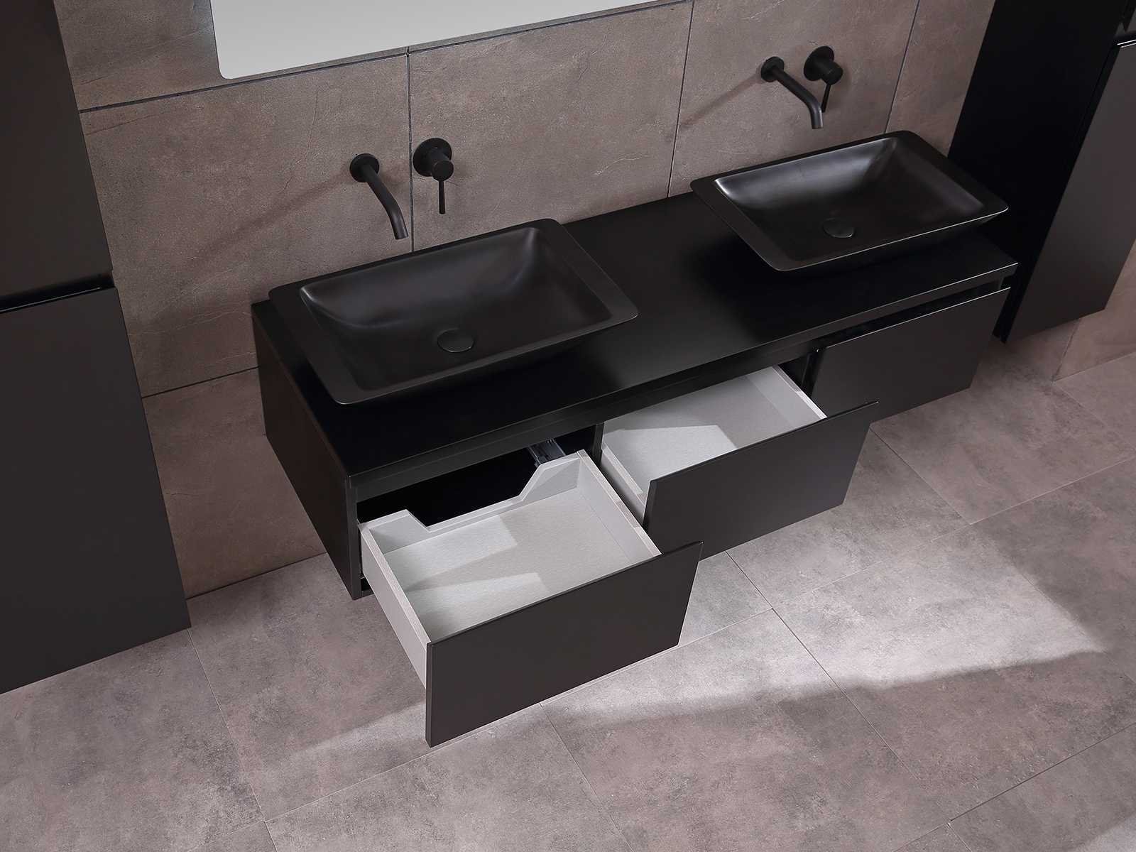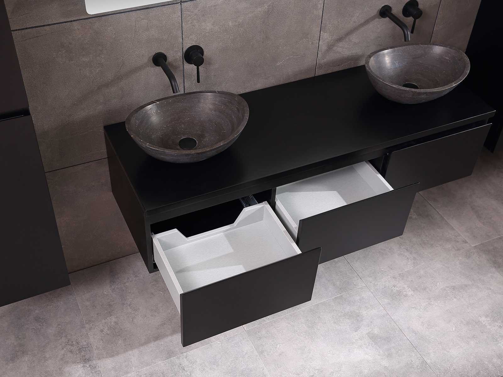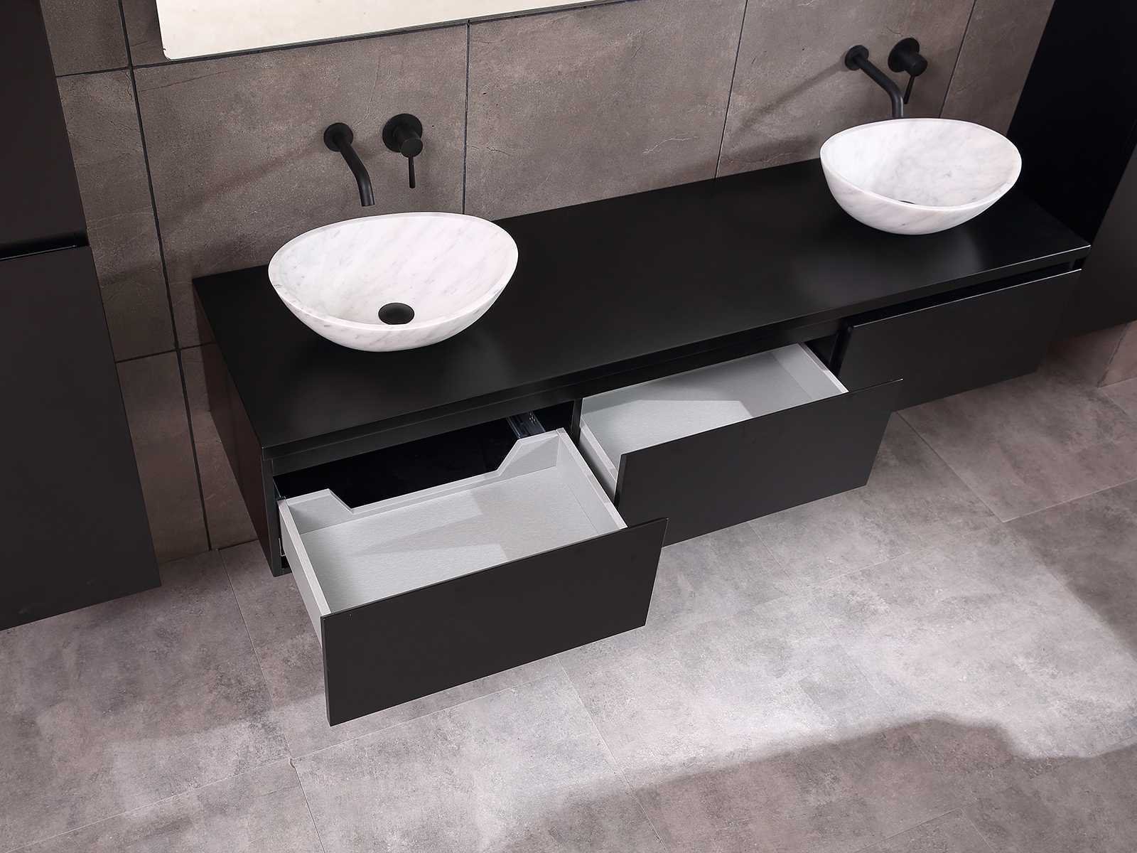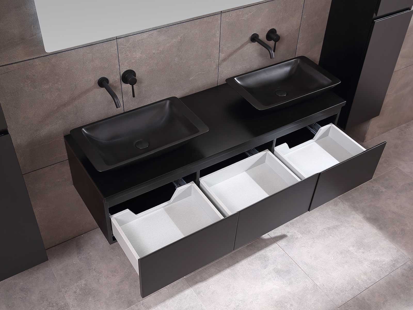 Afmeting meubel bxdxh 150/180x50x35cm (keuze breedte 150 of 180cm graag doorgeven op de afhaaldag - hangkast 35x35x160cm (wordt met 1 hangkast geleverd), kleur mat zwart, materiaal 5-laags multiplex met 3cm eiken top(zeer sterk en vochtbestendig), Hangkast softclose deuren en extra planchets (hangkast kan zowel links als rechts van het meubel worden gehangen), kranen exclusief , Lades 3 stuks met softclose, Wasbakken solid surface, natuursteen of italiaans marmer (keuze uit diverse modellen van de laatste 3 foto's, graag keuze doormailen op info@mawialux.nl), spiegel met verwarming/bluetooth/radio/klok en vergrootglas met ledverlichting rondom aan de achterkant met 3 verstelbare kleuren led 3000/4500/6000k led-dioden (geel/blauw/wit licht) met de volgende opties: digitaal display, geïntegreerde vergrotingsspiegel van 10cm doorsnede met ledverlichting(vergroot 3x), bluetooth met speaker, digitale klok, digitale temperatuur aanduiding, 220volt stekker(plug and play), verwarming ter voorkoming van condens, 1.5mm kopervrij met explosion-proof laag met dezelfde functie als gehard glas , afvoeren exclusief, Conditie: Nieuw in doos, Bijzonderheden 2 jaar garantie, gaten zijn niet in het topblad voorgeboord zodat u zowel muurkranen als kranen vanaf het blad kunt gebruiken of zelf 1 wastafel in plaats van 2 stuks(gaten boren door een installateur is zelf gemakkelijk uit te voeren), compleet met installatie materiaal, zeer hoge kwaliteit, let op! de hangkast mag geruild worden voor een set kranen en popup afvoeren naar keus of als u een extra hangkast nodig graag op de afhaaldag aangeven voor een passende aanbieding Merk: Mawialux Model: Jeremy Hoogte: 35cm Lengte: 50cm Breedte: 150-180cm Materiaal: 5-laags multiplex met 3cm massief top(zeer sterk en vochtbestendig) Kleur: mat zwart Kraan: exclusief Waskom: Diverse keuzes Spiegel met verlichting: ja Verlichting: ja Onderkast: ja Lades: 3 Softclose: true Bevestigingsmateriaal: true Zijkast: ja 1x