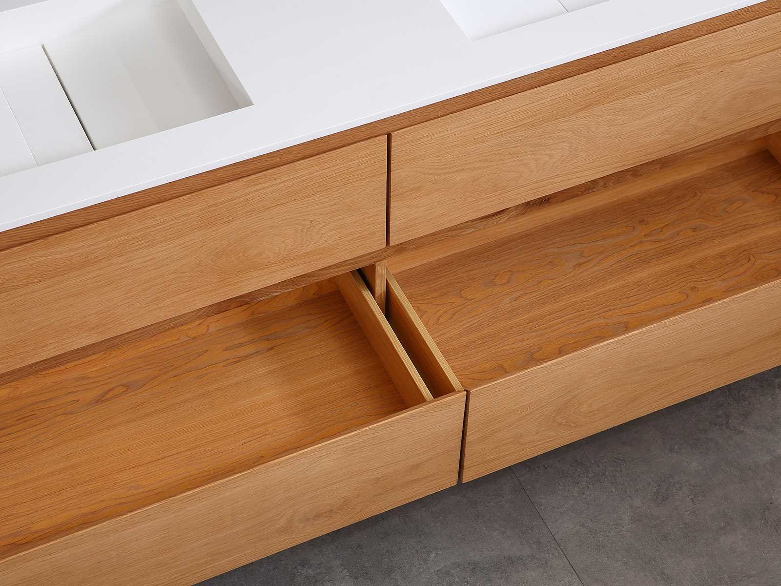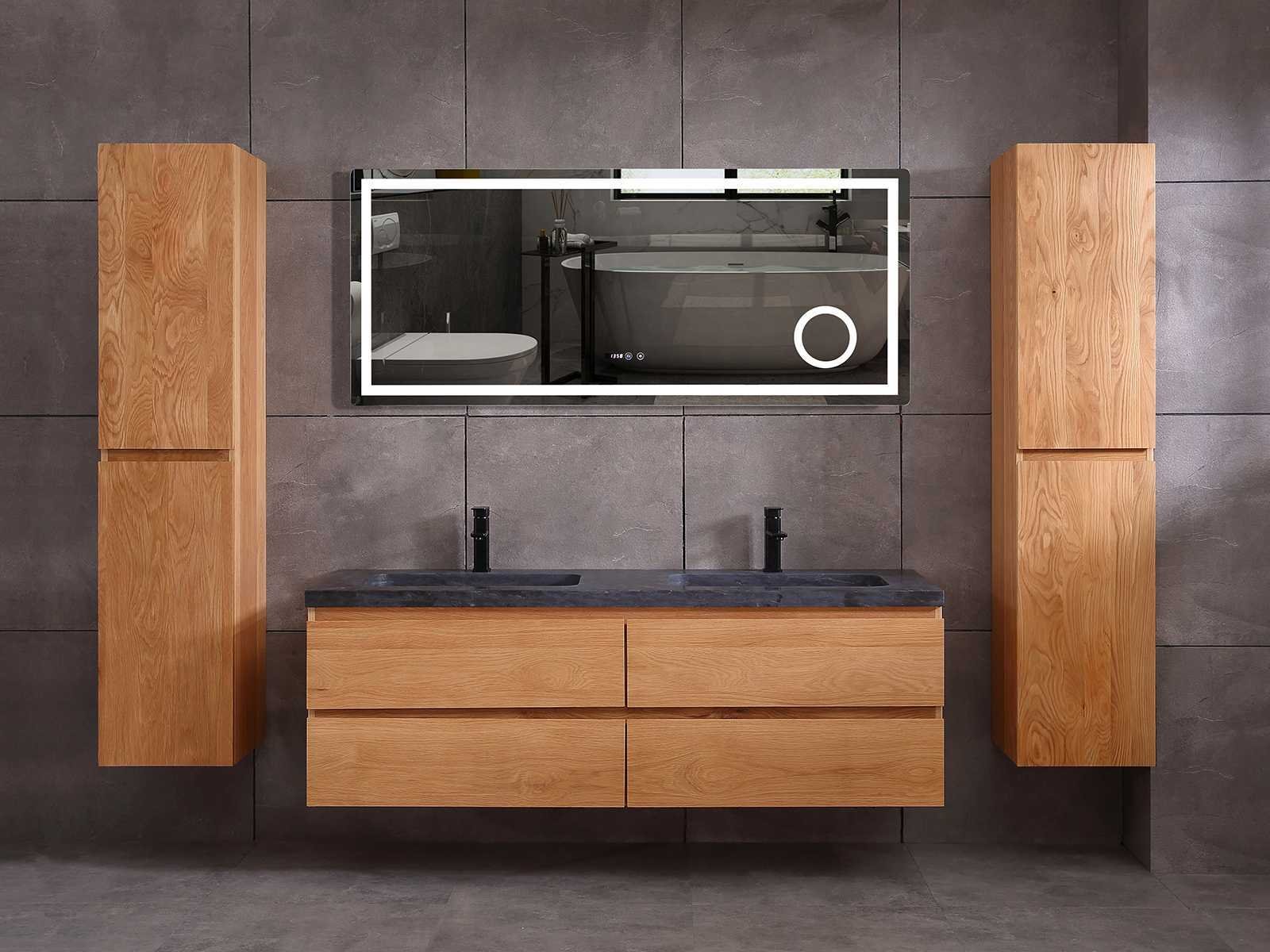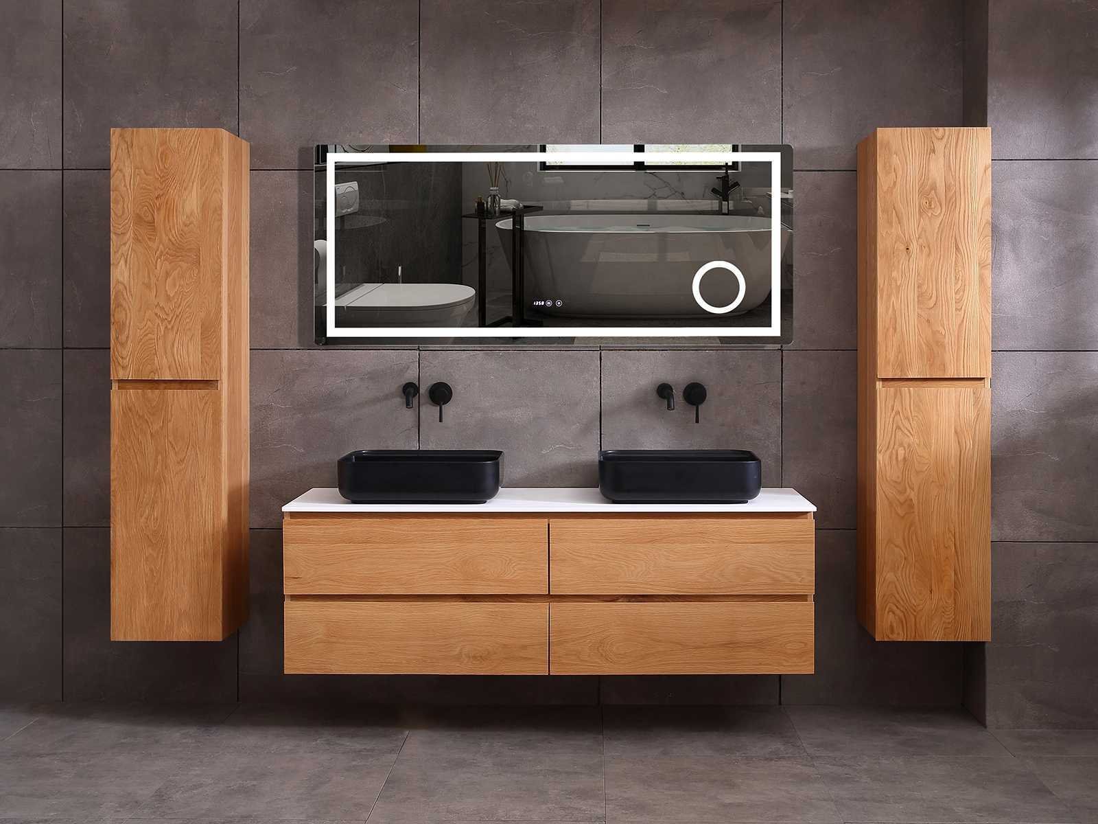 Afmeting meubel bxdxh 160x49x50cm - hangkast 35x35x160cm (1 hangkast zit bij de aankoop), kleur eiken natural, materiaal 2cm massief eiken (front) en 5-laags multiplex(zeer sterk en vochtbestendig) met solid surface topplaat indien gewenst(mat wit of mat zwart), Hangkast softclose deuren en extra planchets (hangkast is universeel en kan zowel links als rechts naast het meubel gehangen worden), kranen exclusief , Lades 4 stuks met softclose, Wasbakken solid surface, natuursteen(met en zonder kraangaten beschikbaar de vaste wastafels) of italiaans marmer (keuze uit diverse modellen en kleuren van de laatste foto's graag aangeven per email op info@mawialux.nl), led spiegel met verwarming/radio/klok en vergrootglas met ledverlichting rondom aan de voorkant met 3 verstelbare kleuren led 3000/4500/6000k led-dioden (geel/blauw/wit licht) met de volgende opties digitaal display, geïntegreerde vergrotingsspiegel van 10cm doorsnede met ledverlichting(vergroot 3x), digitale klok, digitale temperatuur aanduiding, 220volt stekker(plug and play), afvoeren exclusief, Conditie: Nieuw in doos, Bijzonderheden 2 jaar garantie, gaten zijn niet in het topblad voorgeboord in u voor deze keuze gaat zodat u zowel muurkranen als kranen vanaf het blad kunt gebruiken of zelf 1 wastafel in plaats van 2 stuks(gaten boren is geen enkel probleem en zeer gemakkelijk uit te voeren bij solid surface) compleet met installatiekit, natuursteen wastafels zijn behandeld met coating, zeer hoge kwaliteit, let op! de hangkast mag geruild worden voor een set kranen en popup afvoeren naar keus of als u een extra hangkast nodig graag per email aangeven voor een passende aanbieding Merk: Mawialux Model: Brandon Hoogte: 50cm Lengte: 49cm Breedte: 160cm Materiaal: Eiken Kleur: Eiken natural Kraan: exclusief Wastafel: diverse keuzes Waskom: diverse keuzes Spiegel met verlichting: ja Verlichting: ja Lades: 4 Softclose: true Bevestigingsmateriaal: true Zijkast: ja 1x