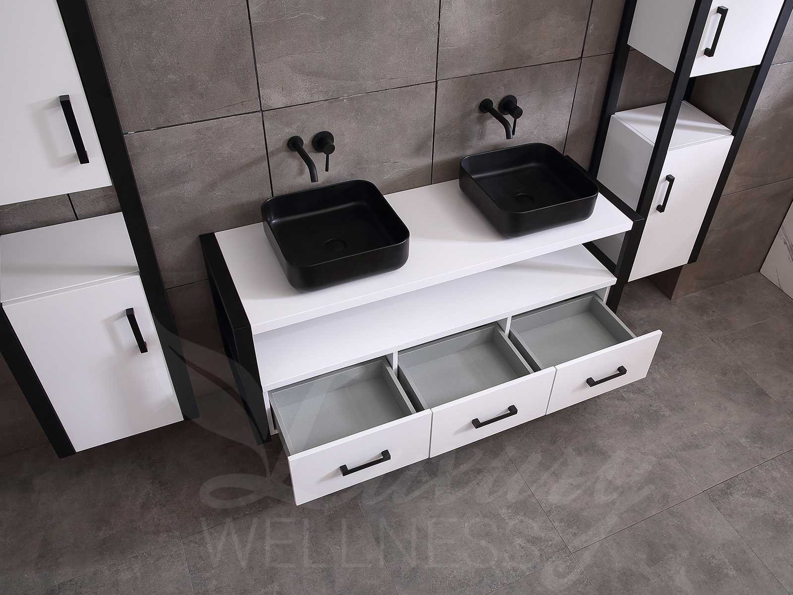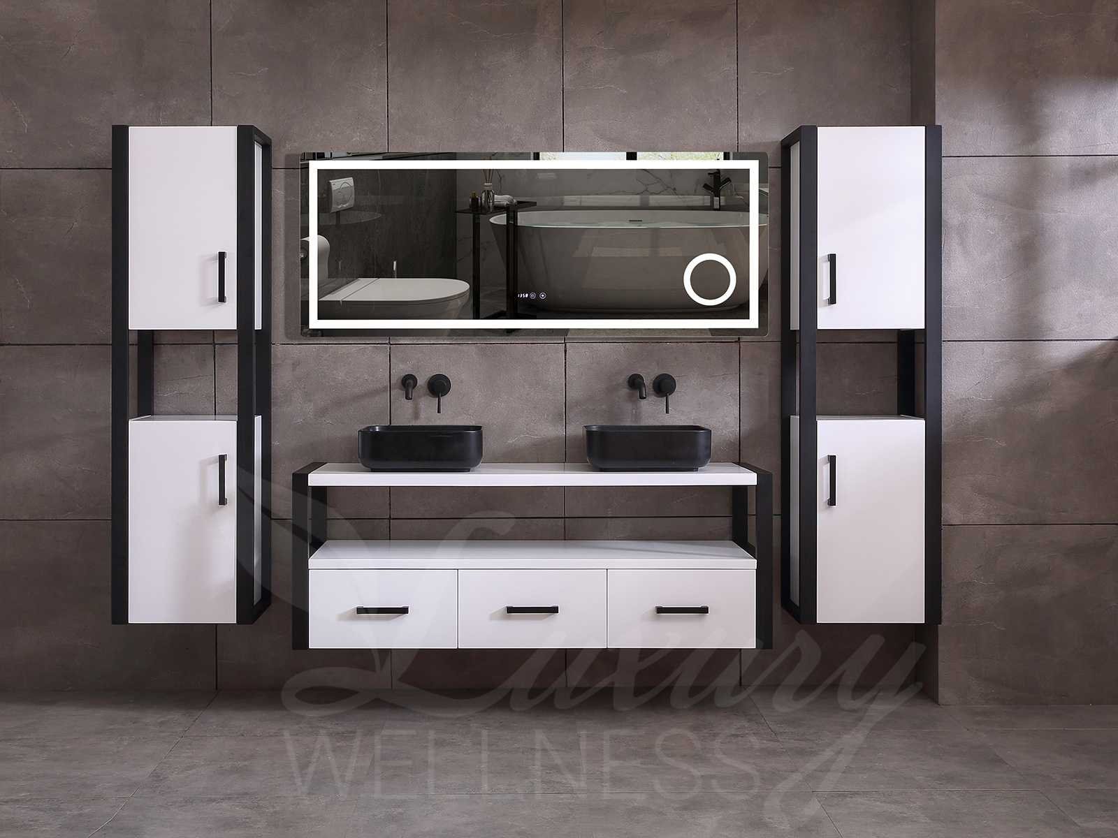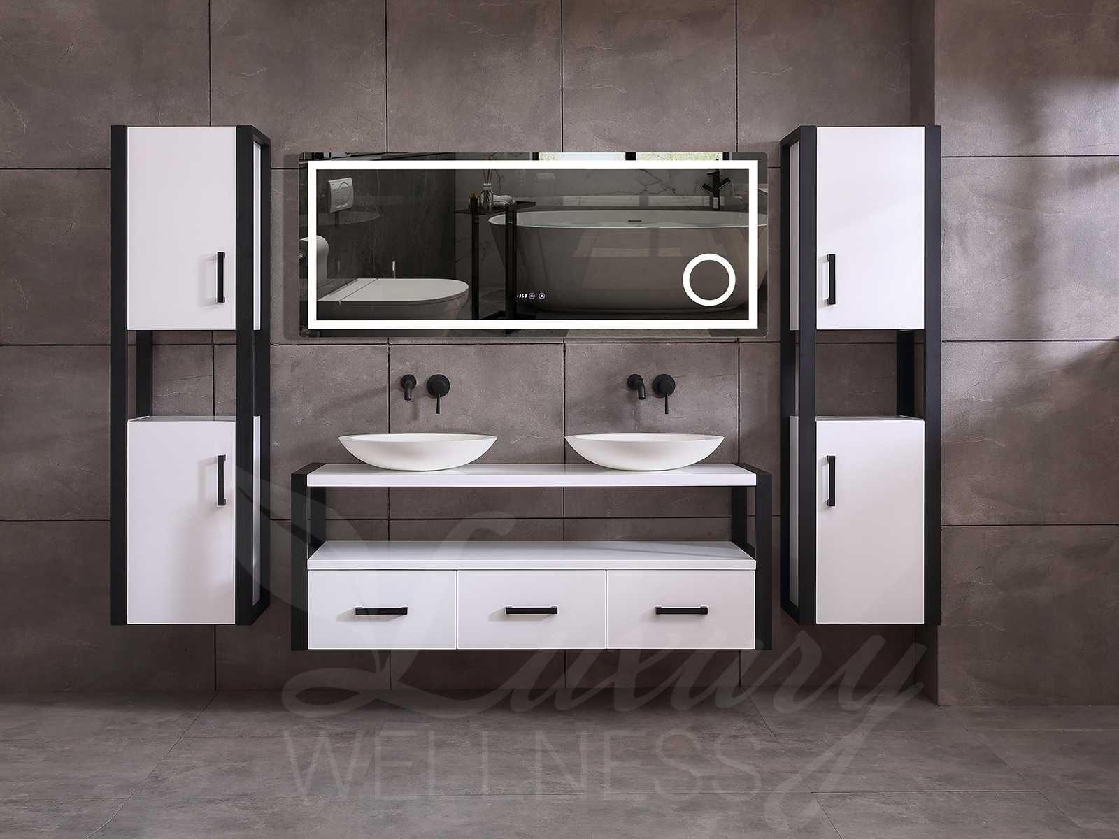 Afmeting meubel bxdxh 150x50x55cm - hangkast 35x35x160cm, kleur mat wit, materiaal 5-laags multiplex(zeer sterk en vochtbestendig), Hangkasten softclose deuren en extra planchets (hangkast is universeel en kan zowel links als rechts naast het meubel gehangen worden), kranen exclusief , Lades 2 stuks met softclose, Wastafel natuursteen of solid surface (keuze uit diverse modellen van de laatste foto's, kraangaten zijn nog niet in het top voorgeboord zodat u muurkranen of kranen uit het blad kan gebruiken, led spiegel met verwarming en ledverlichting, 220volt stekker(plug and play), verwarming ter voorkoming van condens, 1.5mm kopervrij met explosion-proof laag met dezelfde functie als gehard glas(de spiegel mag geruild worden voor een ander model/type), afvoeren exclusief, Conditie: Nieuw in doos, Bijzonderheden 2 jaar garantie, compleet met installatie materiaal, zeer hoge kwaliteit, let op! de hangkast mag geruild worden voor een set kranen en popup afvoeren naar keus of als u een extra hangkast nodig graag op de afhaaldag aangeven voor een passende aanbieding Merk: Mawialux Model: Philip Hoogte: 55cm Lengte: 50cm Breedte: 150cm Materiaal: 5-laags multiplex Kleur: Mat wit Kraan: exclusief Wastafel: diverse keuzes Waskom: diverse keuzes Spiegel met verlichting: ja Verlichting: ja Lades: 3 Softclose: true Bevestigingsmateriaal: true Zijkast: ja 1x Afmeting hangkast: LxBxH 35x35x160