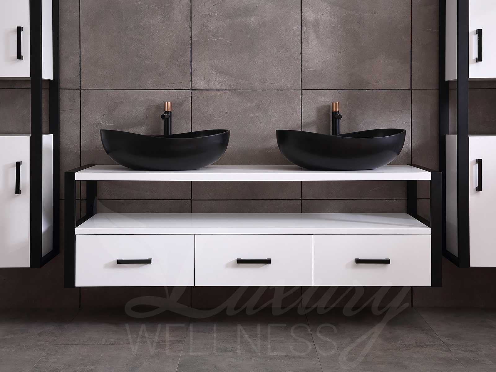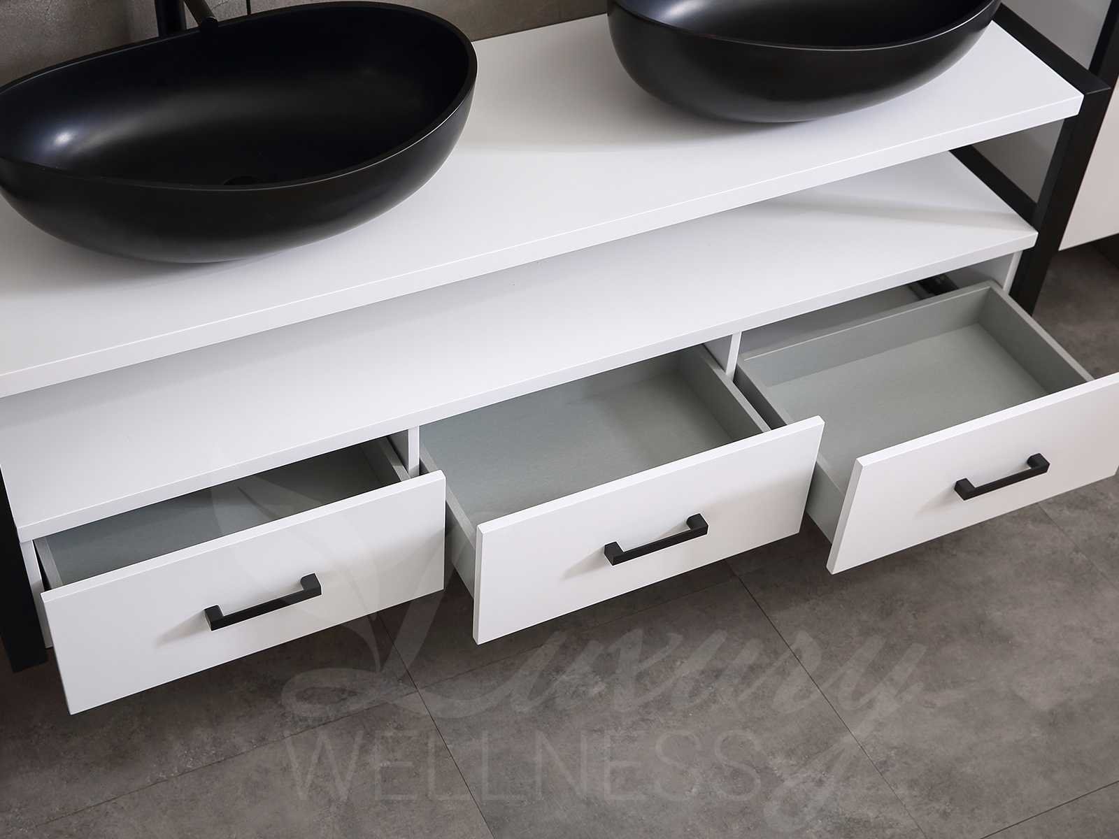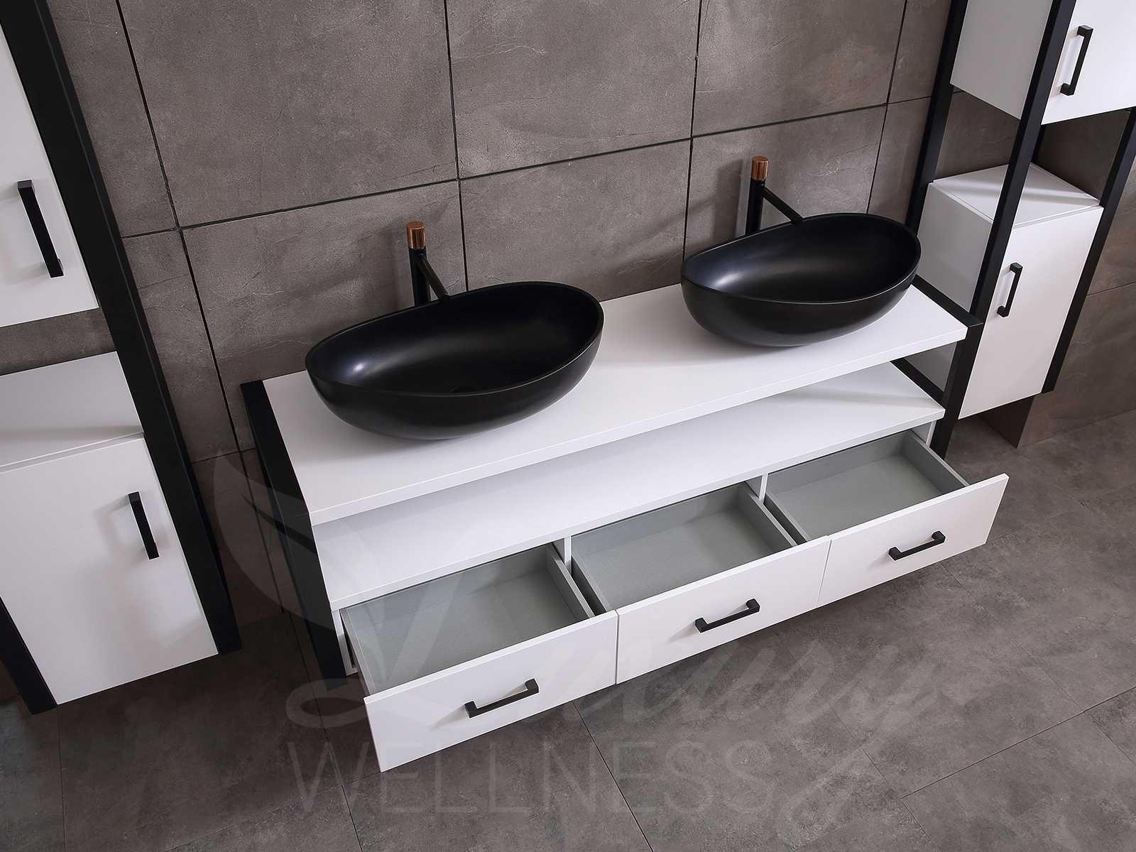 Afmeting meubel bxdxh 150x50x55cm - hangkast 35x35x160cm, kleur mat wit, materiaal 5-laags multiplex(zeer sterk en vochtbestendig), Hangkasten softclose deuren en extra planchets (hangkast is universeel en kan zowel links als rechts naast het meubel gehangen worden), kranen exclusief , Lades 2 stuks met softclose, Wastafel natuursteen of solid surface (keuze uit diverse modellen van de laatste foto's, kraangaten zijn nog niet in het top voorgeboord zodat u muurkranen of kranen uit het blad kan gebruiken, led spiegel met verwarming en ledverlichting, 220volt stekker(plug and play), verwarming ter voorkoming van condens, 1.5mm kopervrij met explosion-proof laag met dezelfde functie als gehard glas(de spiegel mag geruild worden voor een ander model/type), afvoeren exclusief, Conditie: Nieuw in doos, Bijzonderheden 2 jaar garantie, compleet met installatie materiaal, zeer hoge kwaliteit, let op! de hangkast mag geruild worden voor een set kranen en popup afvoeren naar keus of als u een extra hangkast nodig graag op de afhaaldag aangeven voor een passende aanbieding Merk: Mawialux Model: Philip Hoogte: 55cm Lengte: 50cm Breedte: 150cm Materiaal: 5-laags multiplex Kleur: Mat wit Kraan: exclusief Wastafel: diverse keuzes Waskom: diverse keuzes Spiegel met verlichting: ja Verlichting: ja Lades: 3 Softclose: true Bevestigingsmateriaal: true Zijkast: ja 1x Afmeting hangkast: LxBxH 35x35x160