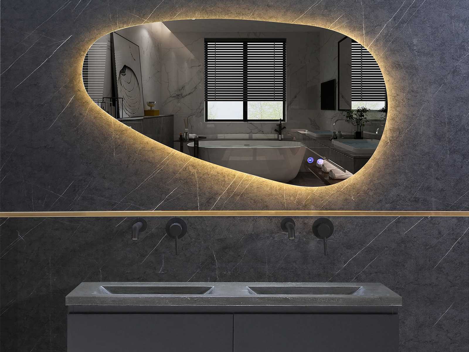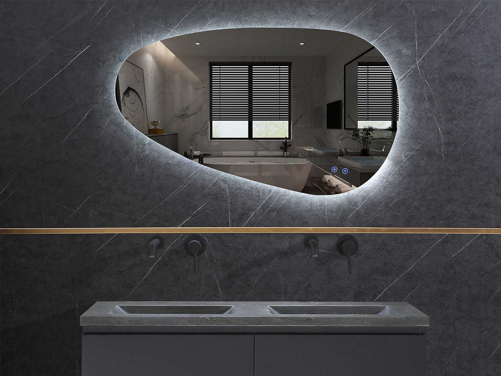 LET OP: keuze uit 3 maten namelijk 120x60 of 120*75 of 130x65 en spiegel is ook in spiegelbeeld verkrijgbaar (met het dikke gedeelte links) keuze graag aangeven op afhaaldag, verwarming, bediening 2x one-touch touchebediening, verlichting 3 verstelbare kleuren led 3000/4500/6000k led-dioden(dimbaar) (geel/blauw/wit licht), voorzien van 4 geïntegreerde ophangpunten, 220volt stekker(plug and play), 1.5mm kopervrij glas met explosion-proof laag, er zitten 4 ophangpunten achter de spiegel waardoor je spiegel zowel horizontaal als verticaal op kunt hangen (past dus zowel op een 80cm als een 50cm breed meubel en diverse andere 1 of 2-persoons meubels), zeer exclusieve spiegel Merk: Mawialux Model: Darla Breedte: 120-130cm Hoogte: 60-75cm Touchscreen: true