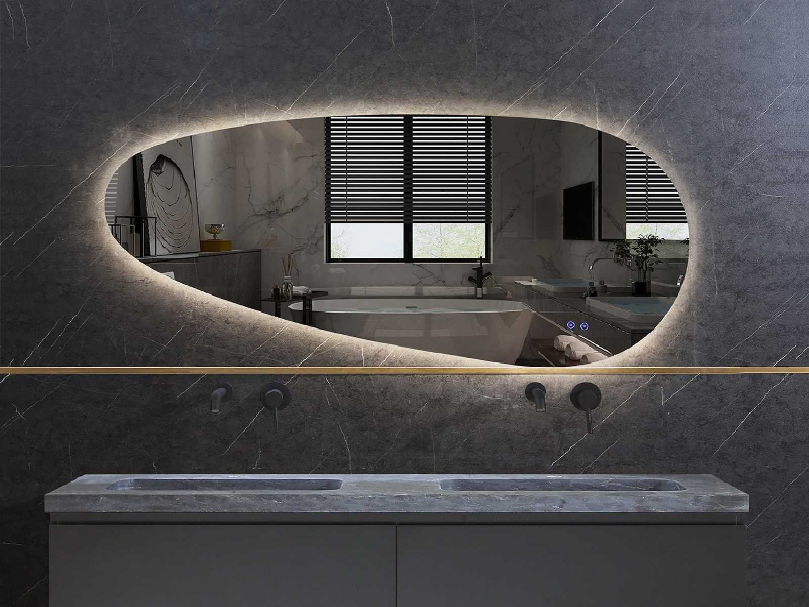LET OP: keuze uit 3 maten namelijk 140x65 of 150x70 of 160x70 en spiegel is ook in spiegelbeeld verkrijgbaar (met het dikke gedeelte links) keuze graag aangeven op afhaaldag, verwarming, bediening 2x one-touch touchebediening, verlichting 3 verstelbare kleuren led 3000/4500/6000k led-dioden(dimbaar) (geel/blauw/wit licht), voorzien van 4 geïntegreerde ophangpunten, 220volt stekker(plug and play), 1.5mm kopervrij glas met explosion-proof laag, er zitten 4 ophangpunten achter de spiegel waardoor je spiegel zowel horizontaal als verticaal op kunt hangen (past dus zowel op een 80cm als een 50cm breed meubel en diverse andere 1 of 2-persoons meubels), zeer exclusieve spiegel Merk: Mawialux Model: Darla Breedte: 140-160cm Hoogte: 65-70cm Touchscreen: true