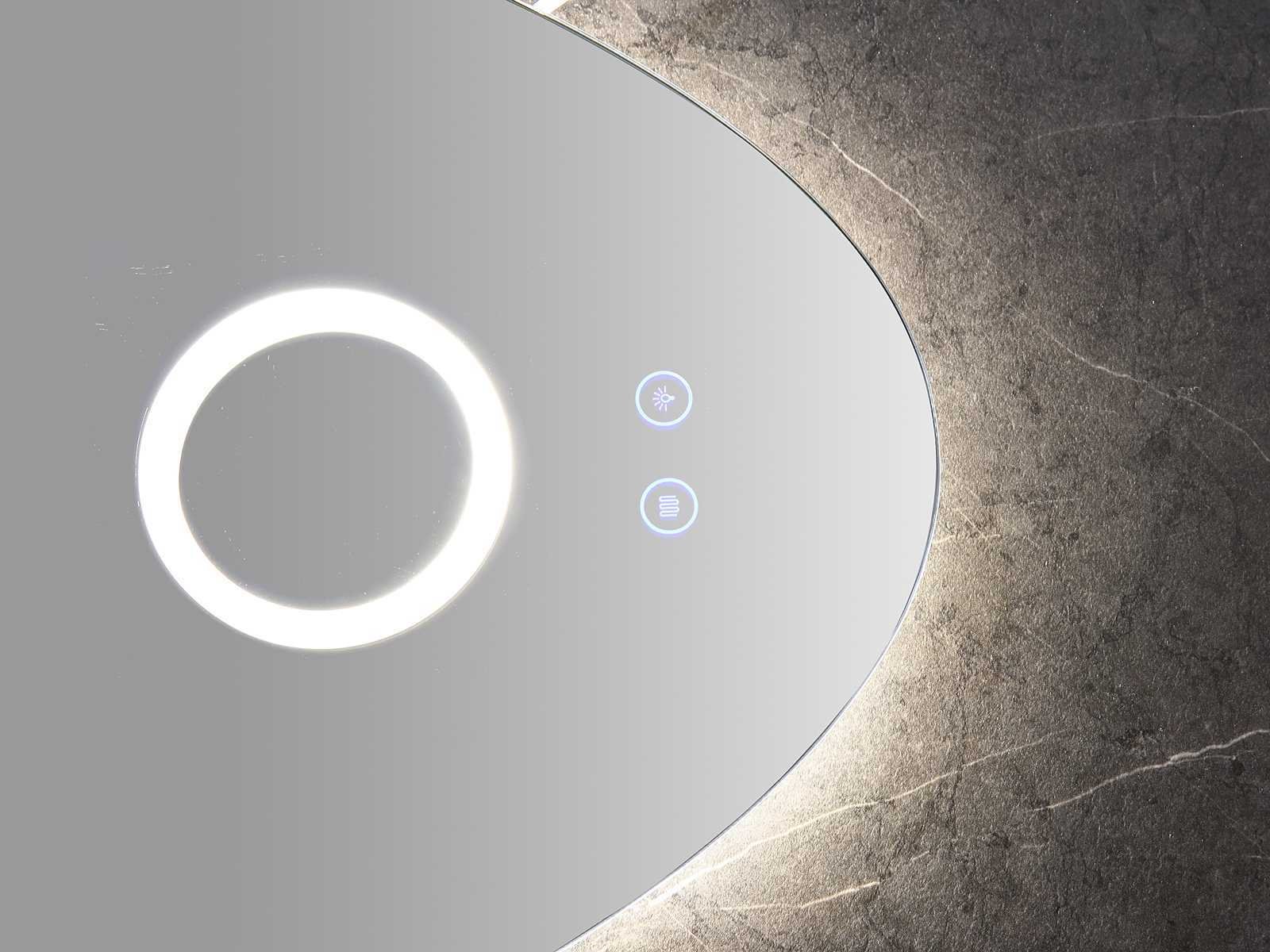 Keuze uit 100x50cm breed of 120x60cm of 140x60cm, 160x60cm breed(graag aangeven op de afhaaldag welke afmeting het wordt)verwarming, bediening 2x one-touch touchebediening, verlichting 3 verstelbare kleuren led 3000/4500/6000k led-dioden(dimbaar) (geel/blauw/wit licht), voorzien van geïntegreerde vergrotingsspiegel met ledverlichting(vergroot 3x), 4 geïntegreerde ophangpunten, 220volt stekker(plug and play), 1.5mm kopervrij glas met explosion-proof laag, er zitten 4 ophangpunten achter de spiegel waardoor je spiegel zowel horizontaal als verticaal op kunt hangen (past dus zowel op een 100cm als een 50cm breed meubel en diverse andere 1 of 2-persoons meubels), zeer exclusieve spiegel Merk: Mawialux Model: Etty Breedte: 100-120cm Hoogte: 50-60cm Touchscreen: true