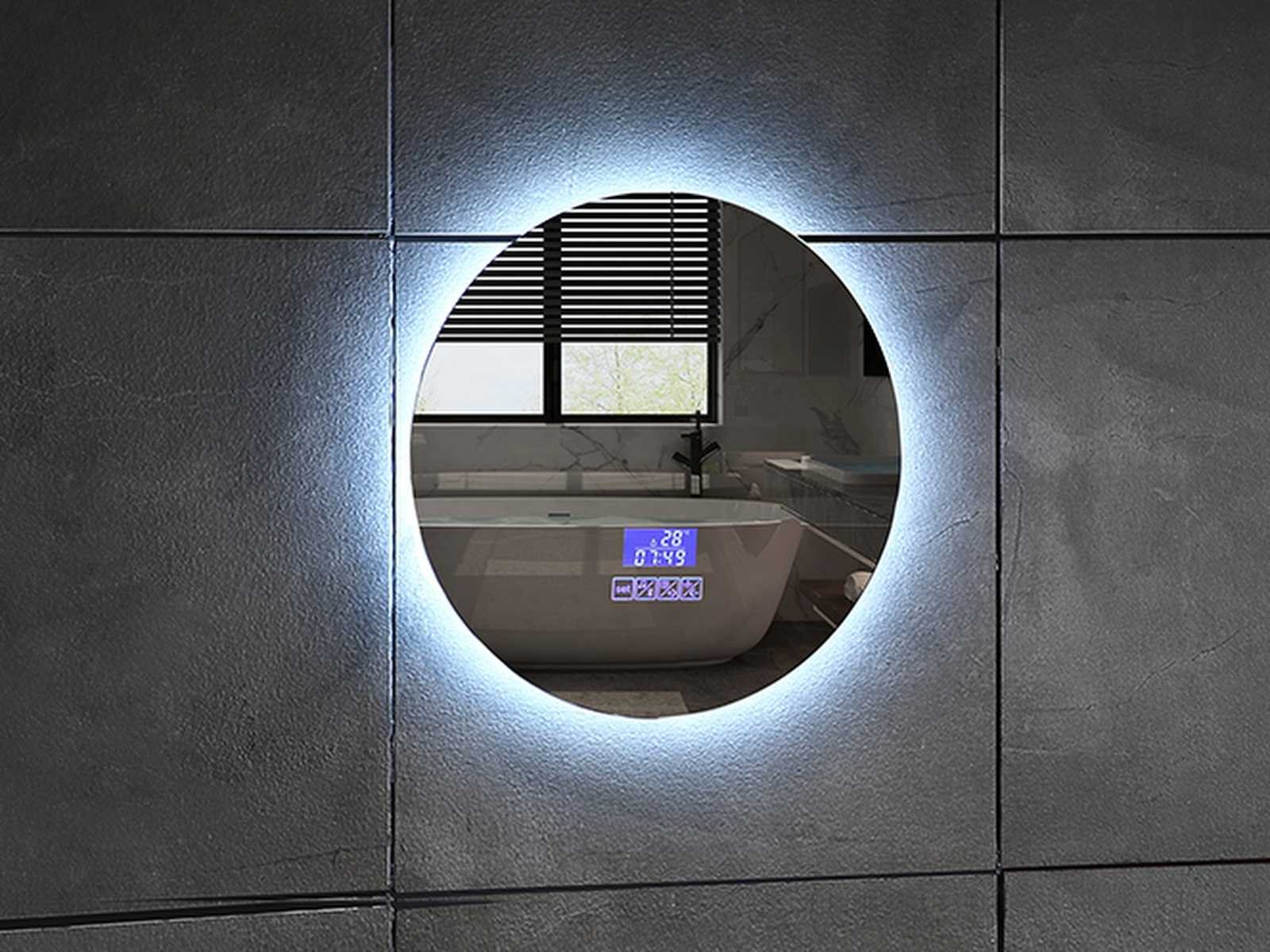 Afmetingen: 50cm diameter. Verwarming: Ja. Bediening: one-touch (voor heater, verlichting, bluetooth en instellingen). Verlichting: rondom aan de achterkant met 3 verstelbare kleuren LED 3000/4500/6000K LED-dioden (geel/blauw/wit licht). Voorzien van: digitaal display, Bluetooth met speaker, digitale klok, digitale temperatuur aanduiding. 220volt stekker (plug and play). Verwarming ter voorkoming van condens. 1.5mm kopervrij met explosion-proof laag met dezelfde functie als gehard glas. Merk: Mawialux Model: Mary Breedte: 50cm Hoogte: 50cm Touchscreen: true Bluetooth: true