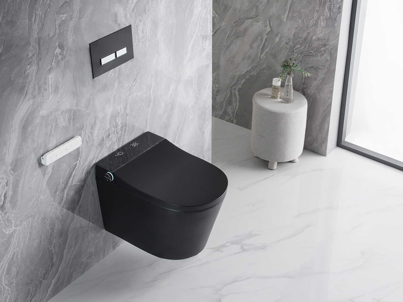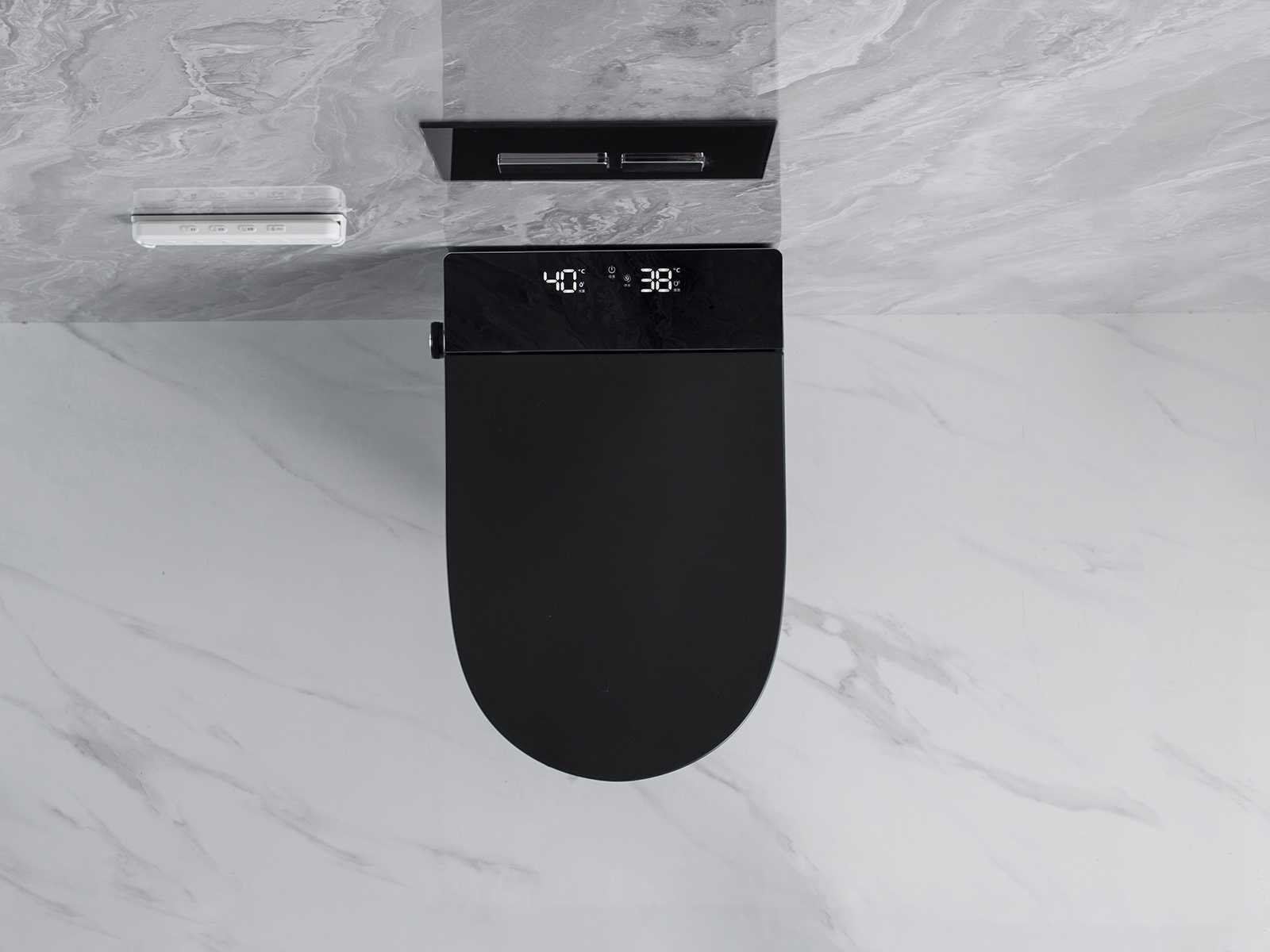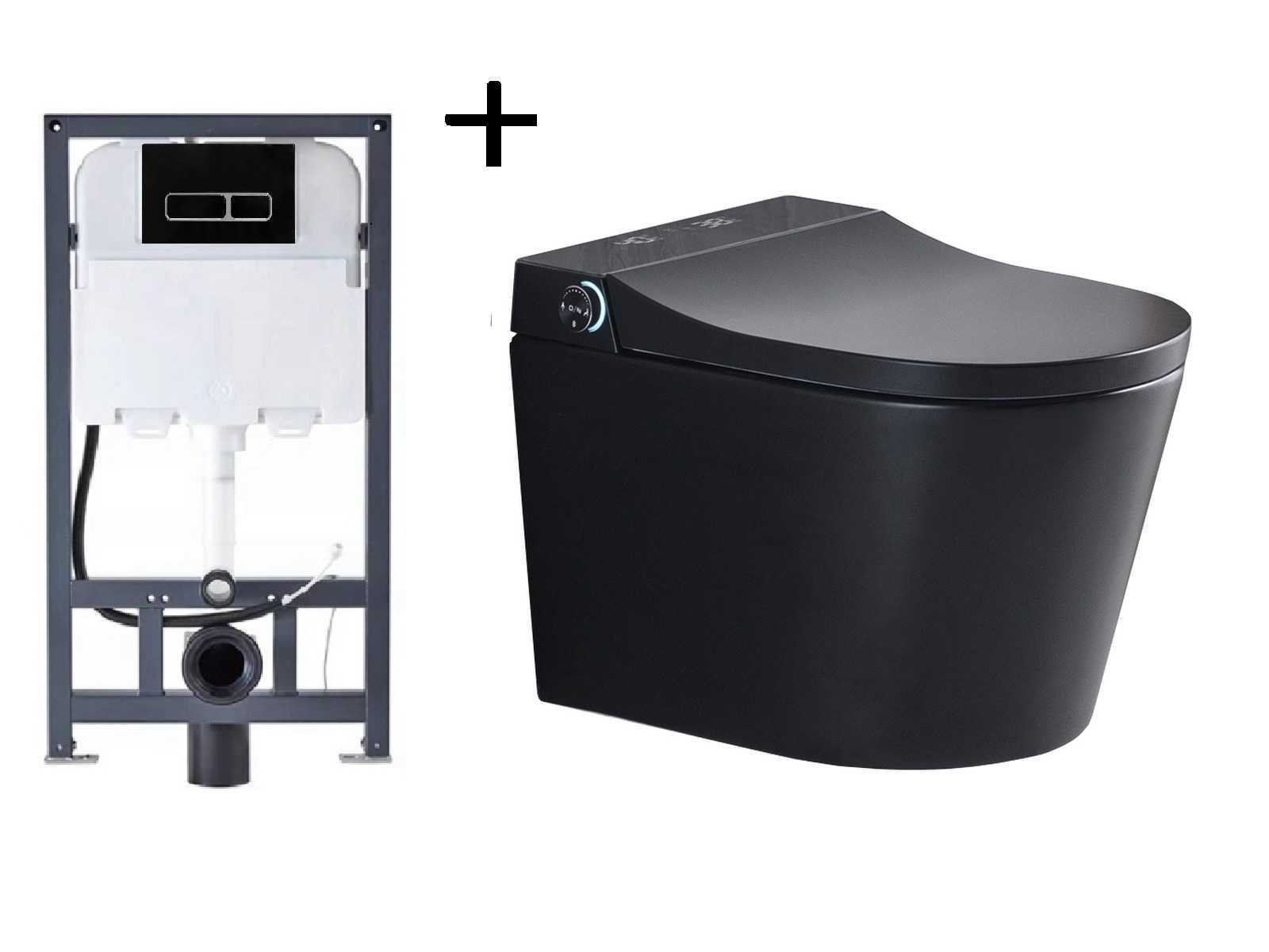 Compleet met inbouwreservoir, afmetingen lxbxh 56,4x38,8x44,2cm, materiaal keramiek en abs deksel, kleur glans wit, toiletbril softclose met deksel, afvoer p-trap (180mm), gewicht 30 kg voor het toilet en 15kg voor het reservoir, bluetooth control via de app, bidet water spoeling(regelbaar), heup spoeling (regelbaar), afstandsbediening, warm fohn droging (temperatuur instelbaar), led display met temperatuuraanduiding, toiletzitting met verwarming (temperatuur instelbaar), auto open/dicht van deksel, waterflow en druk instelbaar, douchearm instelbaar, auto reiniger (nozzle), nozzle automatisch in-uitgaand, lekkage beveiliging, auto sensor, led nacht licht, 220v stekker, 110-220volt, maximum vermogen 1600 watt, tornado rimless flushing systeem (geen spoelrand), geleverd inclusief inbouw reservoirs met drukbedieningen in glans wit, druktoetsen met spaarstand en dubbele spoeling, compleet geleverd met alle nodig aansluitmateriaal en buizen voor het aansluiten van het toilet en het inbouwreservoir Merk: Mawialux Model: Oakland Kleur: mat zwart