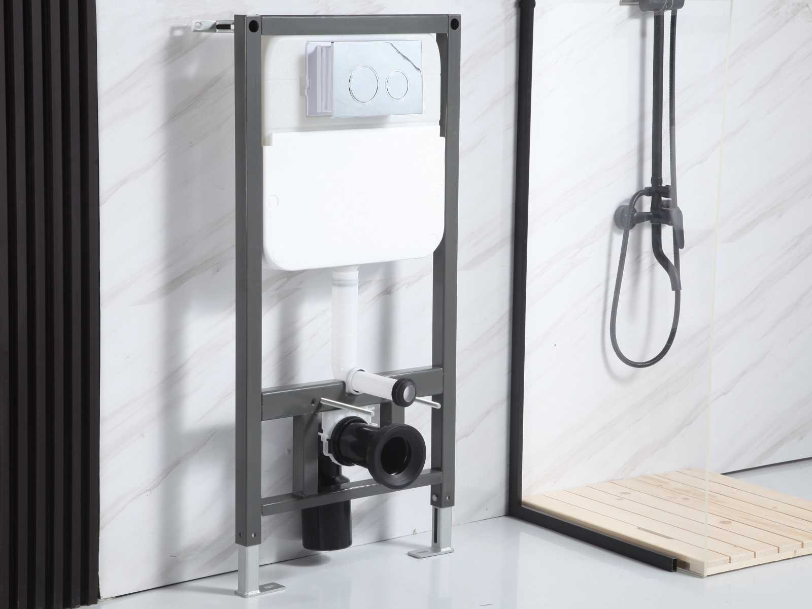 Inbouw reservoir met drukbediening, Afmetingen bxdxh 58 x 8-11 x 109-121cm (hoogte en diepte verstelbaar), Materiaal rvs frame (gepoedercoat) met HDPE, Kleur: in 4 kleuren beschikbaar en 2 verschillende vormen(chroom, geborsteld rvs, glans wit of mat zwart) (keuze graag doorgeven op info@mawialux.nl direct na sluiting van de veiling), spoeling 2 druktoetsen met spaarstand en dubbele spoeling, Watertank 3L/6L dual flushing, Gewicht +-15 kg, universeel toepasbaar op ieder hangtoilet, in hoogte en diepte verstelbaar, dubbele spoeling, geschikt voor frontbediening, compleet geleverd met alle nodig aansluitmateriaal en buizen voor het aansluiten van het toilet, Conditie: Nieuw, Garantie 2 jaar garantie, hoge kwaliteit Bezorgtermijn 14 dagen Kleur: chroom, geborsteld rvs, glans wit of mat zwart