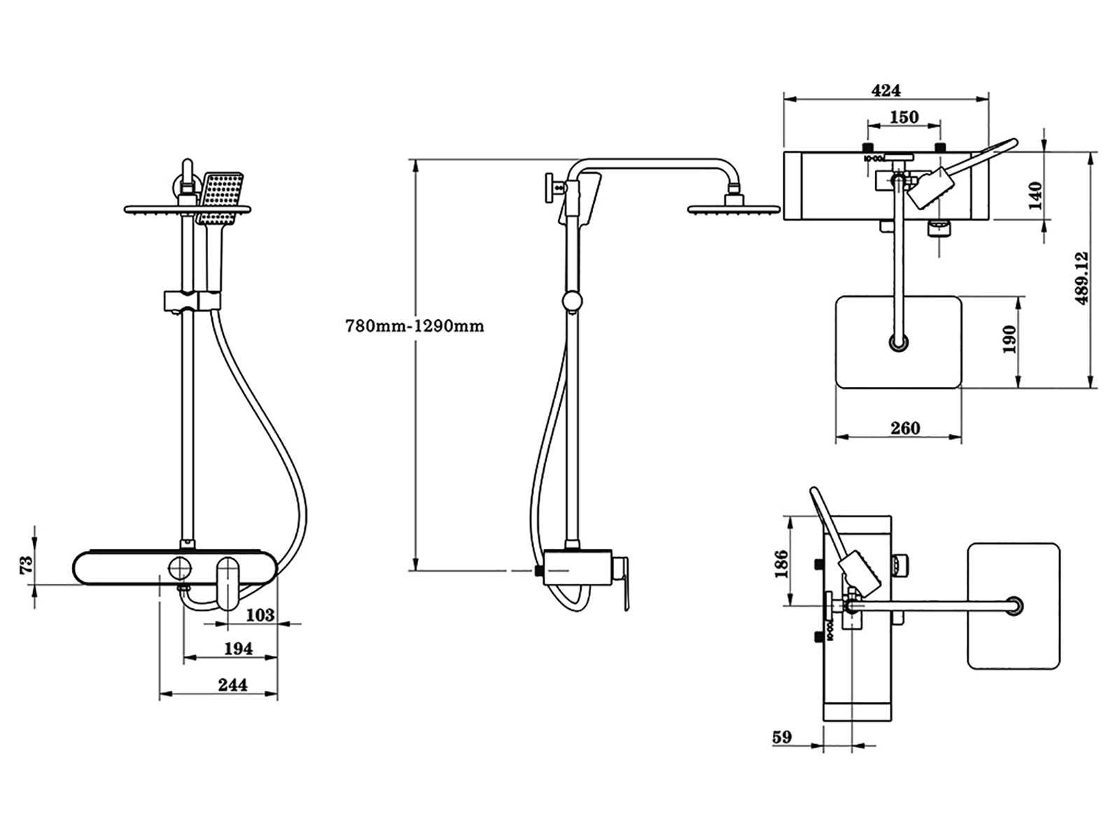 De doucheset is uitgerust met drie functies. De hoofddouche, handdouche en de baduitloop worden afzondelijk van elkaar gebruikt. Door de aanwezigheid van de baduitloop is deze doucheset uitermate geschikt voor douchebaden. Naast deze drie functies is de doucheset uitgerust met een digitaal display waarop je in een oogopslag de temperatuur van het water en de gebruiksduur kunt aflezen. Daarnaast word er gebruik gemaakt van keramische binnenwerken zodat je jarenlang plezier zult hebben van jouw regendoucheset. Doordat de doucheset in hoogte verstelbaar is past hij in vrijwel elke badkamer! Het digitale scherm word aangestuurd door de waterflow. Je hebt hier dus geen stroom voor nodig. De unit is gemaakt van 304 RVS en een gehard glazen top + front waardoor de lak niet zal beschadigen en u lang kunt genieten van de mat zwarte kleur. Hoogte: verstelbaar van 78 - 129 cm, Materiaal: 304 RVS behuizing met gehard glazen top + front en messing kraanwerk, Kraan: mengkraan, Binnenwerk: keramisch, Douchekop: 26 x 19 cm doorsnede kantel/draaibaar. Handdouche: verstelbaar, Voorzien van: digitale micromotor aansturing door middel van waterflow, Temperatuur en tijdsduur digitaal afleesbaar, Keramisch binnenwerk, Badkraan uitloop, Gehard zwart glazen planchet op bovenkant regelunit, Bijzonderheden: h.o.h. afstand van 150mm. Merk: Mawialux Model: Lava Kleur: Mat zwart