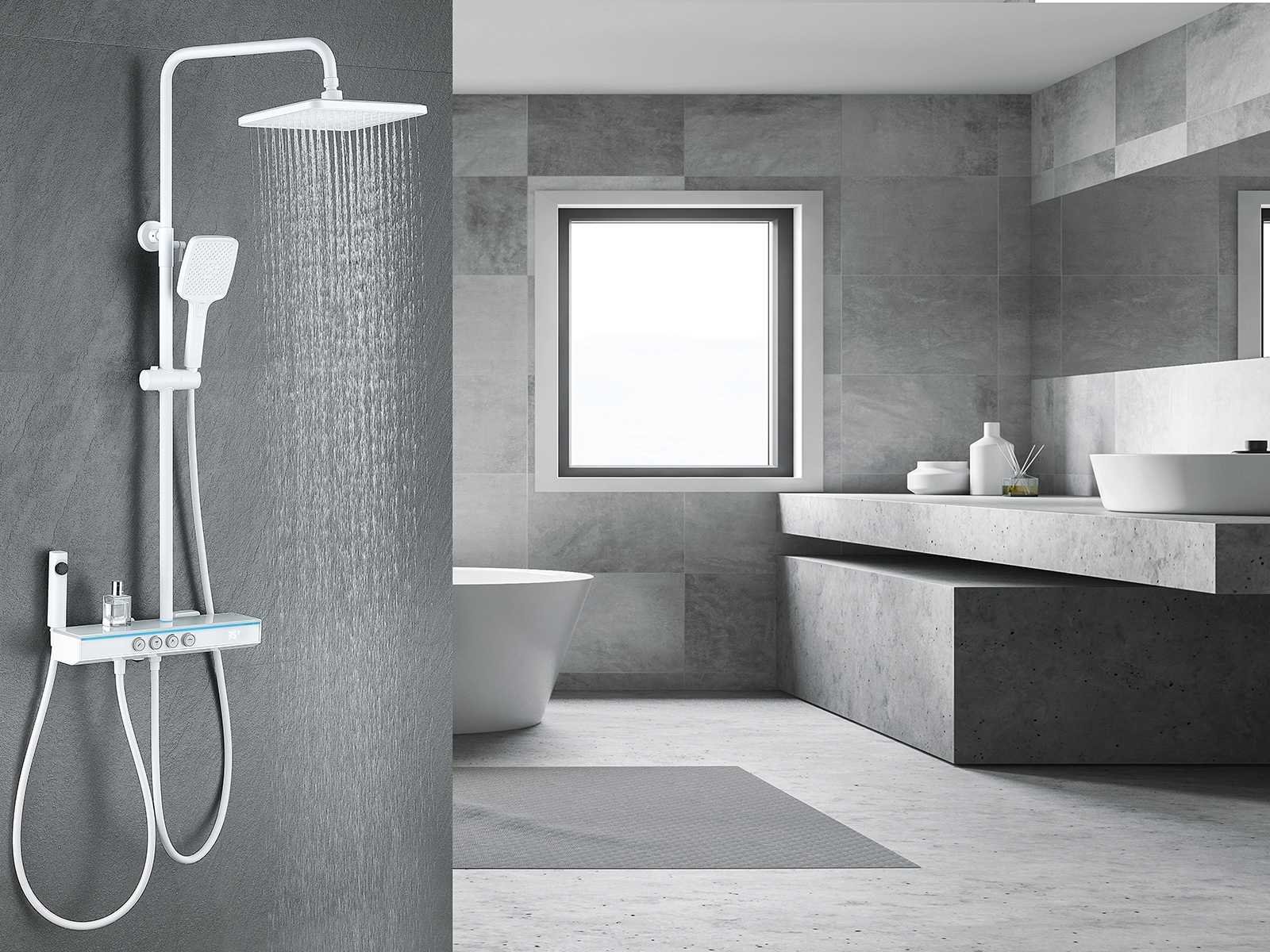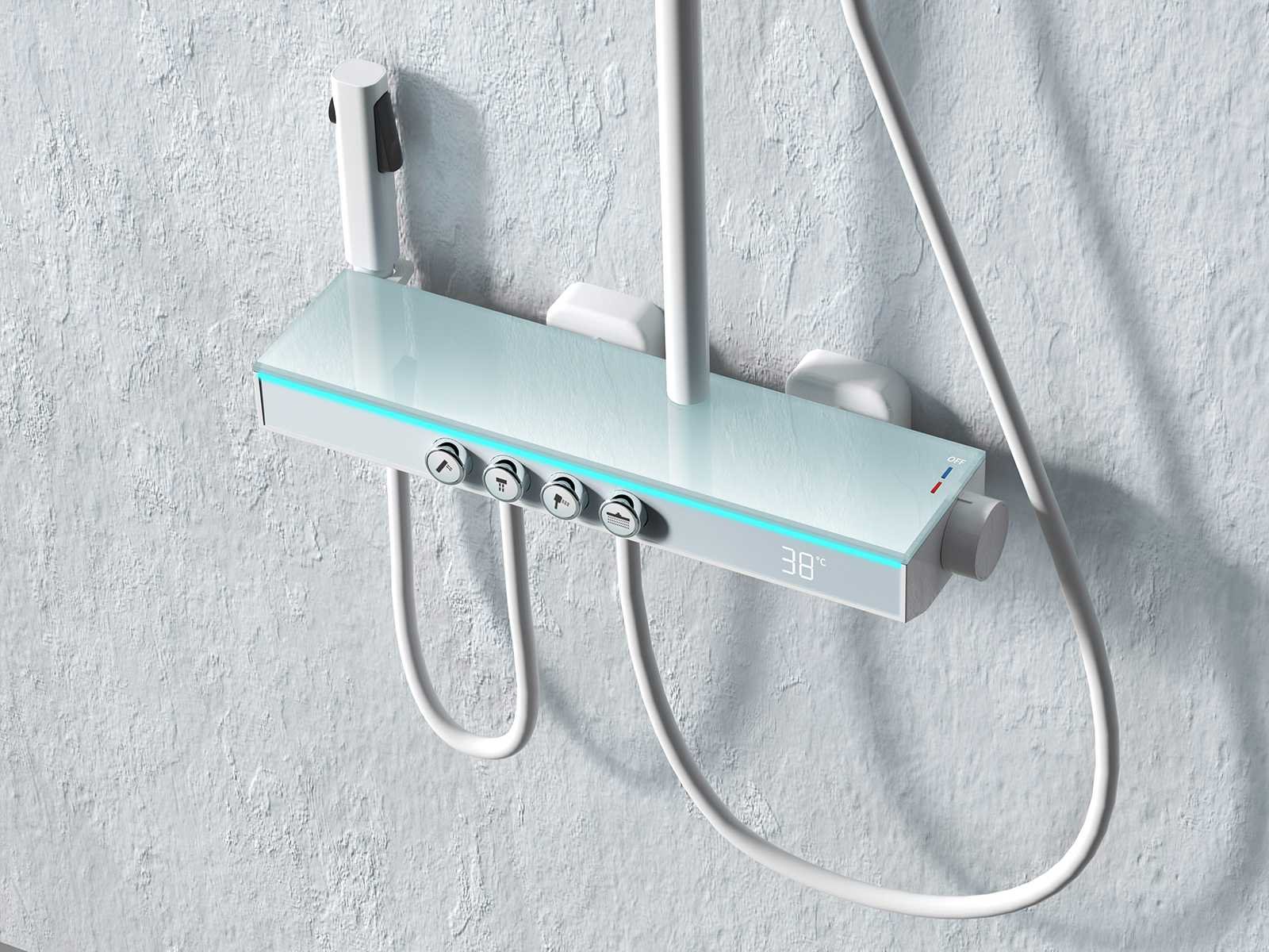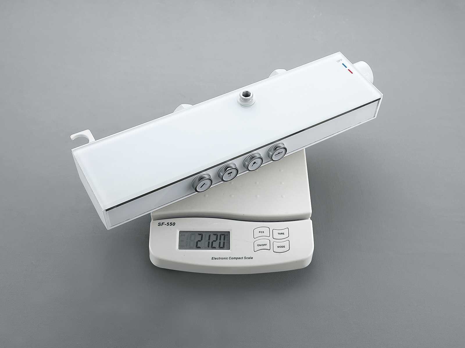 De doucheset is uitgerust met vier functies. De hoofddouche, 2x losse handdouche en badkraan uitloop. Door de aanwezigheid van de baduitloop is deze doucheset uitermate geschikt voor douchebaden. Naast deze vier functies is de doucheset uitgerust met een digitaal display waarop je in een oogopslag de temperatuur van het water kunt aflezen. Daarnaast word er gebruik gemaakt van keramische binnenwerken zodat je jarenlang plezier zult hebben van jouw regendoucheset. Doordat de doucheset in hoogte verstelbaar is past hij in vrijwel elke badkamer! Hoogte: verstelbaar 80 - 120 cm. Materiaal: RVS/messing. Kraan: mengkraan. Binnenwerk: keramisch. Douchekop: 30 x 20 cm kantel/draaibaar. Handdouche: verstelbaar met doucheslang en 2 functies. Voorzien van: digitale micromotor aansturing door middel van waterflow. Geen stroom nodig. Temperatuur en tijdsduur digitaal afleesbaar. Keramisch binnenwerk. Badkraan uitloop (waterval). Bijzonderheden: waterfuncties worden bediend door druktoetsen (meerdere functies hierdoor tegelijk mogelijk). h.o.h. afstand van 150 mm. Merk: Mawialux Model: Friso Kleur: mat wit