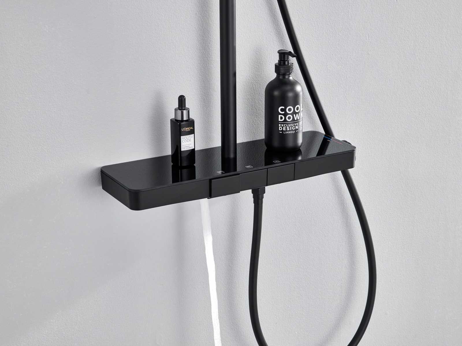 De doucheset is uitgerust met een thermostatische mengkraan voorzien van keramische binnenwerken, vierkant hoofddouche en verstelbare handdouche. Hoofddouche is uitgerust met kunststof wateruitlopen zodat kalkaanslag eenvoudig te verwijderen is. De hartafstand van deze doucheset is 15cm. Materiaal: messing. Kleur: Zwart. Kraan: thermostaatkraan. Binnenwerk: keramisch. Douchekop: plat design. Handdouche: verstelbaar met doucheslang. Hoogte: verstelbaar. Voorzien van: douchekop met kunststof wateruitlopen om gemakkelijk kalkaanslag te verwijderen. Keramisch binnenwerk. Bijzonderheden: h.o.h. afstand van 150 mm (incl. s-koppelingen). Merk: Mawialux Model: looper Kleur: mat zwart