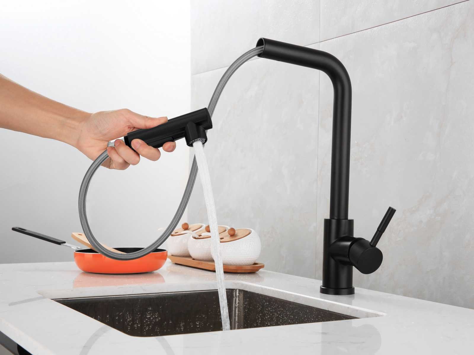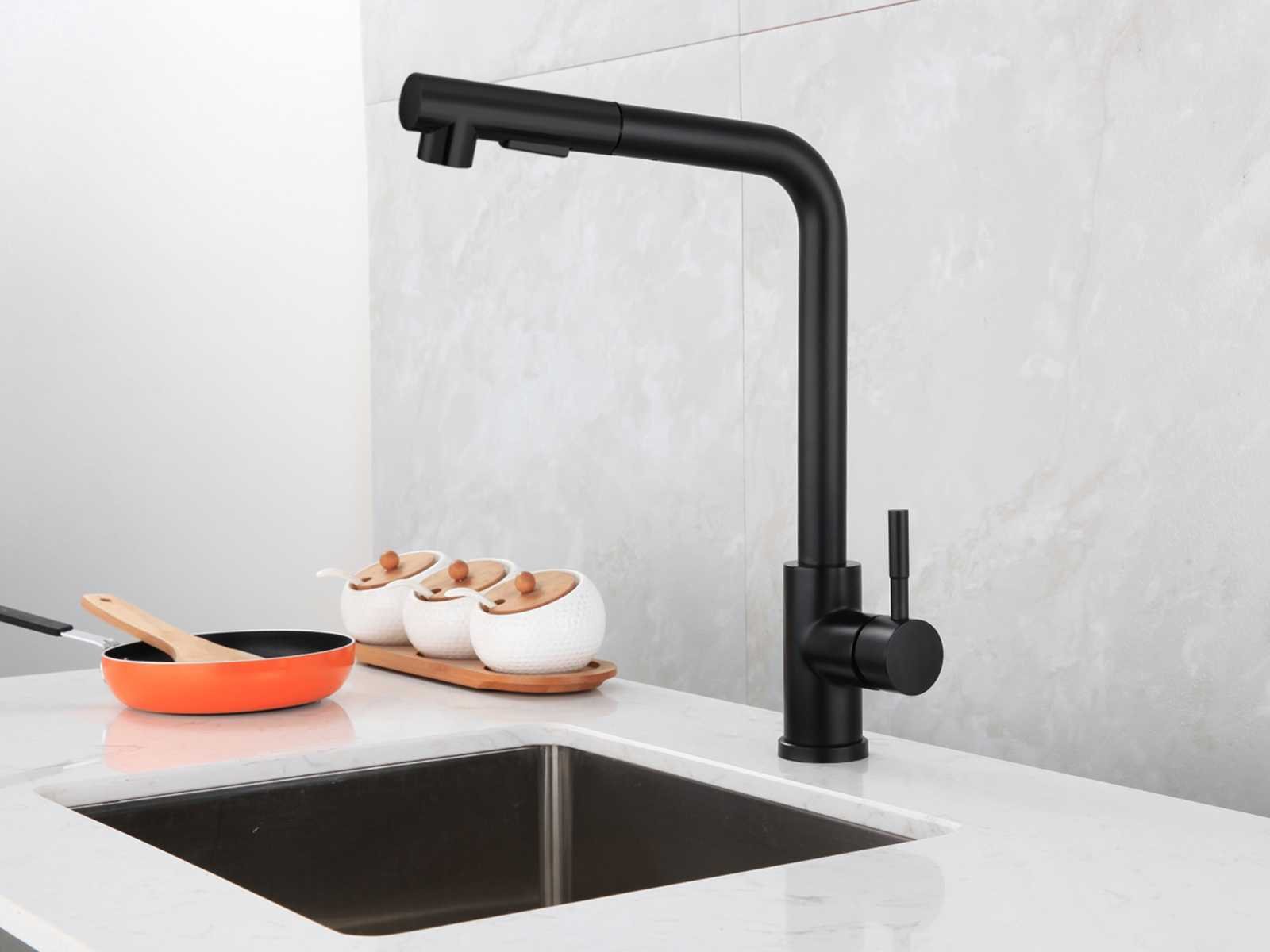 Materiaal 304 rvs, hoogte circa 36 cm, gewicht 2kg, voorzien van sproeikop met 2 functies, uitloop 360 graden draaibaar, waterslangen met aansluitmateriaal, sproeikop uitneembaar met extra lange flexibele waterslang, LET OP: boven een bod van 50,- euro excl BTW en veilingkosten versturen we dit product gratis binnen de benelux naar u toe per post. Merk: Mawialux Model: Rosa Kleur: mat zwart