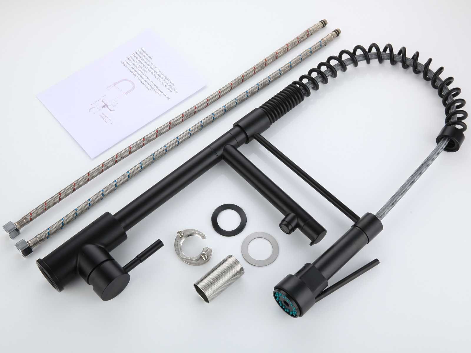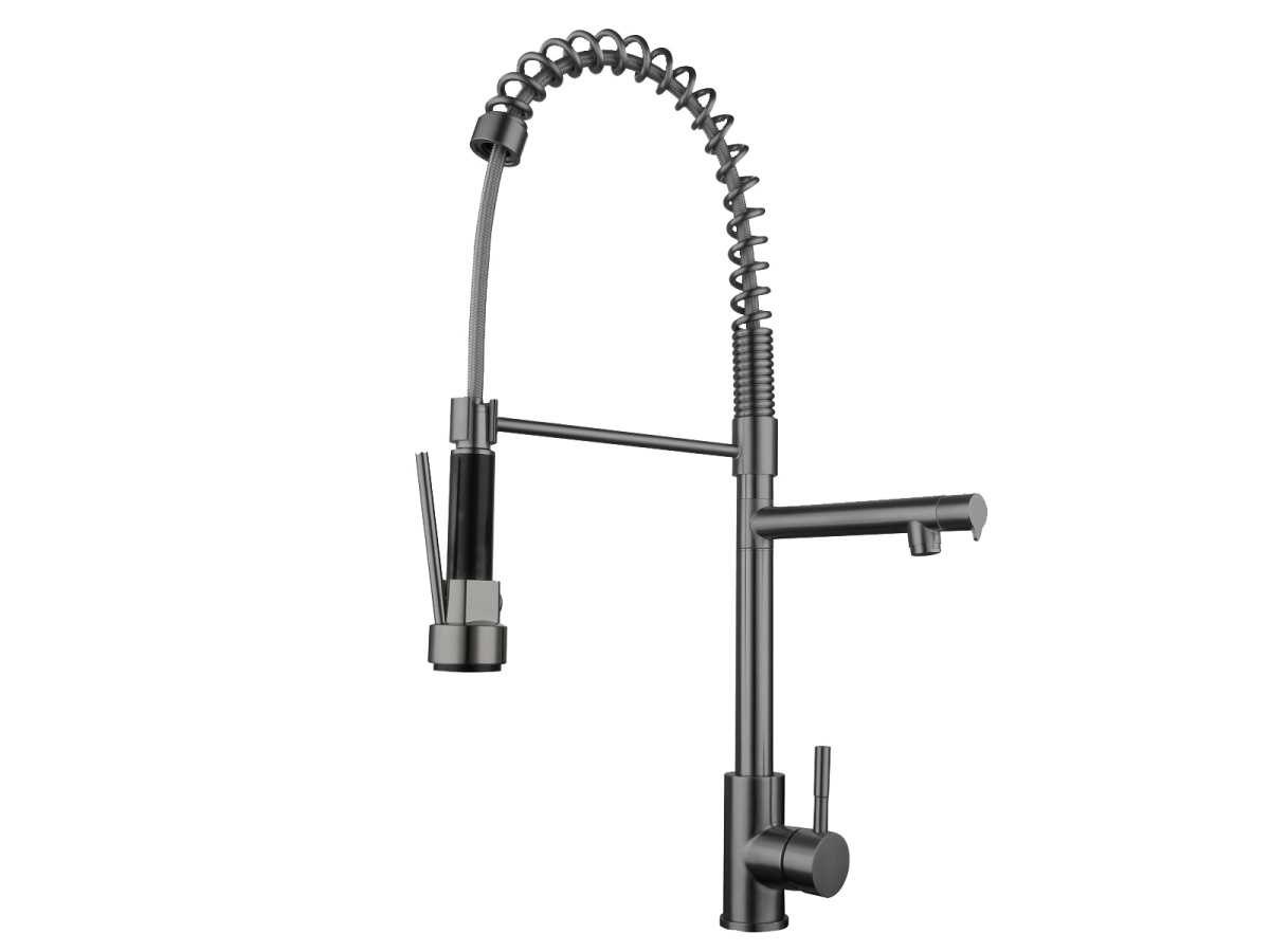 Kleurkeuze geborsteld RVS of Mat zwart of geborsteld goud of gunmetal grey (keuze graag aangeven per email op info@mawialux.nl) materiaal 304 rvs, kleur mat zwart, hoogte 37 cm, gewicht 2 kg, voorzien van uitloop 360 graden draaibaar, waterslangen met aansluitmateriaal, Kraan is uitgerust met een flexibele uitloop en een vaste uitloop. De kraan en de sproeikop kunnen beide tegelijk gebruikt worden. Dubbele uitloop los te bedienen. LET OP: boven een bod van 100,- euro excl BTW en veilingkosten versturen we dit product gratis binnen de benelux naar u toe per post. Merk: Mawialux Model: Cocos Kleur: diverse kleuren Gewicht: 3kg Hoogte: 63cm Materiaal: RVS