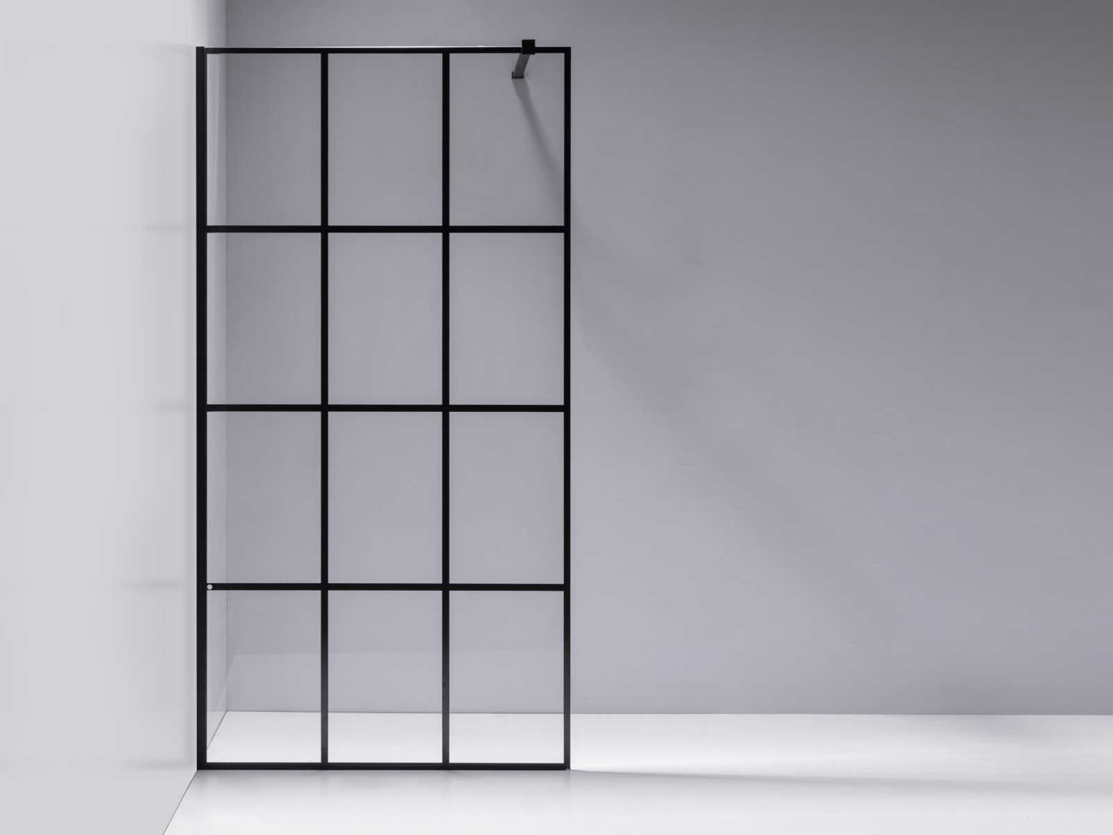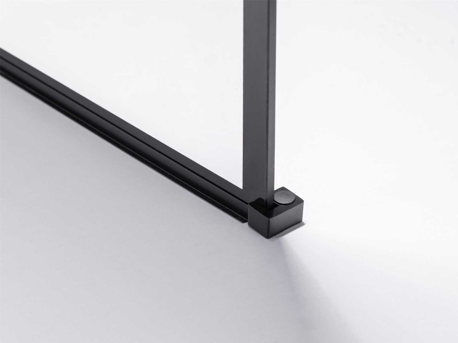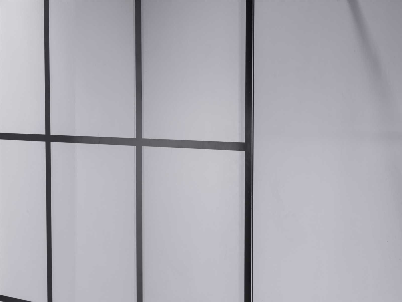 Kleur mat zwart, materiaal aluminium profiel met messing ophanging, glas 8mm dik helder nano gecoat veiligheidsglas (vermindert kalkaanslag), voorzien van onzichtbare schroefbevestiging - hoek verstevigingsblok voor vloer - bevestiging materiaal - vierkante bevestiging stang van messing 120cm (in te korten naar gewenste maat), ruitprofiel - geschikt voor op een douchebak en direct op de tegelvloer - wandprofiel 20 mm verstelbaar Merk: Mawialux Model: Ohio Breedte: 90cm Hoogte: 195cm