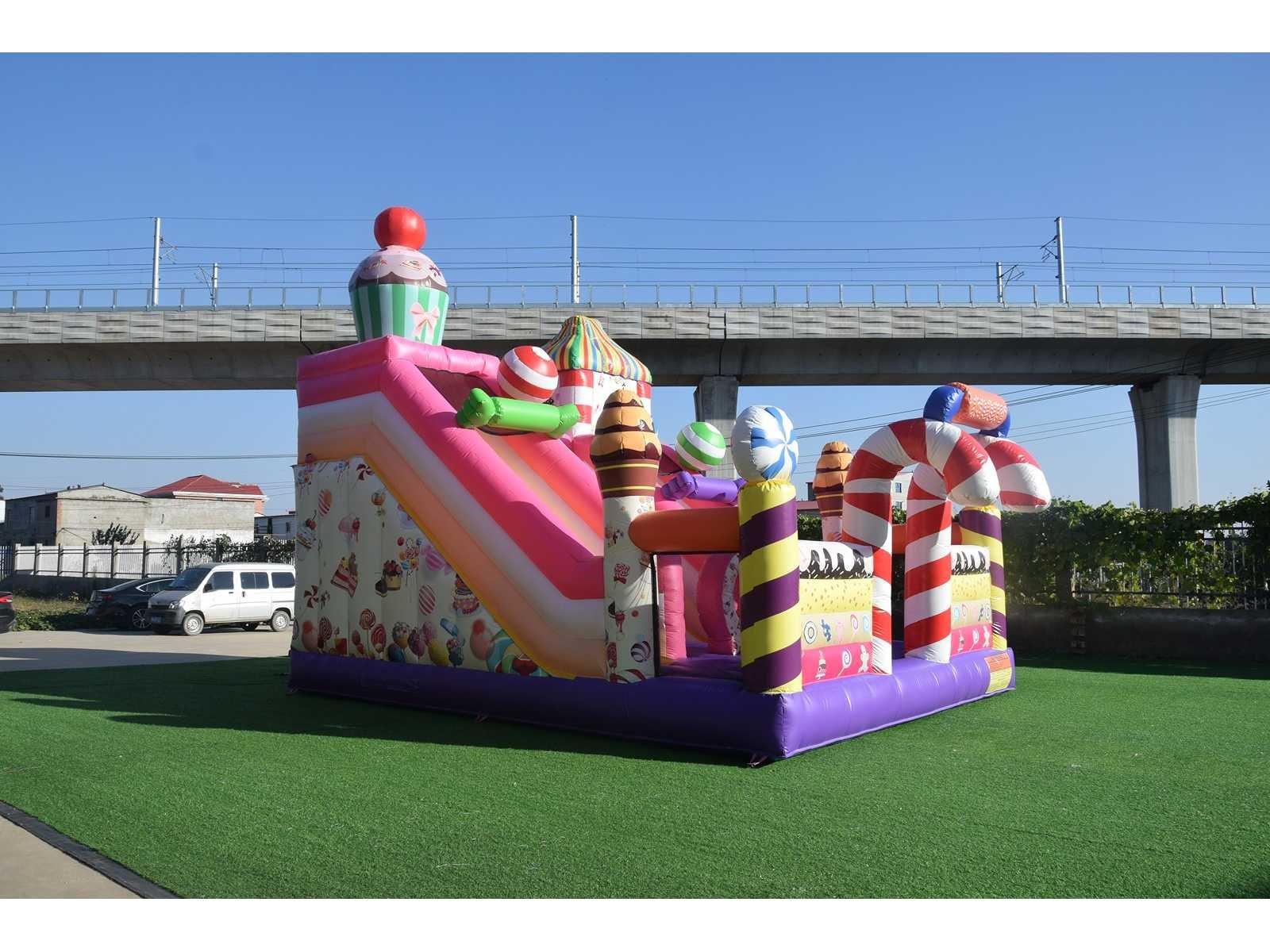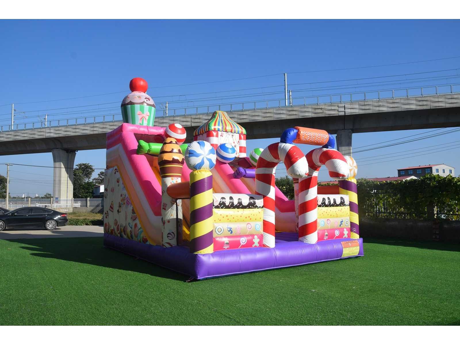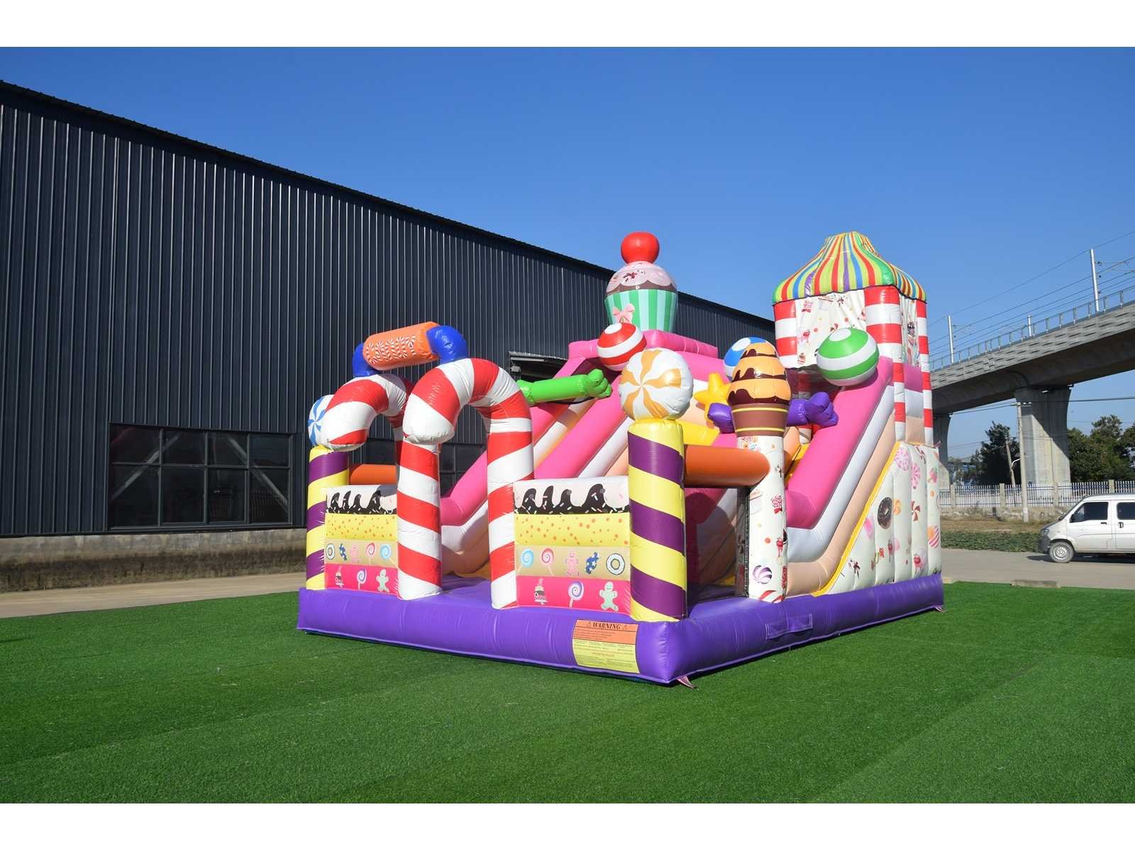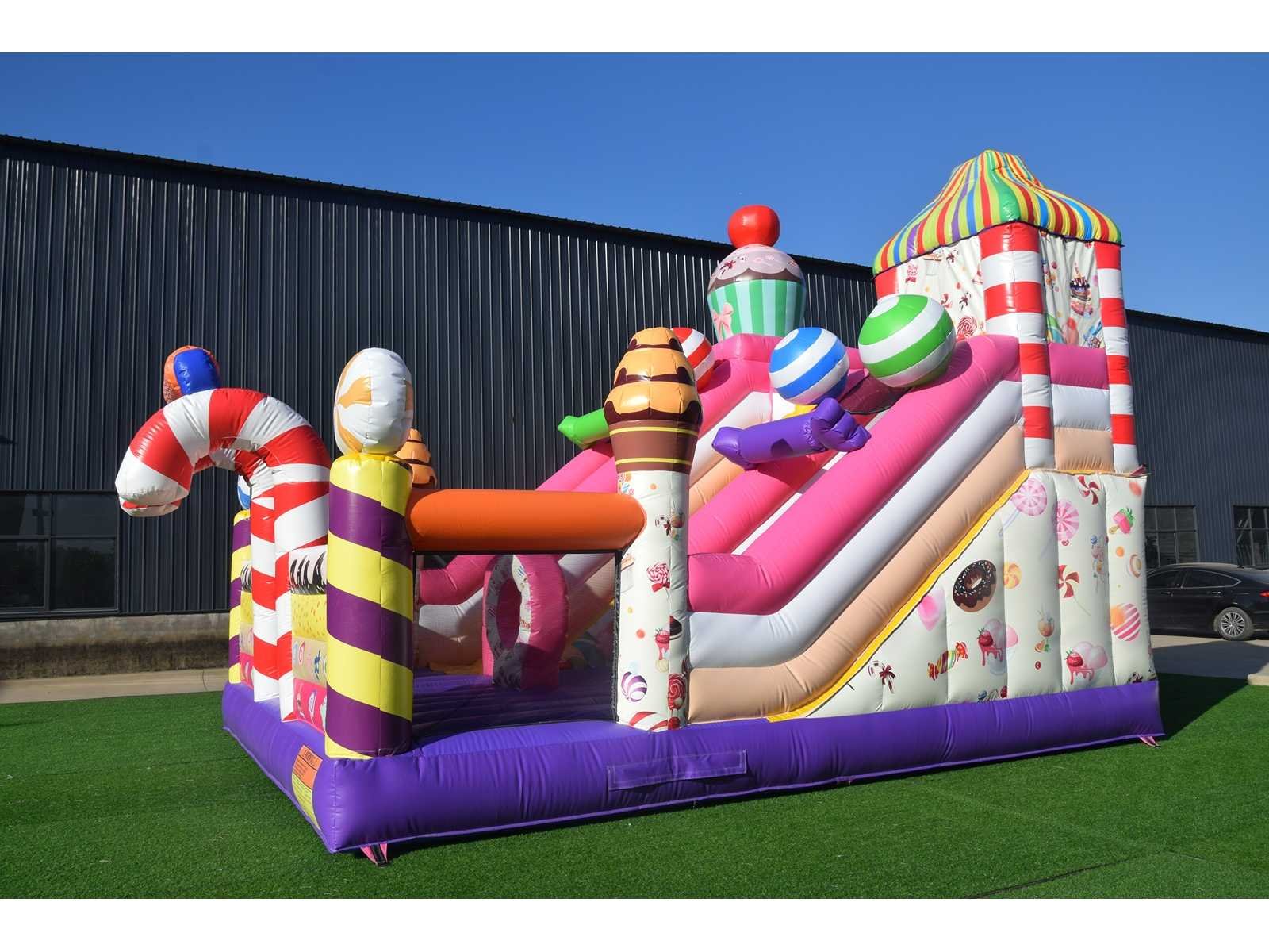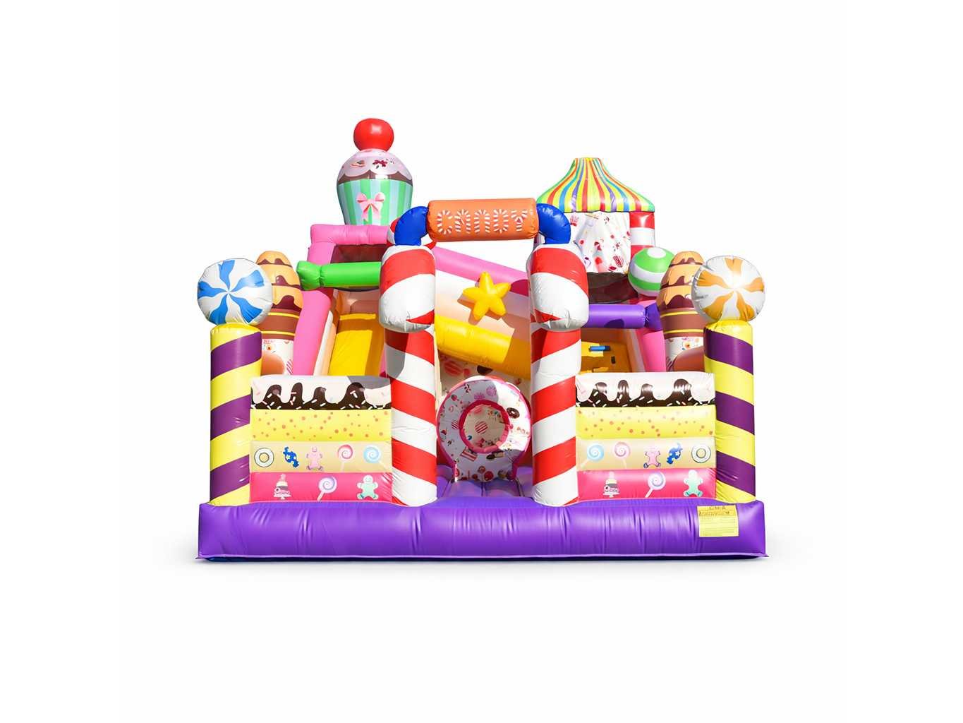 De springkussen wordt nieuw in verpakking geleverd, wordt compleet geleverd inclusief bijpassende blower, uniek en kleurrijk snoep thema, opvallend design dat direct aandacht trekt, grote glijbaan voor extra speelplezier, geschikt voor meerdere kinderen tegelijk, echte blikvanger op elk feest, inclusief CE en EN14960 keuring, wordt op pallet geleverd Model: springkussen met glijbaan Kleur: Multicolor Gewicht: 200kg Lengte: 750cm Breedte: 550cm Hoogte: 450cm Materiaal: PVC 0,55 Tarpaulin