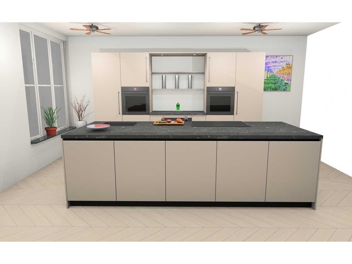 Blad nis. 120x60x4cm Composiet Easy Belgian Rock Honed. Bosch PVS895B16E Inductiekookplaat inclusief afzuigsysteem, 4 kookzones, combiZone, powerBoost-functie voor alle zones. Bosch KUW21AHG0 Onderbouw wijnklimaatkast Serie 6 met dual temperature Zones, powerVentilation, capaciteit 44 flessen. Let op! Keuken staat niet opgesteld, enkel 3D tekening en wordt geleverd ongebruikt in doos. Let op! Aanrecht blad is zwaar, tijdens afhaal dag zorgvuldig meenemen en neem extra krachtige mannen mee! Merk: Häcker Concept130 Model: TOP SOFT-GL kashmir direktlak mat Type keukenopstelling: eiland Lengte: 360cm Breedte: 60cm Hoogte: 218cm Gootsteen: Reginox Houston rvs 50x40cm vlakinleg Werkblad hoogte: 92cm Aanrechtblad: Composiet Easy Belgian Rock Honed, 40mm Magnetron: Bosch HMG936AB1 Multifunctionele oven met magetronfunctie Serie 8, inhoud 67 liter Koelkast: Bosch KIR81SDD0, 178cm, Integreerbare koelkast Serie 6 met softClose deursluiting, inhoud 310 liter, Softclose: true Oven: Bosch HBG934AB1 Multifunctionele oven Serie 8 met 14 verwarmingswijzen, inhoud 71 liter, Vaatwasser: Bosch SMV4HU801E Volledig integreerbare vaatwasmachine serie 4 met 6 programma's, 4 speciale functies, Lengte kookeiland: 304cm Breedte kookeiland: 120cm Hoogte kookeiland: 92cm Plintkleur: kashmir mat Hoofdkleur: kashmir direktlak mat Style: Modern greep en eiland greeploos Kleur: kashmir direktlak mat