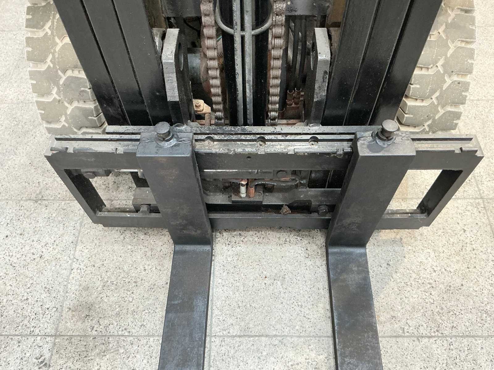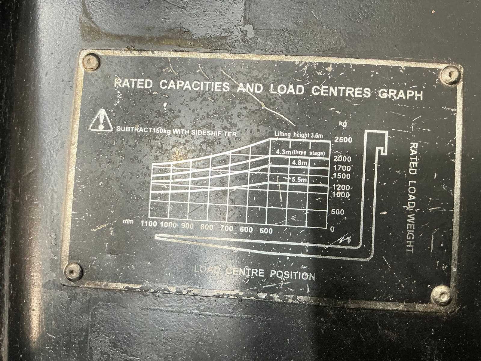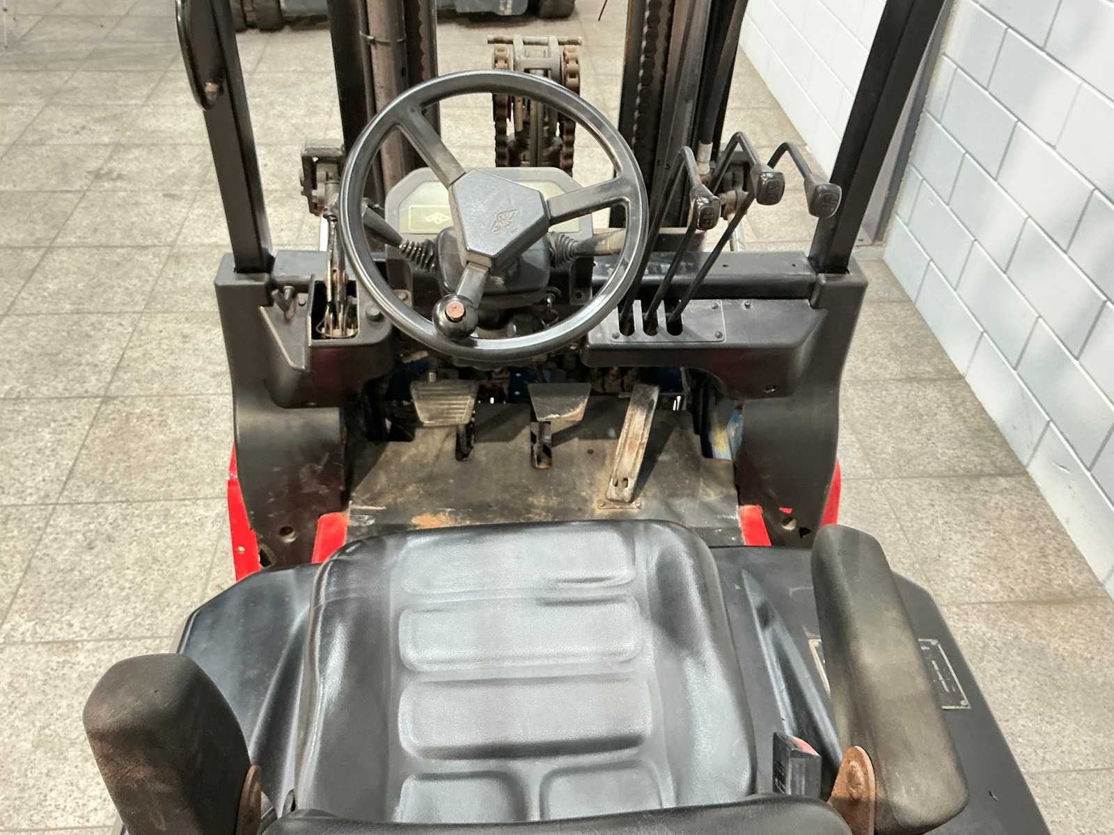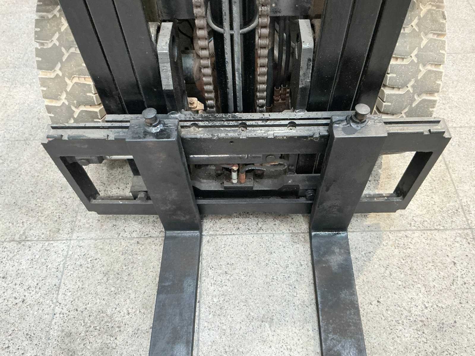 Merk: hangcha Type: CPCD25N Bouwjaar: 2008 Serienummer: 080929171 Brandstof: Diesel Mast: Triplex Soort band: Volrubber Aantal wielen: 4 Afgelezen urenstand: 3295 Free-lift: true Side-shift: true Triple mast: true Eigen gewicht: 4050kg Hefvermogen: 2500kg Lepellengte: 1070mm Hefhoogte: 4320mm Vol rubber banden: true Totale afmeting L: 2560mm Totale afmeting Breedte: 1140mm Totale afmeting Hoogte: 2120mm Diesel: true