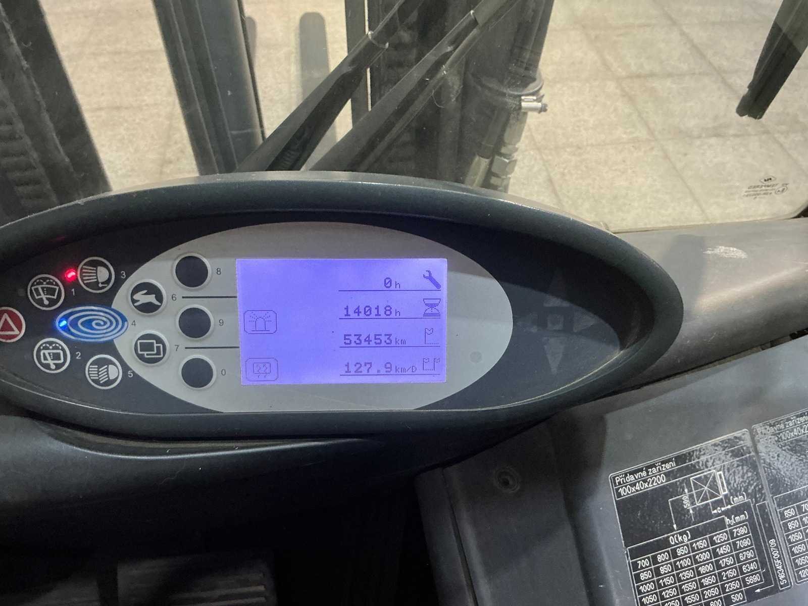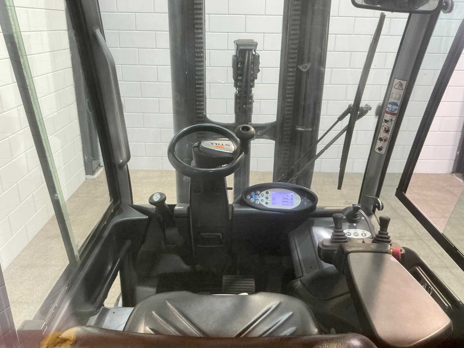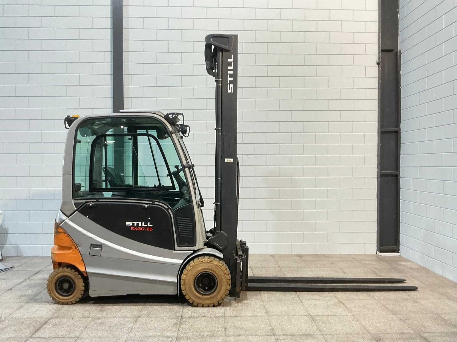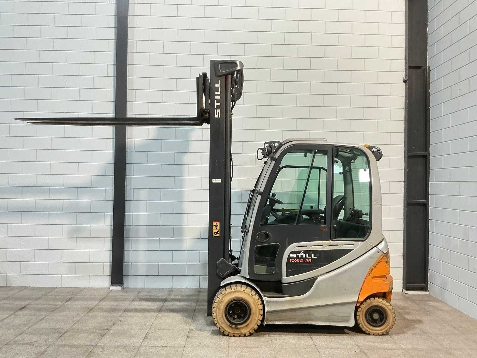 Merk: Still Type: RX60-25 Bouwjaar: 2015 Serienummer: 516345F00709 Brandstof: Elektrisch Mast: Triplex Soort band: Volrubber Aantal wielen: 4 Afgelezen urenstand: 14014 Accu lader: true Free-lift: true Side-shift: true Triple mast: true Eigen gewicht: 5200kg Hefvermogen: 2500kg Lepellengte: 2200mm Hefhoogte: 7390mm Vol rubber banden: true Totale afmeting L: 2320mm Totale afmeting Breedte: 1190mm Totale afmeting Hoogte: 3170mm