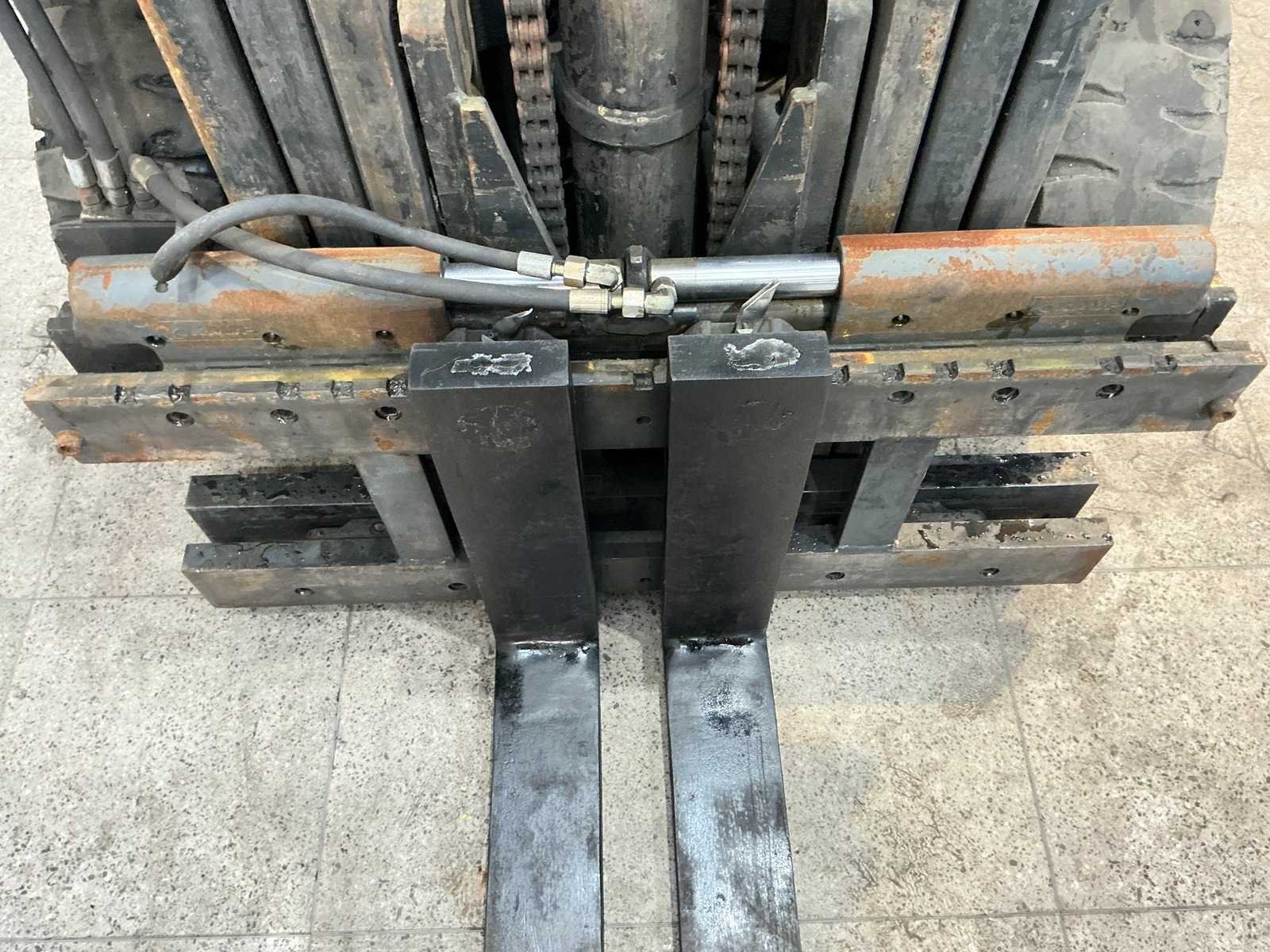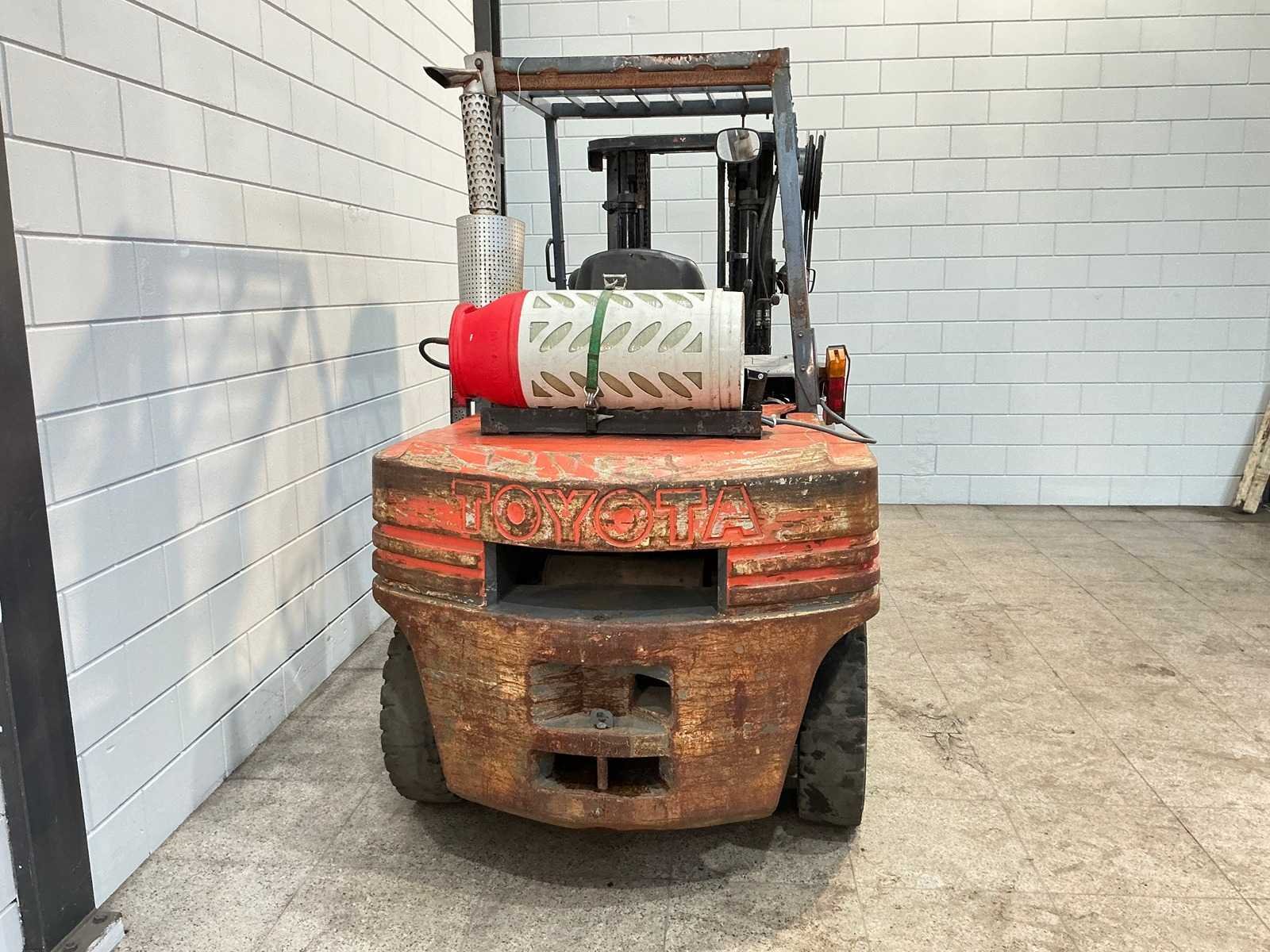 Merk: Toyota Type: 02-5FG35 Bouwjaar: 1996 Serienummer: A5FG35-30733 Brandstof: LPG Mast: Triplex Soort band: Volrubber Aantal wielen: 4 Afgelezen urenstand: 12565 Free-lift: true Side-shift: true Triple mast: true Eigen gewicht: 6240kg Hefvermogen: 3500kg Lepellengte: 1200mm Hefhoogte: 4300mm Vol rubber banden: true Totale afmeting L: 2980mm Totale afmeting Breedte: 1340mm Totale afmeting Hoogte: 2150mm LPG: true