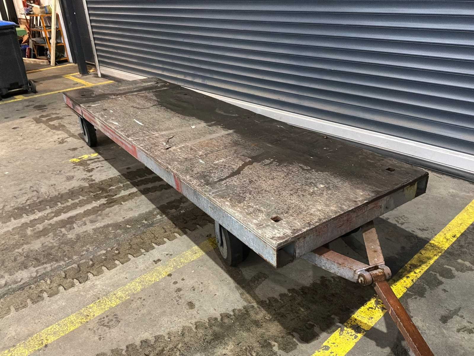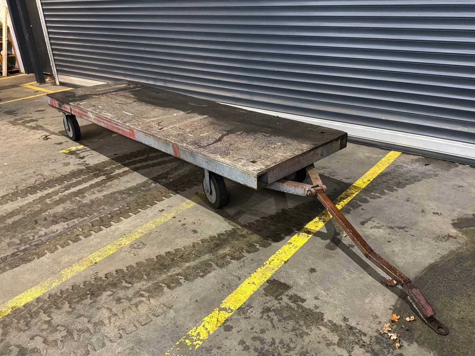 Plateau uitgeschoven 5000mm lang plateau ingeschoven 3300mm Merk: Onbekend Type: Transportkar Eigen gewicht: 400kg Totale afmeting L: 4500mm Totale afmeting Breedte: 1000mm Totale afmeting Hoogte: 500mm