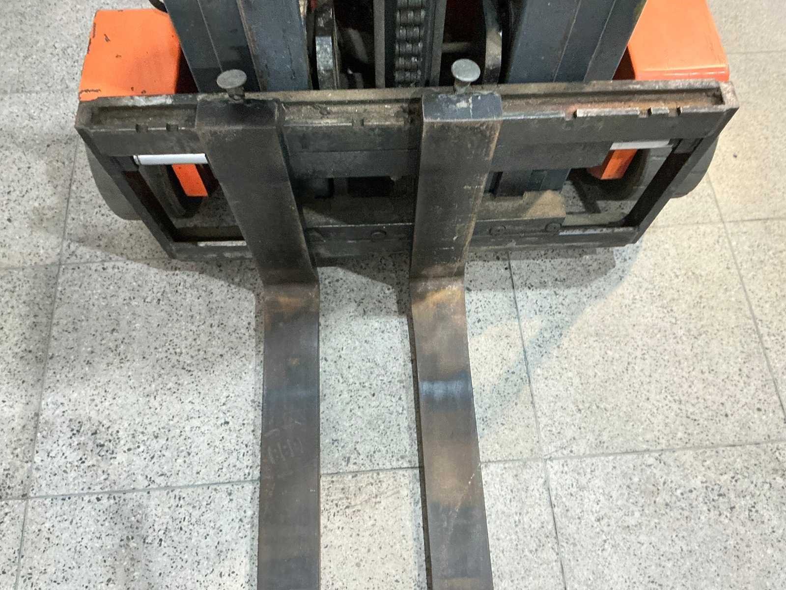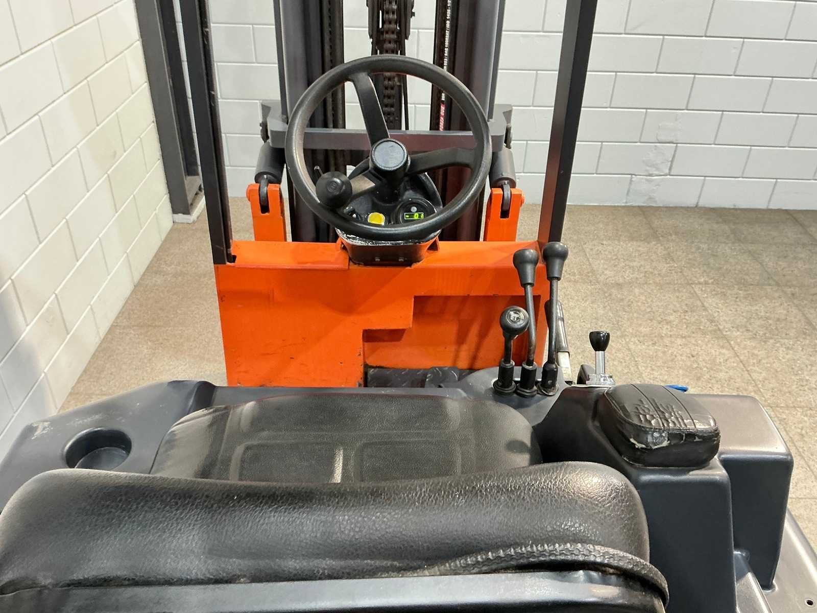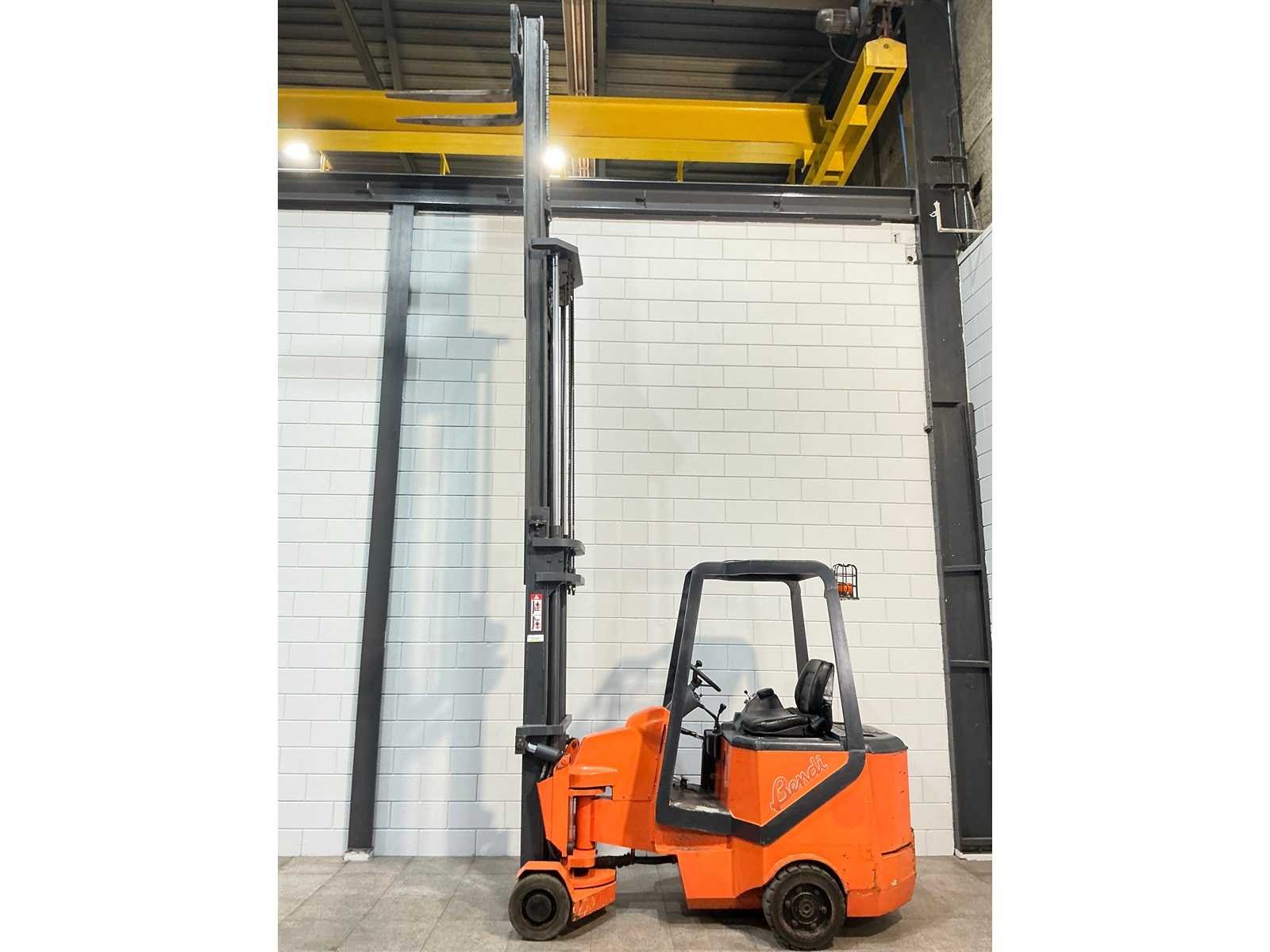 Merk: Bendi Type: 2056 Serienummer: RTL 4147 Brandstof: Elektrisch Mast: Triplex Soort band: Volrubber Aantal wielen: 4 Afgelezen urenstand: 5489 Accu lader: true Free-lift: true Side-shift: true Triple mast: true Hefvermogen: 2000kg Lepellengte: 950mm Hefhoogte: 5600mm Vol rubber banden: true Totale afmeting L: 2600mm Totale afmeting Breedte: 1270mm Totale afmeting Hoogte: 2490mm