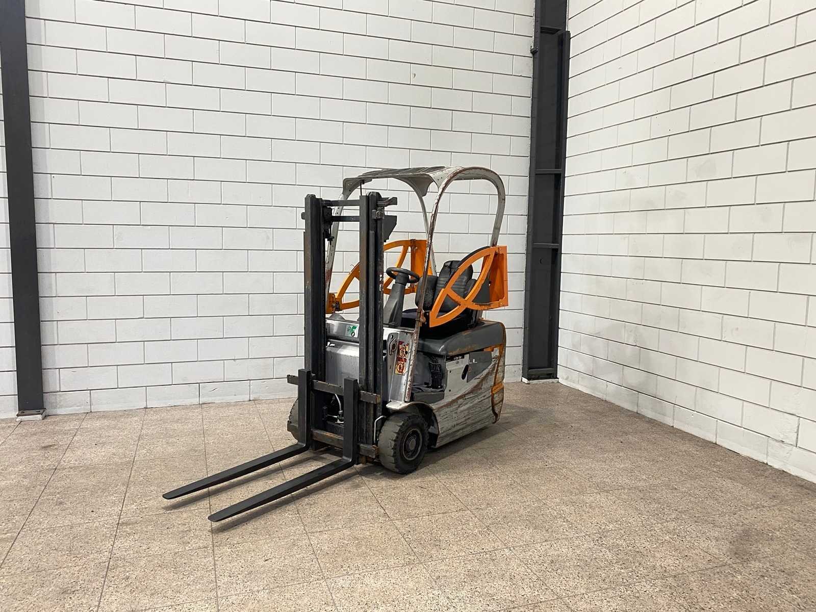 Merk: Still Type: RX50110 Bouwjaar: 2004 Serienummer: 515051003324 Brandstof: Elektrisch Mast: Duplex Soort band: Volrubber Aantal wielen: 3 Afgelezen urenstand: 12863 Accu lader: true Side-shift: false Duplex mast: true Eigen gewicht: 2116kg Hefvermogen: 1000kg Lepellengte: 1000mm Hefhoogte: 2760mm Vol rubber banden: true Totale afmeting L: 1600mm Totale afmeting Breedte: 1000mm Totale afmeting Hoogte: 2040mm