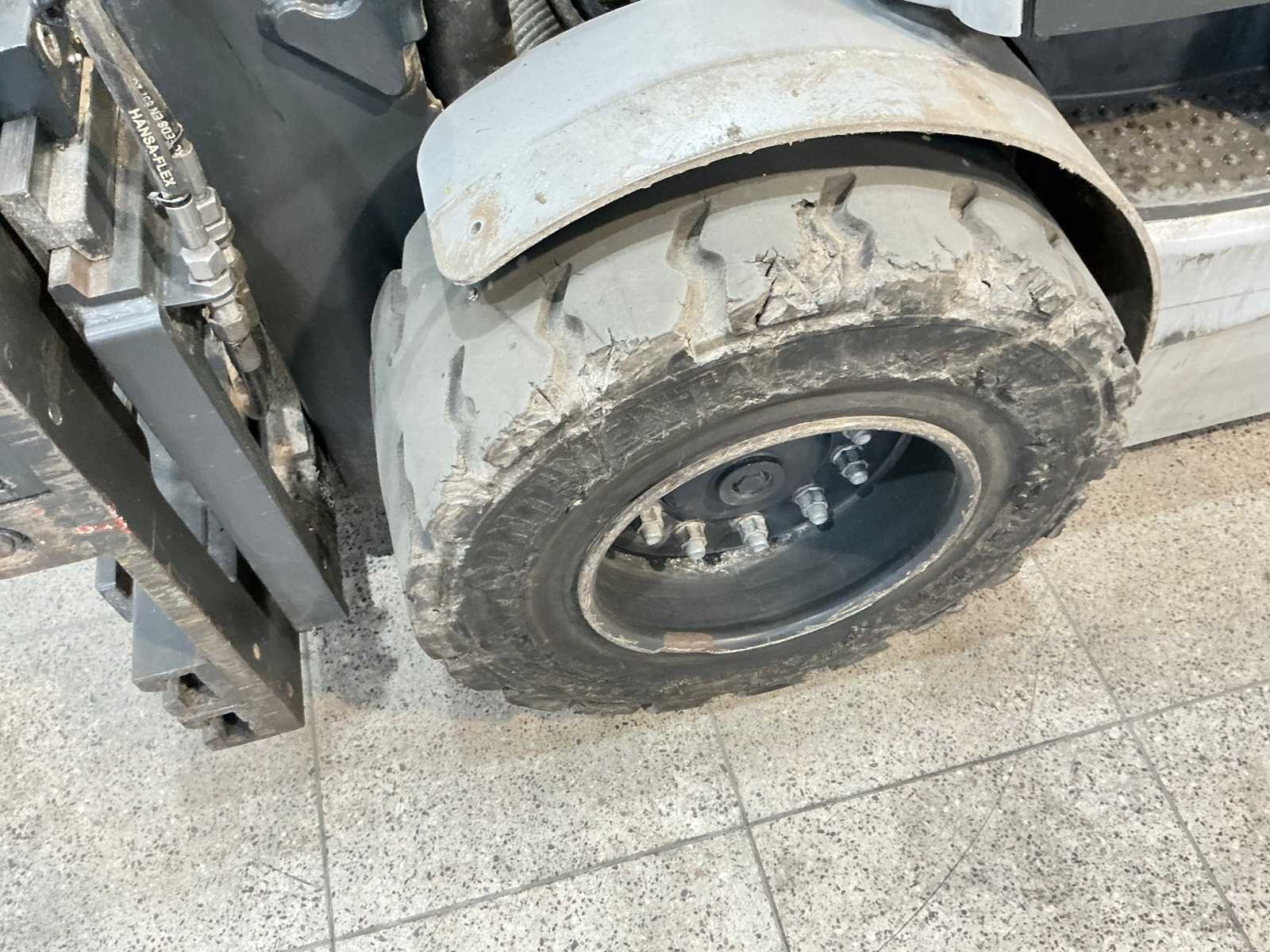 Merk: Still Type: RX60-50 Bouwjaar: 2018 Serienummer: 516329J00094 Brandstof: Elektrisch Mast: Triplex Soort band: Volrubber Aantal wielen: 4 Afgelezen urenstand: 10950 Accu lader: true Free-lift: true Side-shift: true Hydraulisch verstelbare lepels: true Triple mast: true Eigen gewicht: 7632kg Hefvermogen: 5000kg Lepellengte: 2400mm Hefhoogte: 4300mm Vol rubber banden: true Totale afmeting L: 2896mm Totale afmeting Breedte: 1399mm Totale afmeting Hoogte: 2370mm