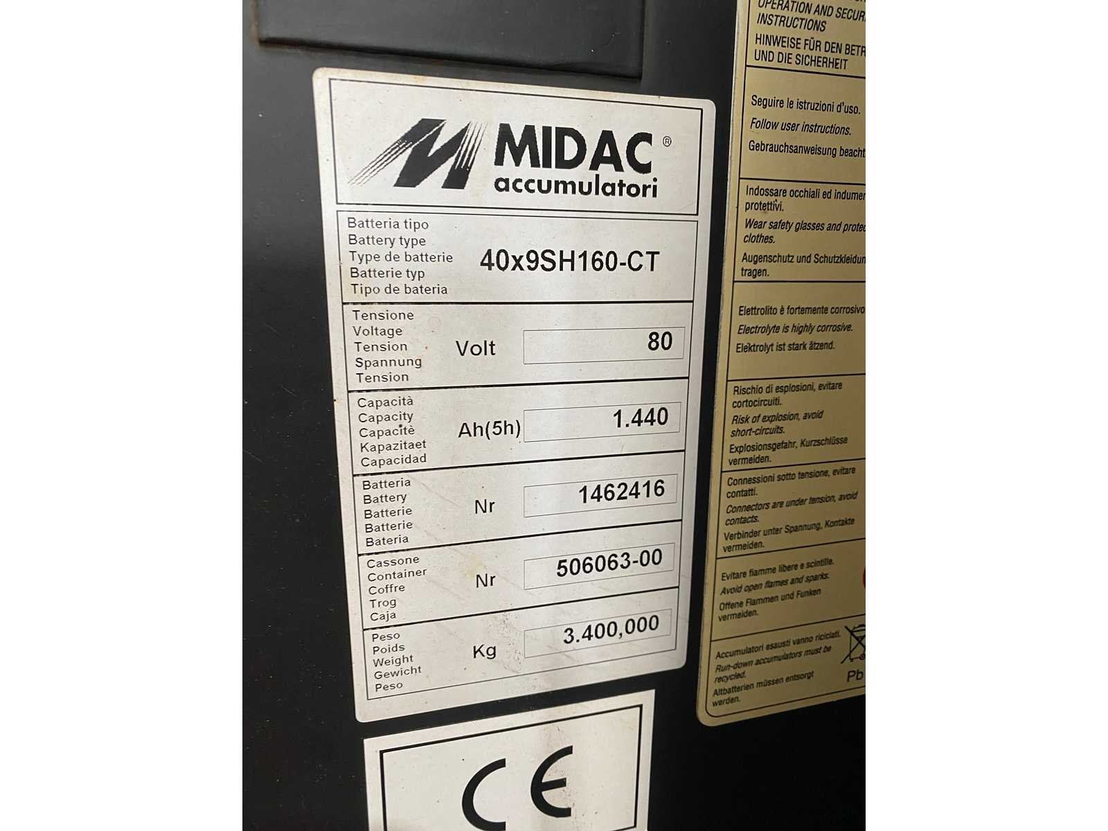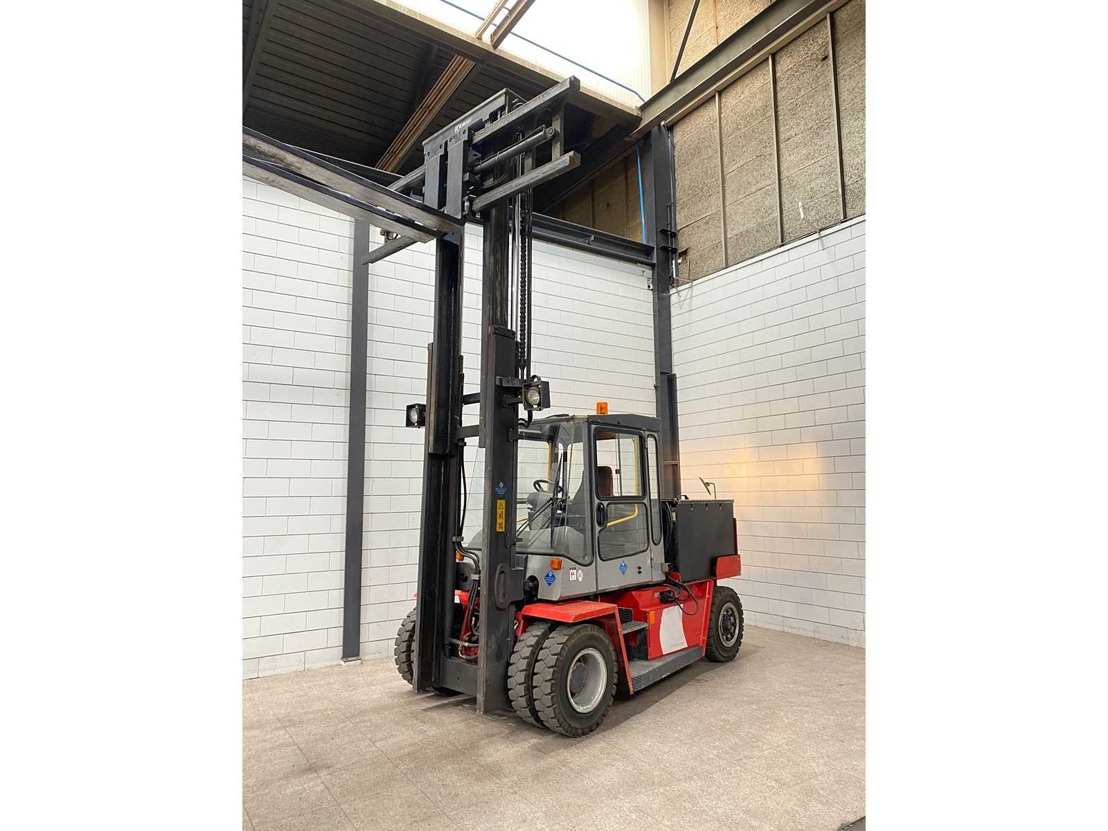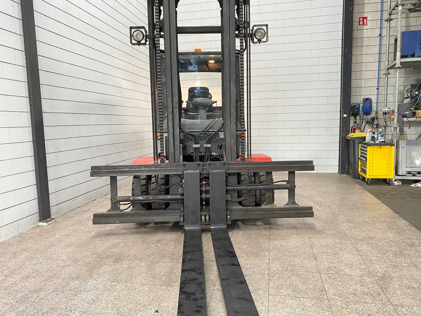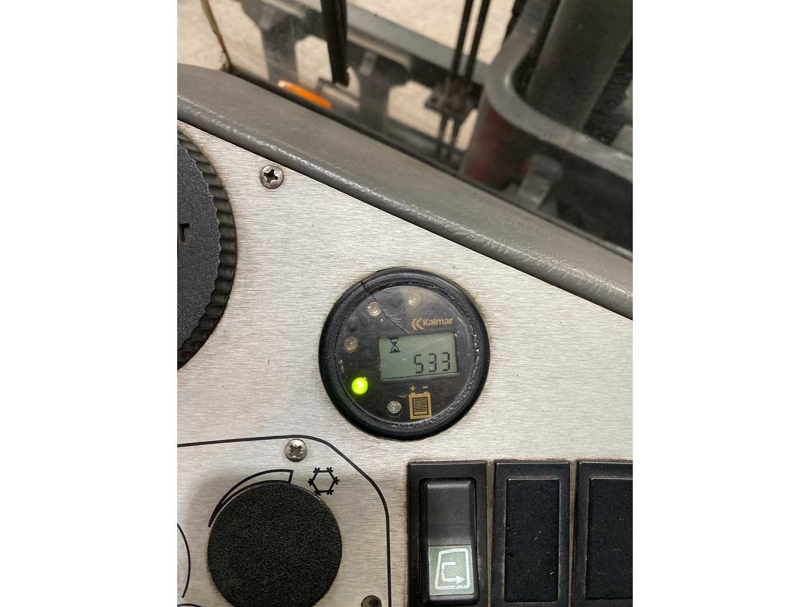 Vorkenspreider Werklampen Merk: Kalmar Type: ECD 80-6 Bouwjaar: 2001 Serienummer: T32207.0234 Brandstof: Elektrisch Aantal wielen: 6 Afgelezen urenstand: 530 Accu lader: true Side-shift: true Duplex mast: true Eigen gewicht: 8970kg Hefvermogen: 8000kg Hefhoogte: 4000mm Minimale doorrijhoogte: 3300mm Totale afmeting Hoogte: 3300mm