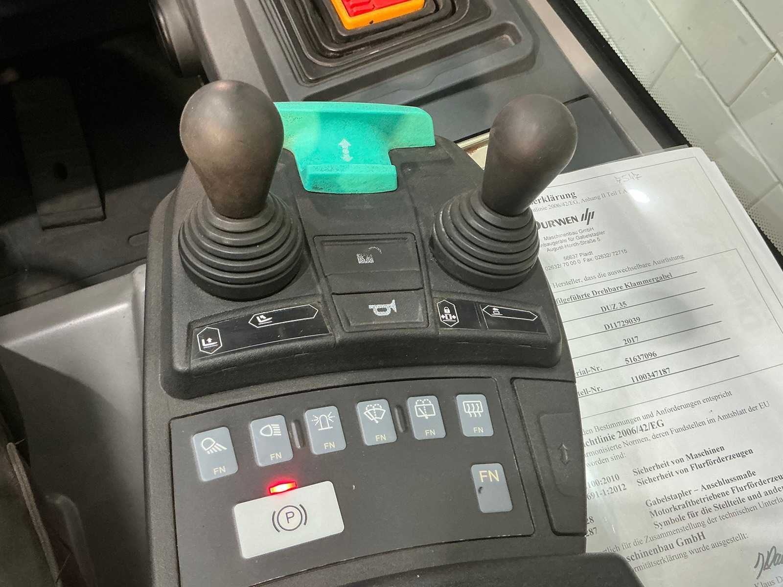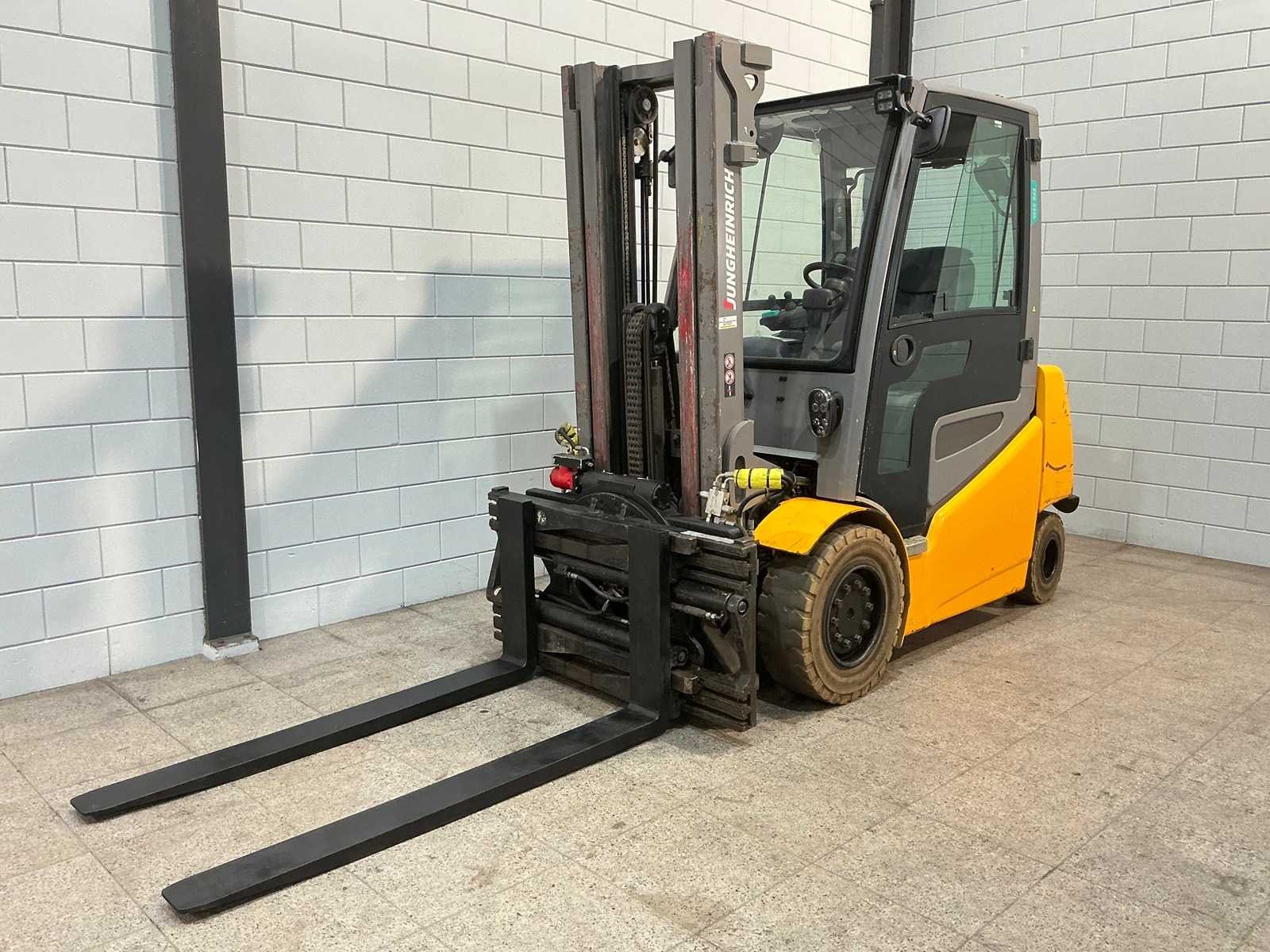 Merk: Jungheinrich Type: ÈFG535K Bouwjaar: 2017 Serienummer: FN552582 Brandstof: Elektrisch Mast: Triplex mast Soort band: Volrubber Aantal wielen: 4 Afgelezen urenstand: 4812 Accu lader: true Free-lift: true Side-shift: false Roterend vorkenbord: true Hydraulisch verstelbare lepels: true Triple mast: true Eigen gewicht: 6171kg Hefvermogen: 3500kg Lepellengte: 1600mm Hefhoogte: 5010mm Vol rubber banden: true Totale afmeting L: 3805mm Totale afmeting Breedte: 1340mm Totale afmeting Hoogte: 2370mm