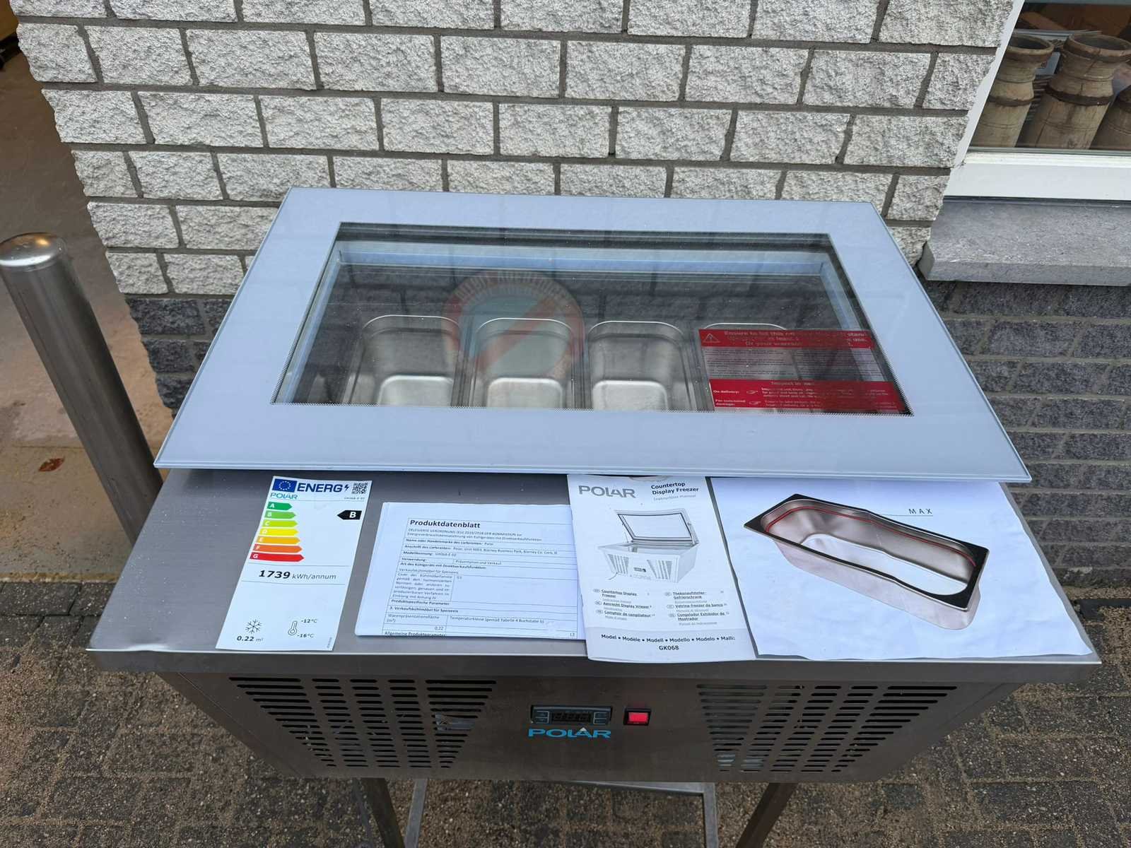 Ongebruikt, Schepijsvitrine Merk: Polar Type: GK068-E-02 Ingebouwde koelcompressor: true Aansluiting: 230V Digitale uitlezing: true Rvs: true