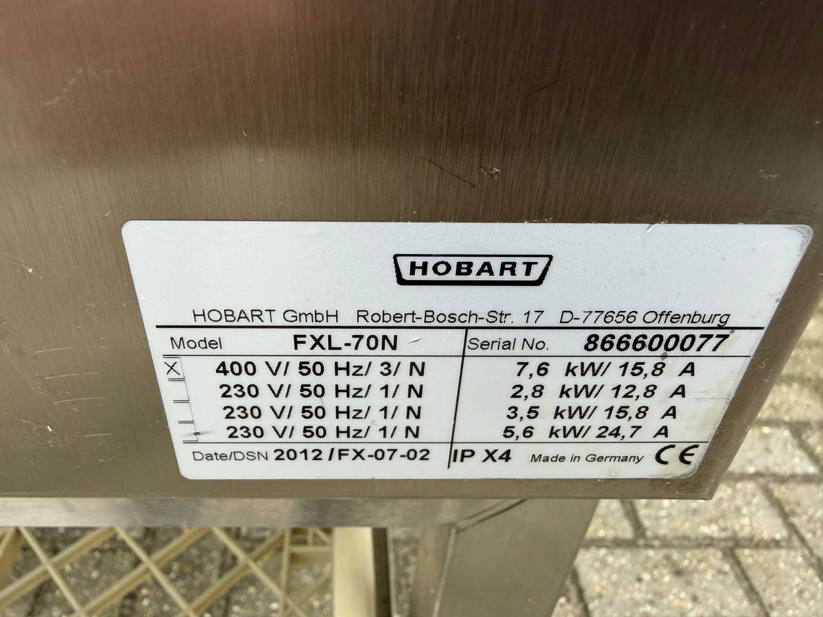 Merk: Hobart Type: FXL-70N Rvs: true Voorlader: true Aansluiting: 400V Bouwjaar: 2012