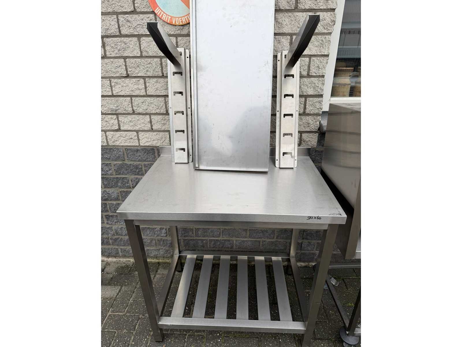 Werktafel + hangkast en een schap voor aan de wand, trolley onder hangkast zit er niet bij Merk: inox Type: Werk tafel + hang kast