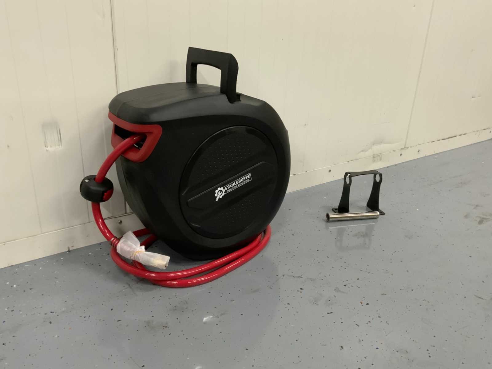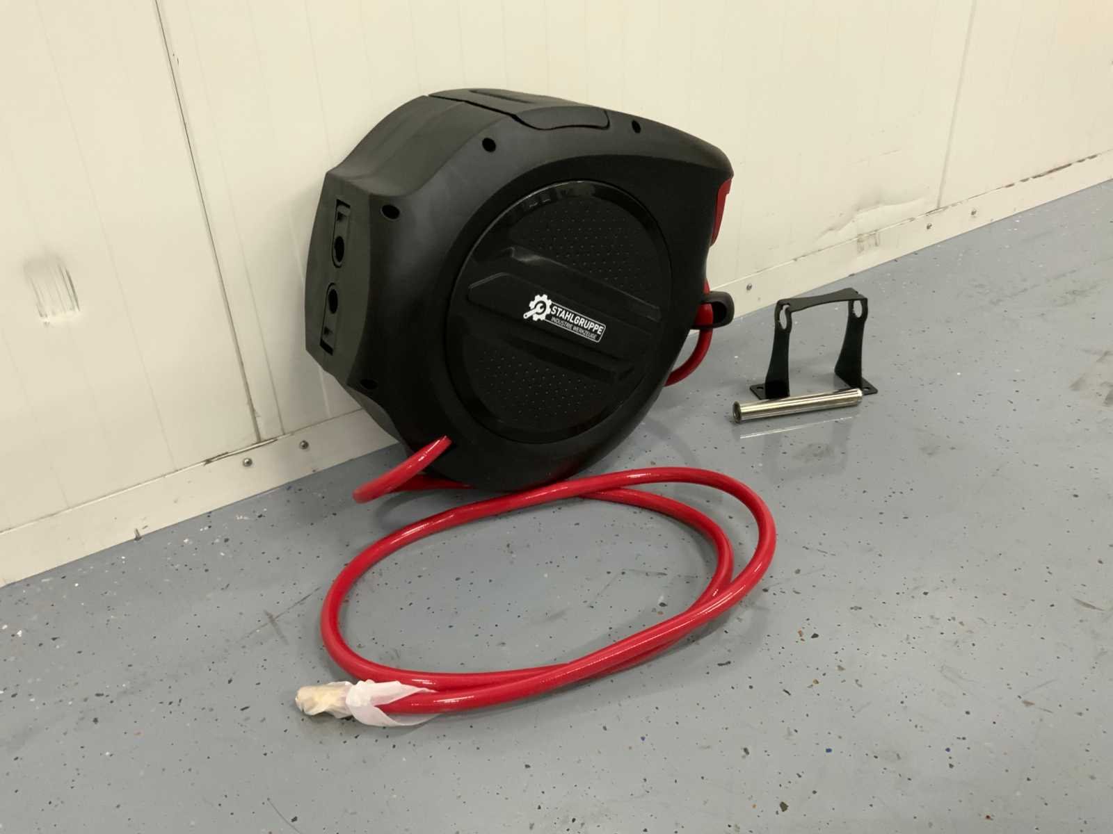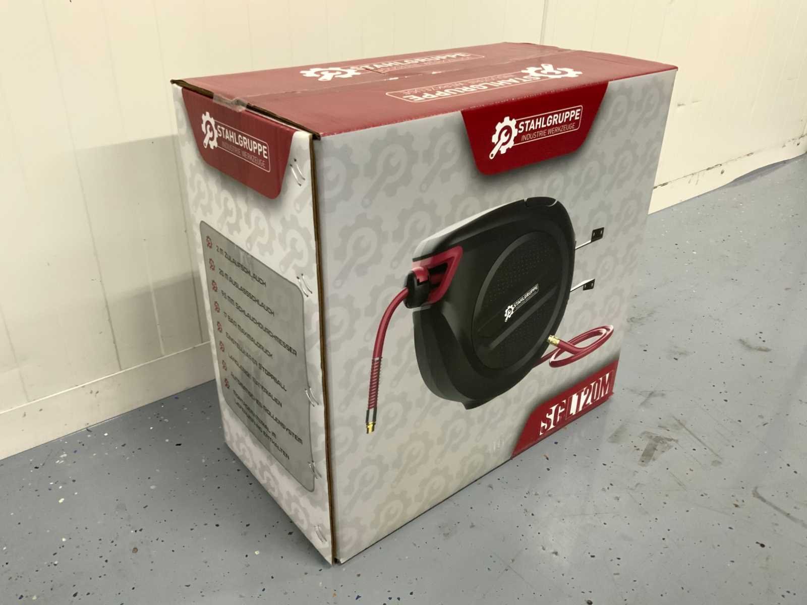 Ongebruikt 2 M Inlaatslang 20 M uitlaatslang 9,5 MM slangdiameter 17 BAR Max druk Verstelbare stop bal Duurzame materialen Automatisch haspelsysteem Montagemateriaal inbegrepen Merk: Stahlgruppe Type: SGLT20M Bouwjaar: 2025
