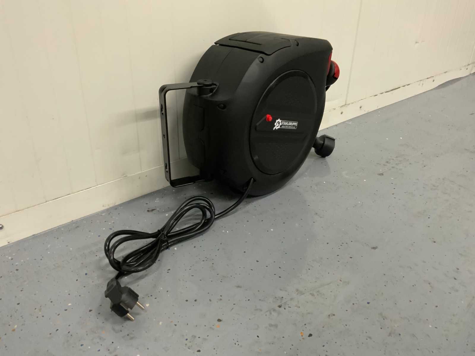 2 M ingaande kabel 20 M uitgaande kabel H 05 VV F 3G1.5mm 2500W volledig uitgerold 1000W volledig opgerold Verstelbare stop bal Overbelasting beveiliging Duurzame materialen Automatisch oprolsysteem Montagemateriaal inbegrepen Merk: Stahlgruppe Type: SGKT20M Bouwjaar: 2025 Aansluiting: 220V