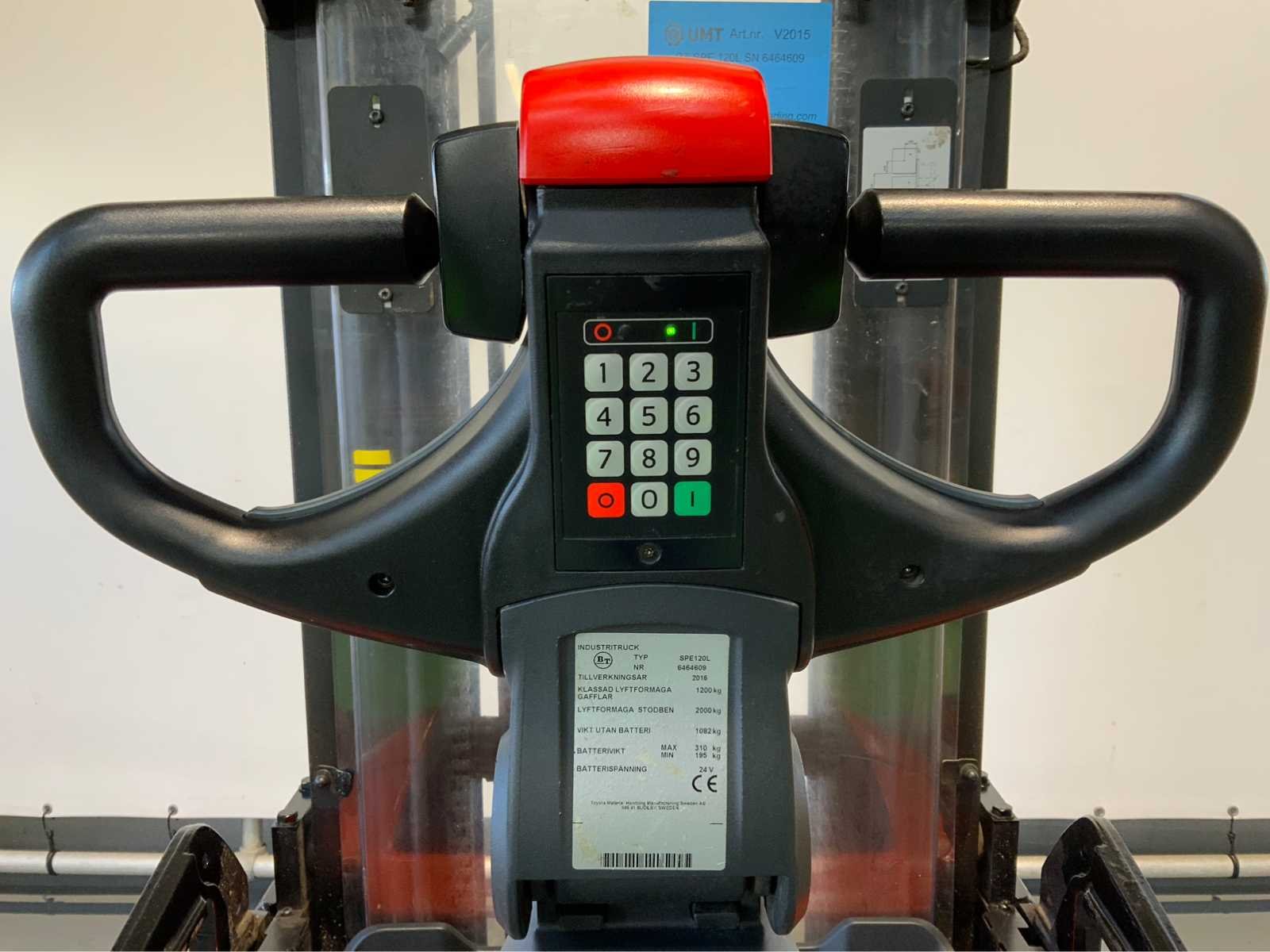 Merk: BT Type: SPE 120L Bouwjaar: 2016 Serienummer: 6464609 Hefvermogen: 1200kg Hefhoogte: 4000mm Lepellengte: 1150mm Afgelezen urenstand: 4211 Eigen gewicht: 1392kg Totale afmeting L: 2220mm Totale afmeting Breedte: 800mm Totale afmeting Hoogte: 2010mm Meerij stapelaar: true Accu lader: true