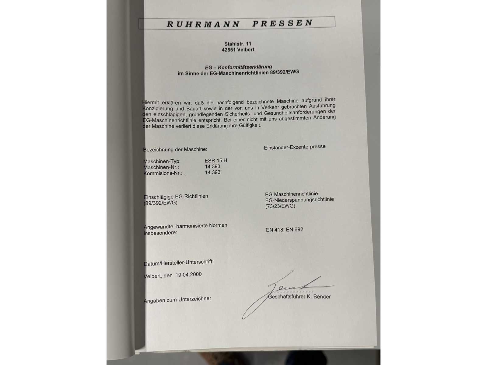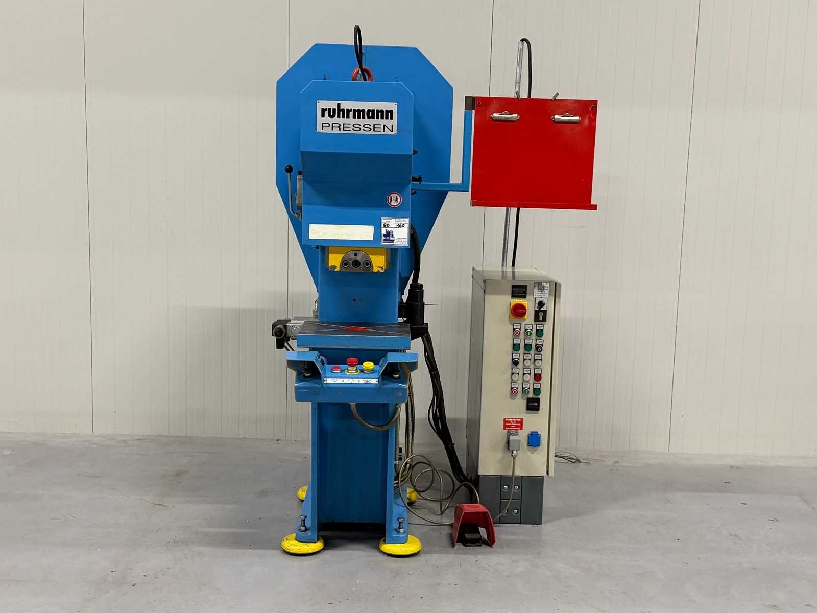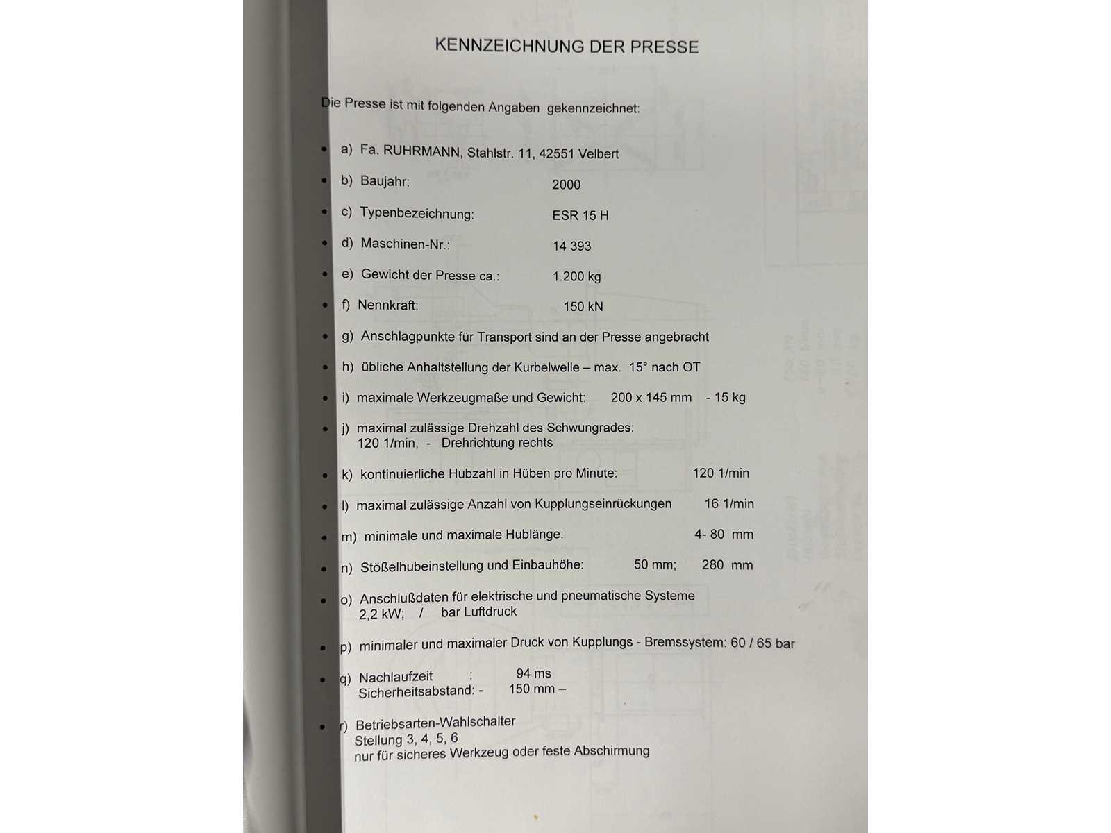 Machine reeds gereed voor transport en op kijkdag te beoordelen Merk: RUHRMANN Type: ESR15H Bouwjaar: 2000 Serienummer: 14395 Aansluiting: 400V Machinegewicht: 1200kg Afmeting l: 1500mm Afmeting b: 1500mm Afmeting h: 2100mm
