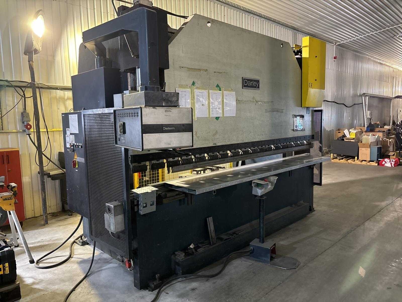 Machine reeds gereed voor transport en op kijkdag te beoordelen. Merk: DARLEY Type: EHP 200/3600 Capaciteit.: 200t Werklengte: 3600mm CNC-besturing, merk, type: Delem DA65 Aansluiting: 400V