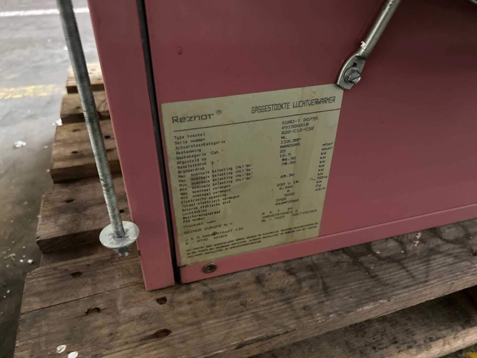 Merk: Reznor Type: Euro-T 2075 Serienummer: 951500318 Lengte: 1200cm Breedte: 800cm Hoogte: 140cm