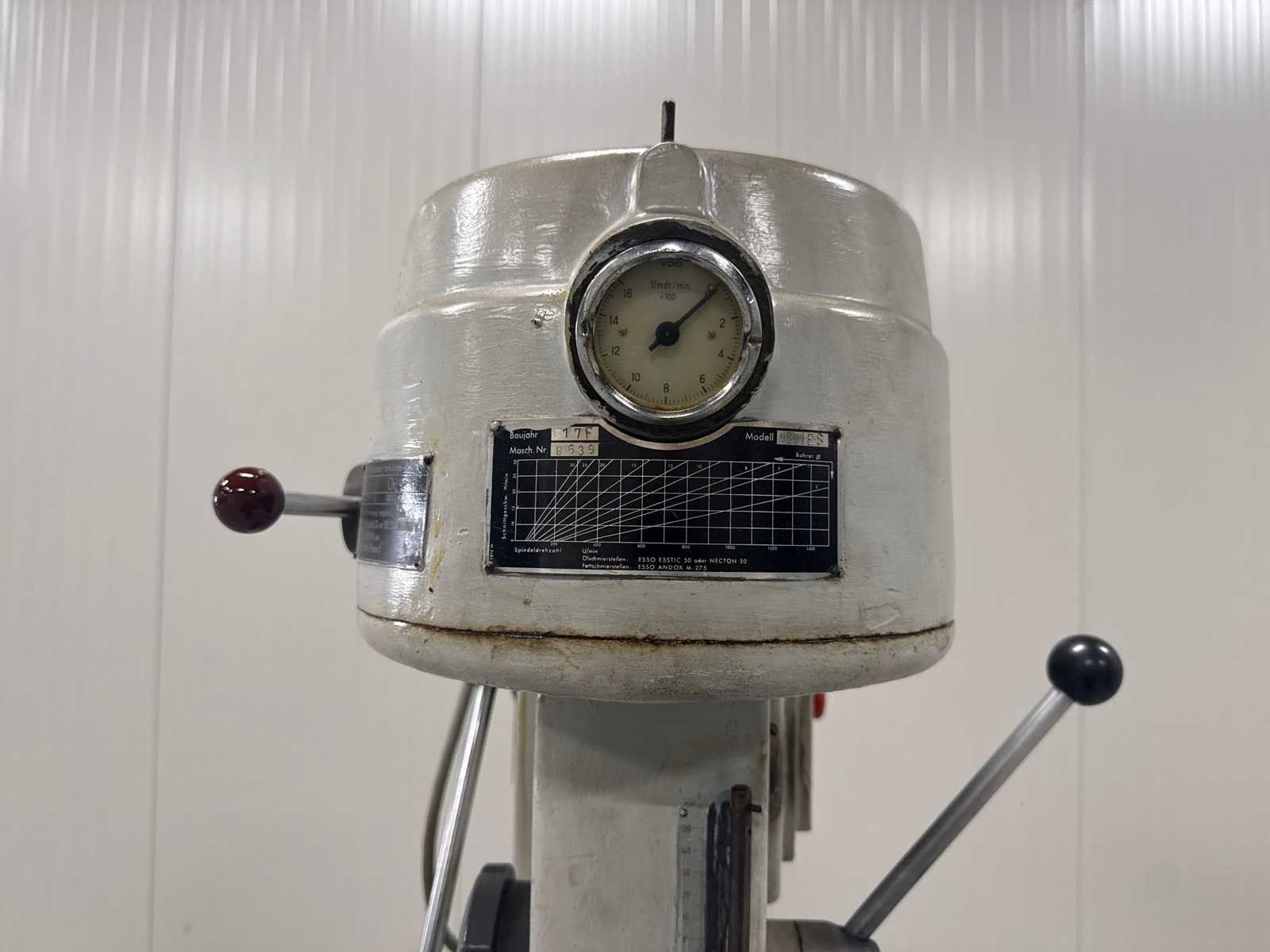 Merk: Alzmetall Type: AB3IES Serienummer: 8639 Boorcapaciteit: 30mm Spindelsnelheid van n =: 160rpm Spindelsnelheid tot n =: 1420rpm Boordiepte: 150mm Tandwiel aangedreven: true Tafel afmeting l: 355mm Tafel afmeting b: 320mm Aansluiting: 380V Machinegewicht: 150kg Afmeting l: 900mm Afmeting b: 500mm Afmeting h: 1850mm
