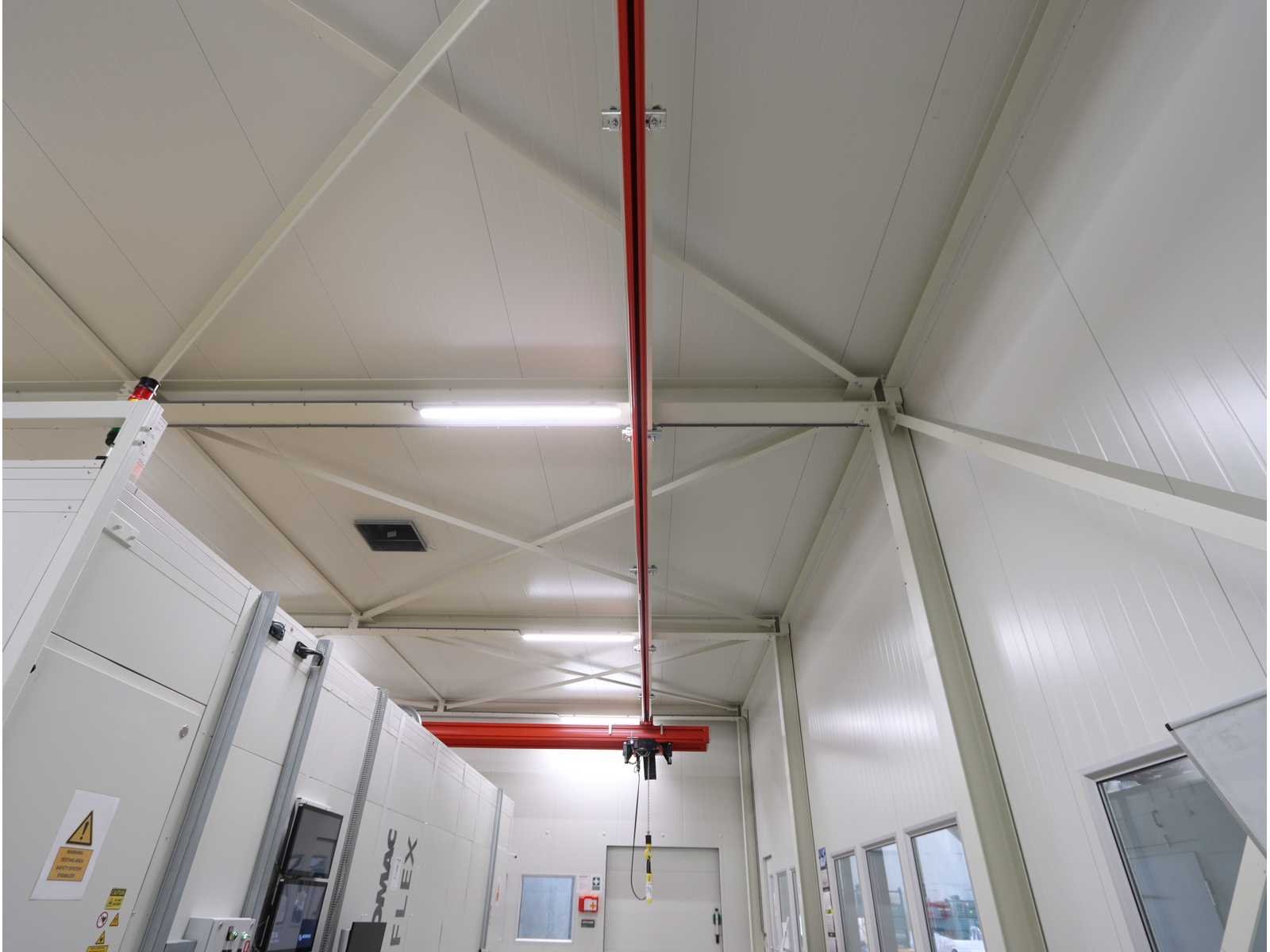 3-zijdig met schuifdeur, 8 ramen, instapdeur, overhangende reiskraan met "Konecranes" elektrische kettinghijscapaciteit 1250 kg, LED-lampen, stalen constructie en bovenop gebouwde "Robatherm" luchtbehandelingsunit type Tl50-09/12, capaciteit 7640m³, bestaande uit: 2 filterunits, 2 dempers, 2 ventilatoren, luchtbevochtiger en ingebouwde E-heater (koelunit niet inbegrepen) Merk: Unisol Panel Bouwjaar: 2022 Totale afmeting L: 12500mm Totale afmeting Breedte: 15000mm Totale afmeting Hoogte: 5050mm
