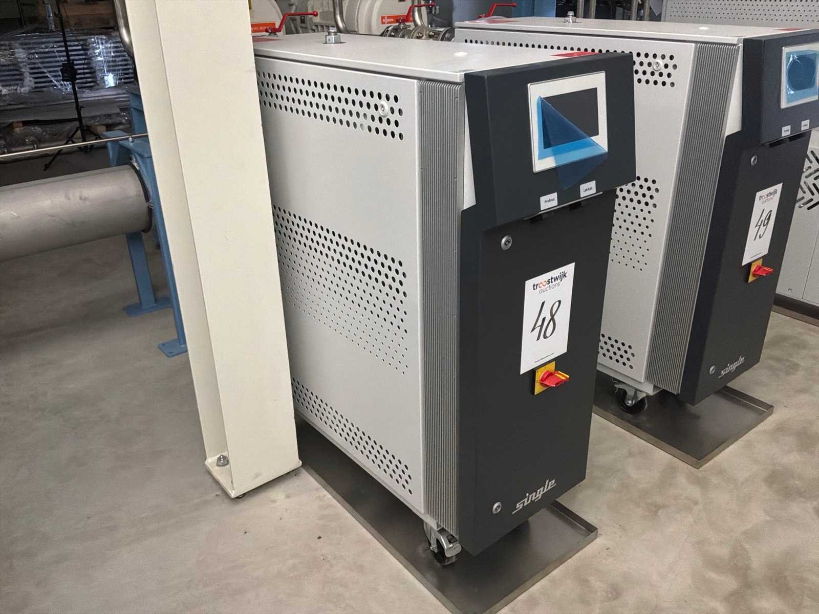 Ongebruikt!, temperatuurbereik 20-300°C, verwarming 26A-18kW, koeling 50kW Merk: Single Type: Oil advanced D2-300 Bouwjaar: 2023 Serienummer: 232345 Capaciteit: 23,3kVA Eigen gewicht: 195kg Totale afmeting L: 1350mm Totale afmeting Breedte: 400mm Totale afmeting Hoogte: 1180mm