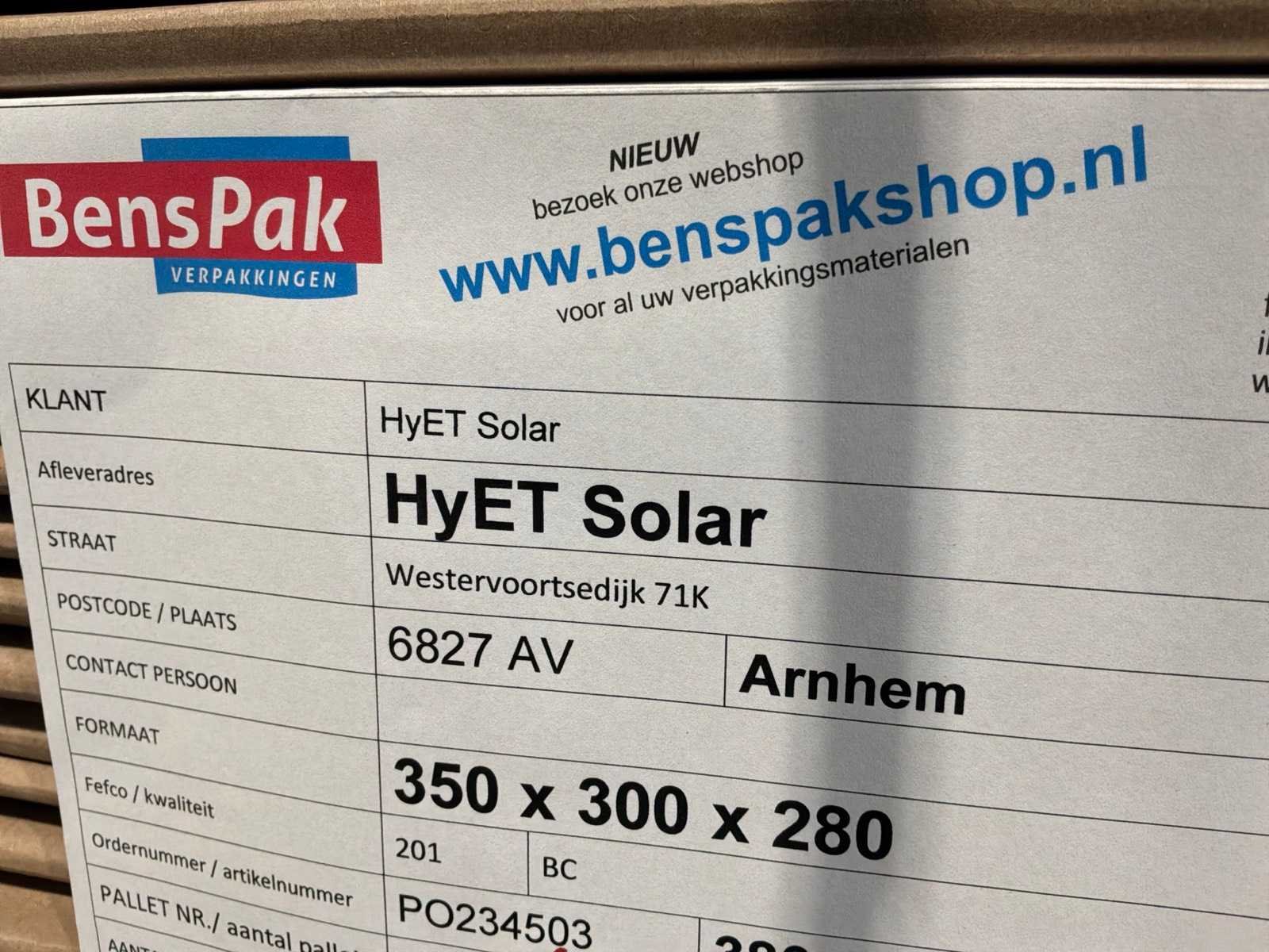Afmetingen 350x300x280mm, ongeveer 265 p/pallet, op 4 pallets