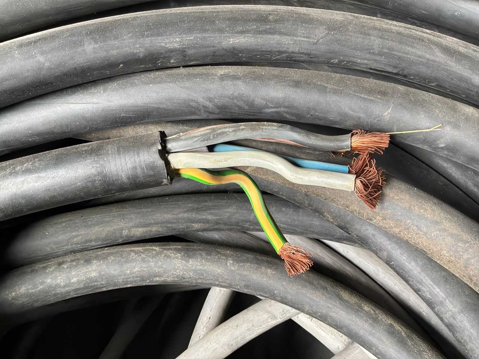 1 batch elektrische stroomkabels, waaronder een plastic krat.