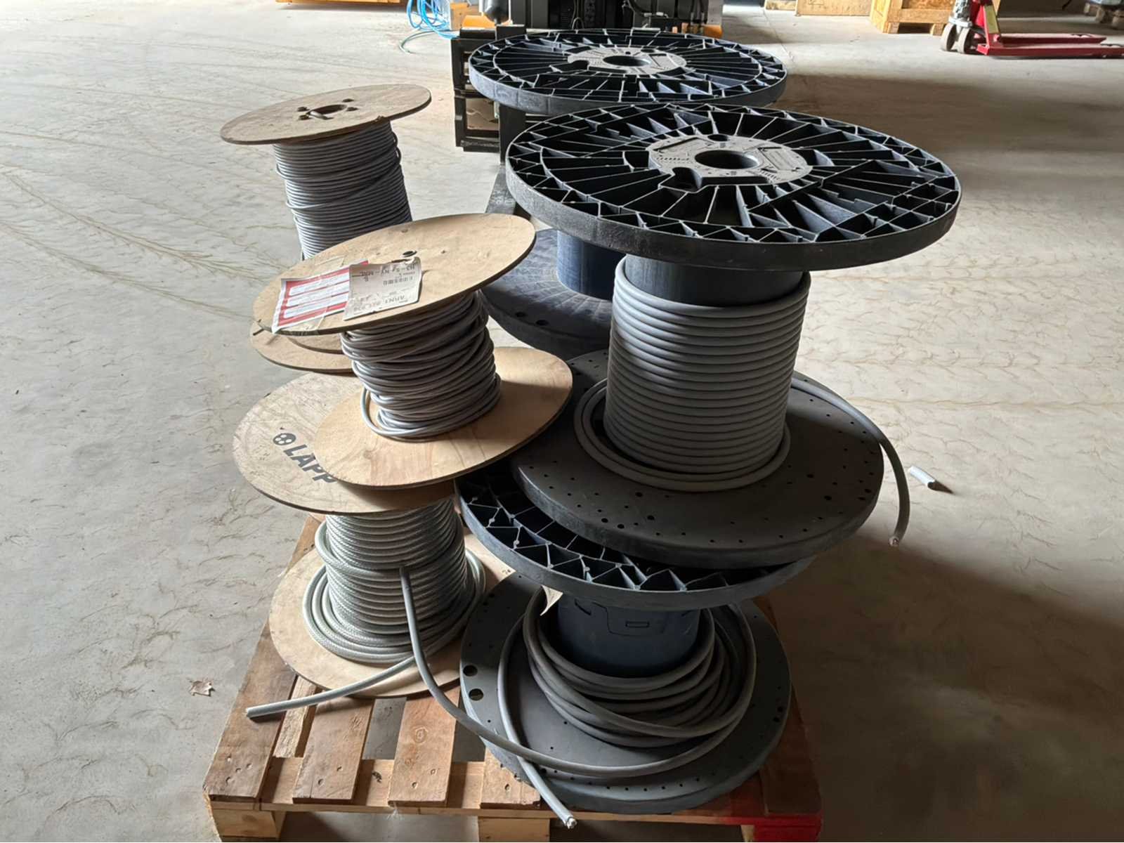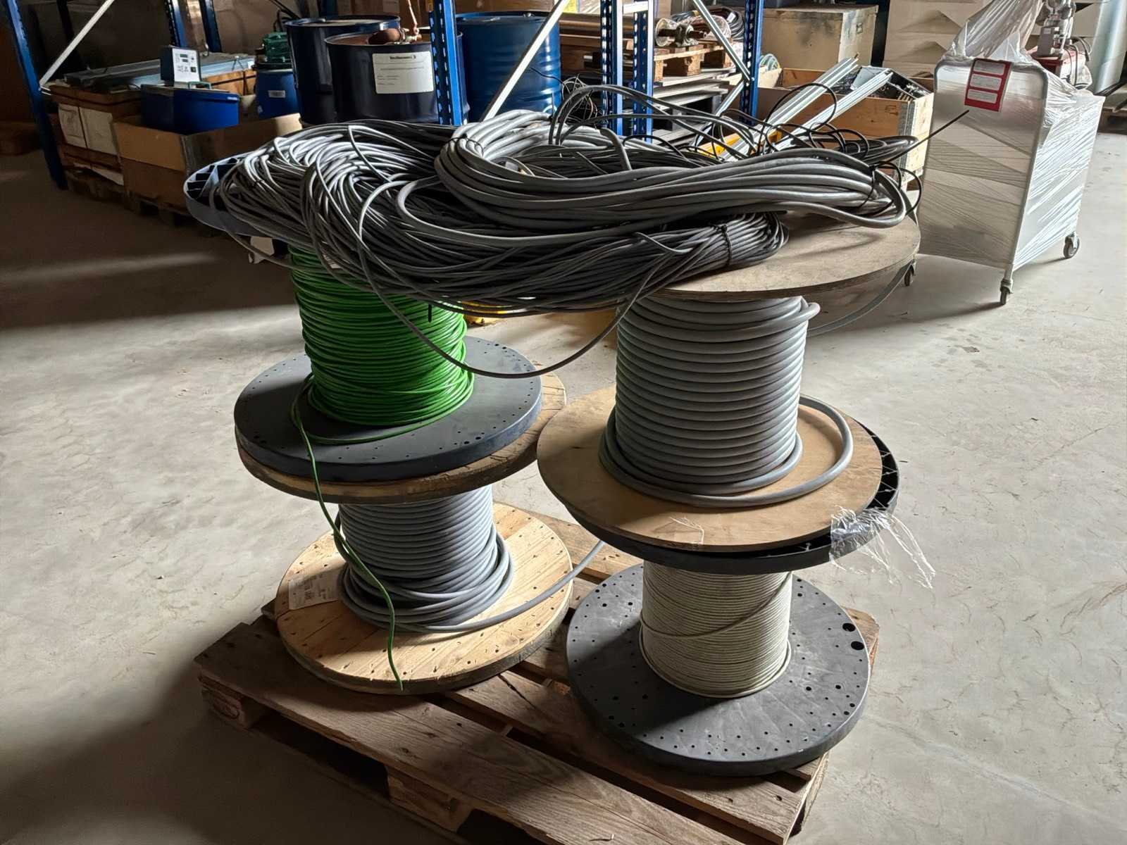 1 stuk draad, kabels en connectoren, bestaande uit: "olflexl signaalkabel", afgeschermde stroomkabel, "Draka" stroomkabel 4mm2, "Siemens" simatec net 6xV1 kabel, "Brand-Rex" UTP kabel Cat6), 6 dozen Solarcel connectoren. Op een met 5 pallets.