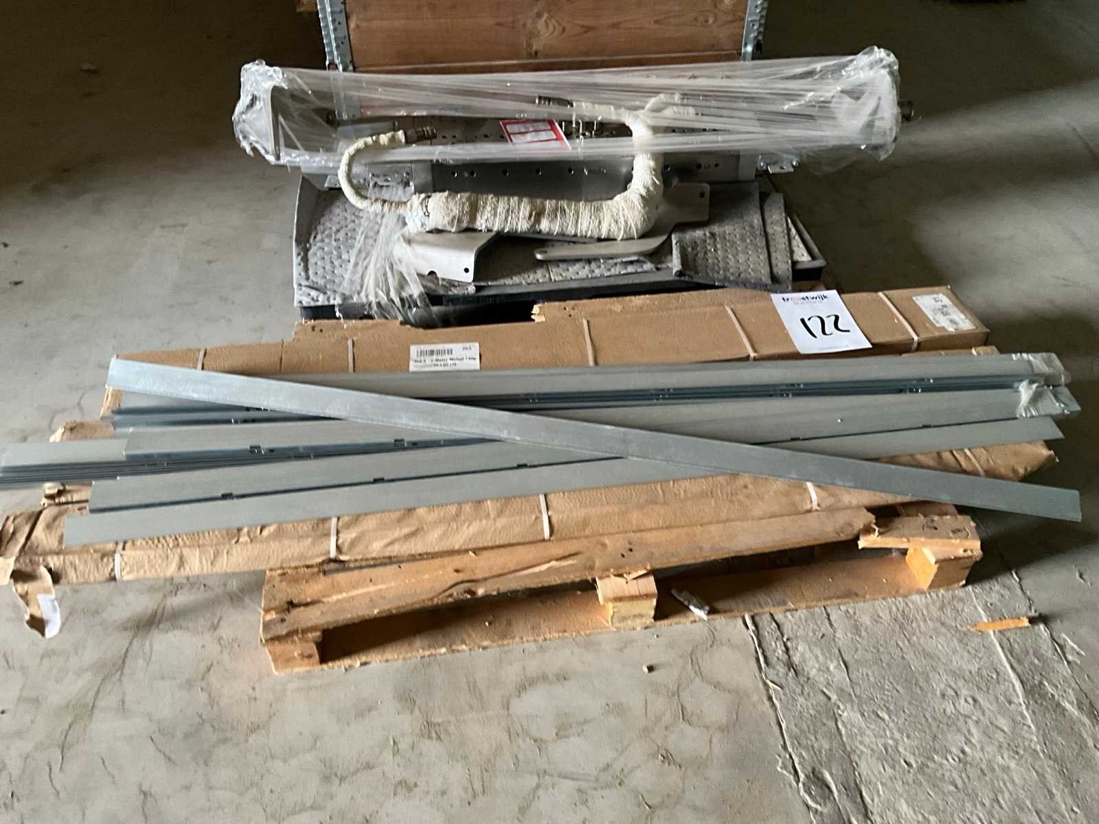 Bestaande uit stalen strips, persluchtcomponenten, aluminium frameonderdelen, membraanpomp, verwarmingselementen, folie, machineonderdelen, stofzuiger, enz., op 9 pallets