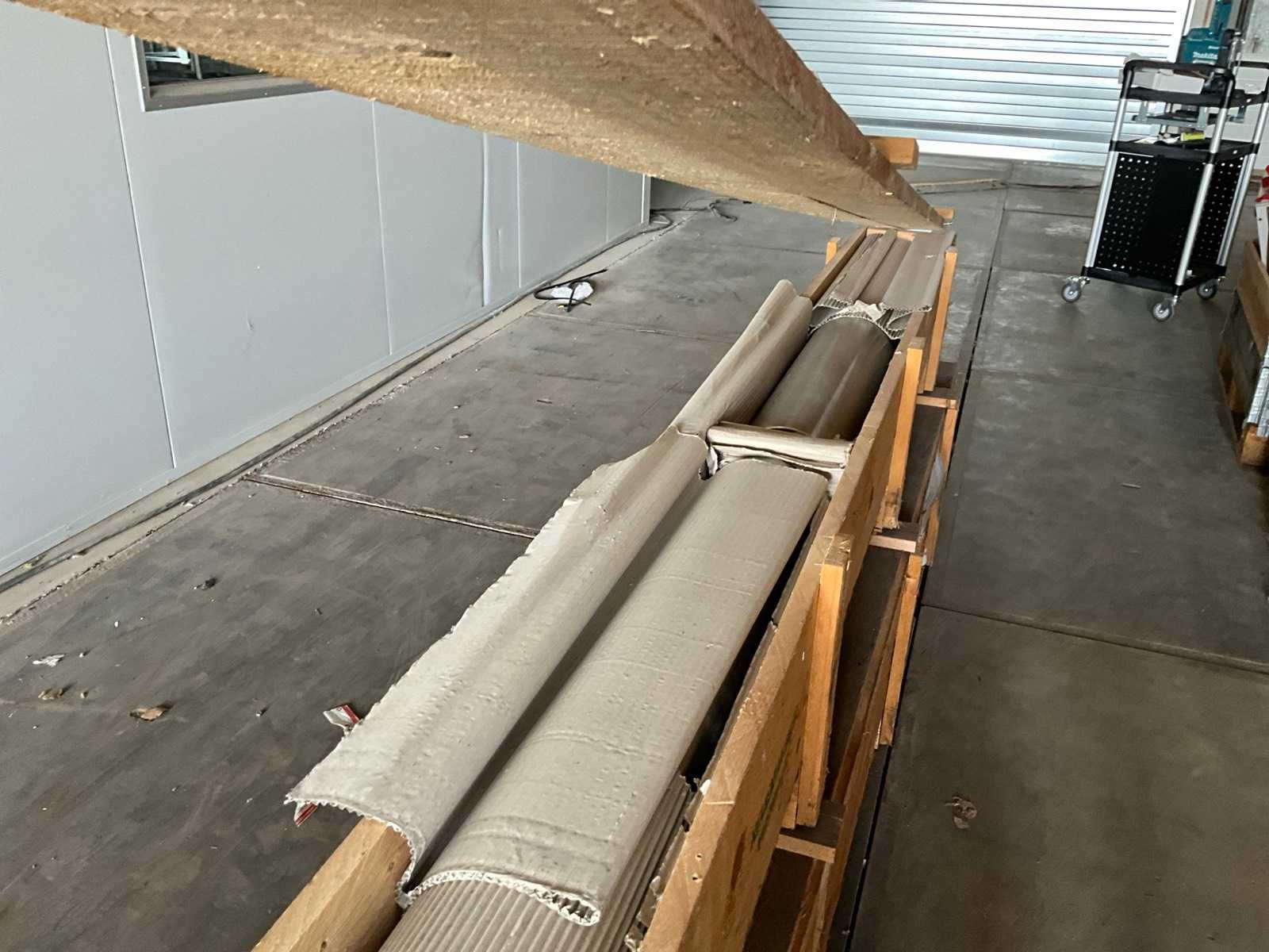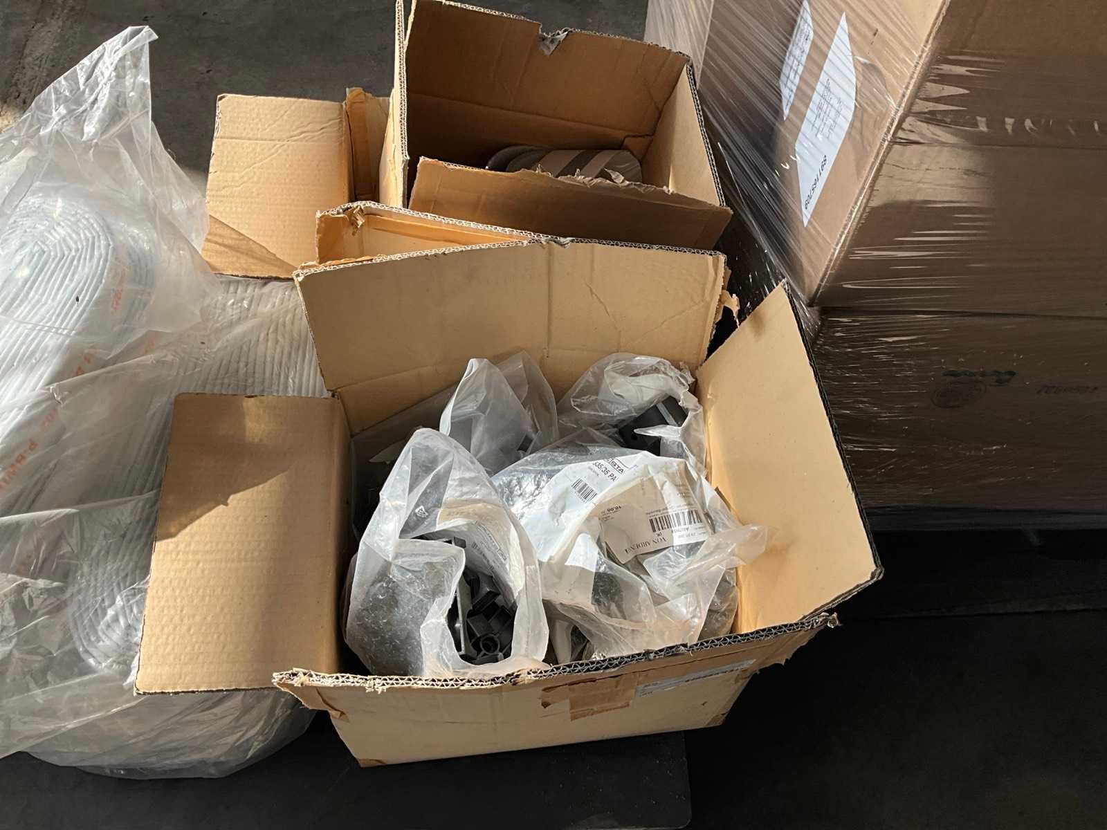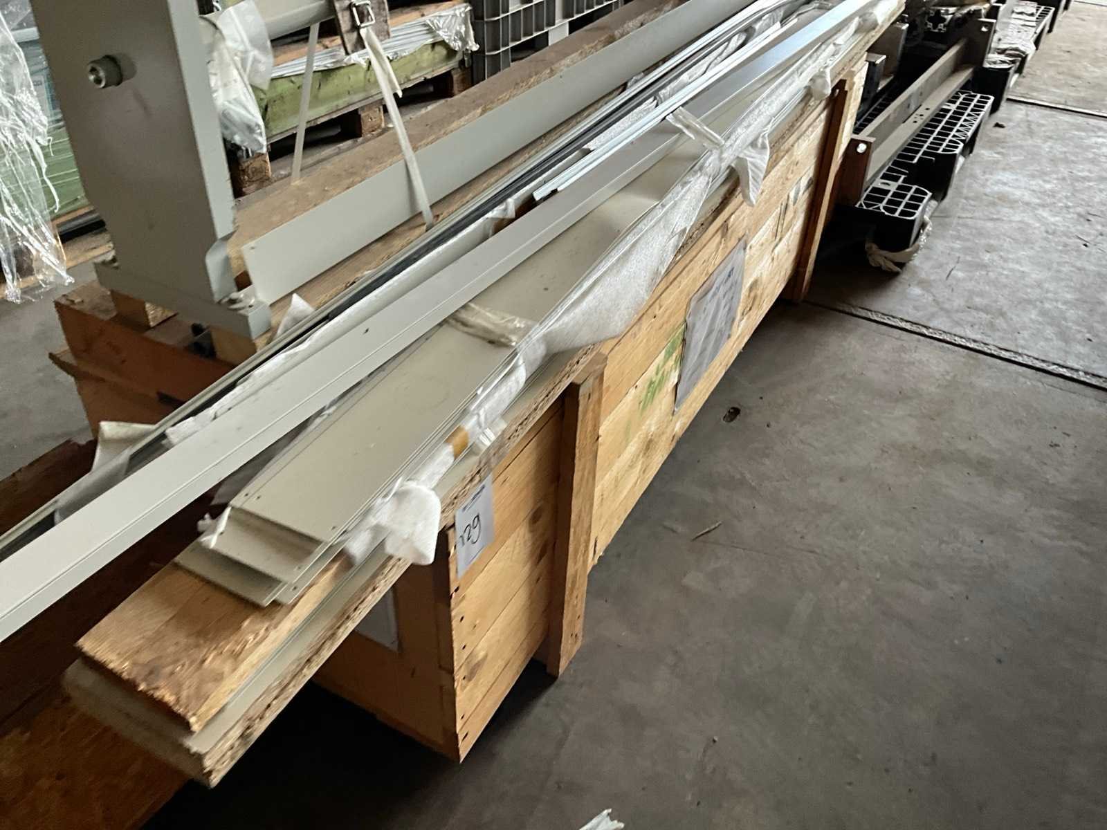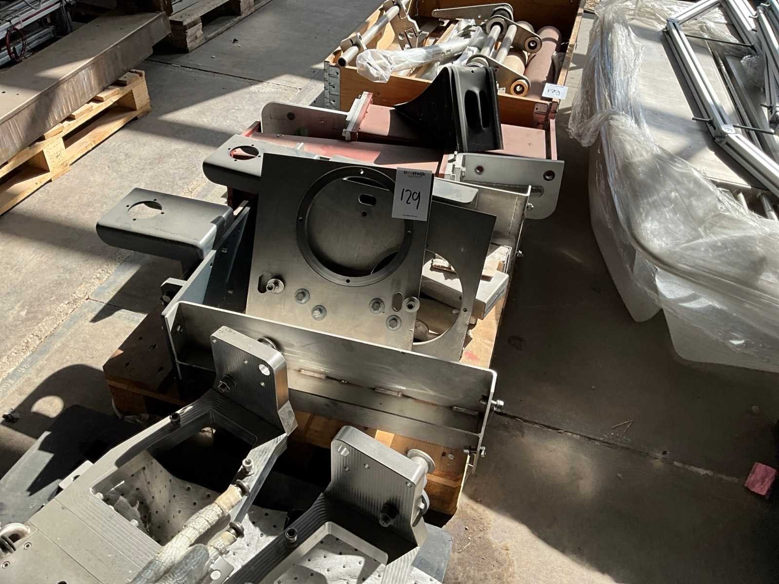 Bestaande uit 21 pallets, waaronder aluminium frameonderdelen, roestvrijstalen machineonderdelen, elektrische componenten, kabels, buizen, houten kratten met mouwen, schaal, barrièrematerialen, enzovoort