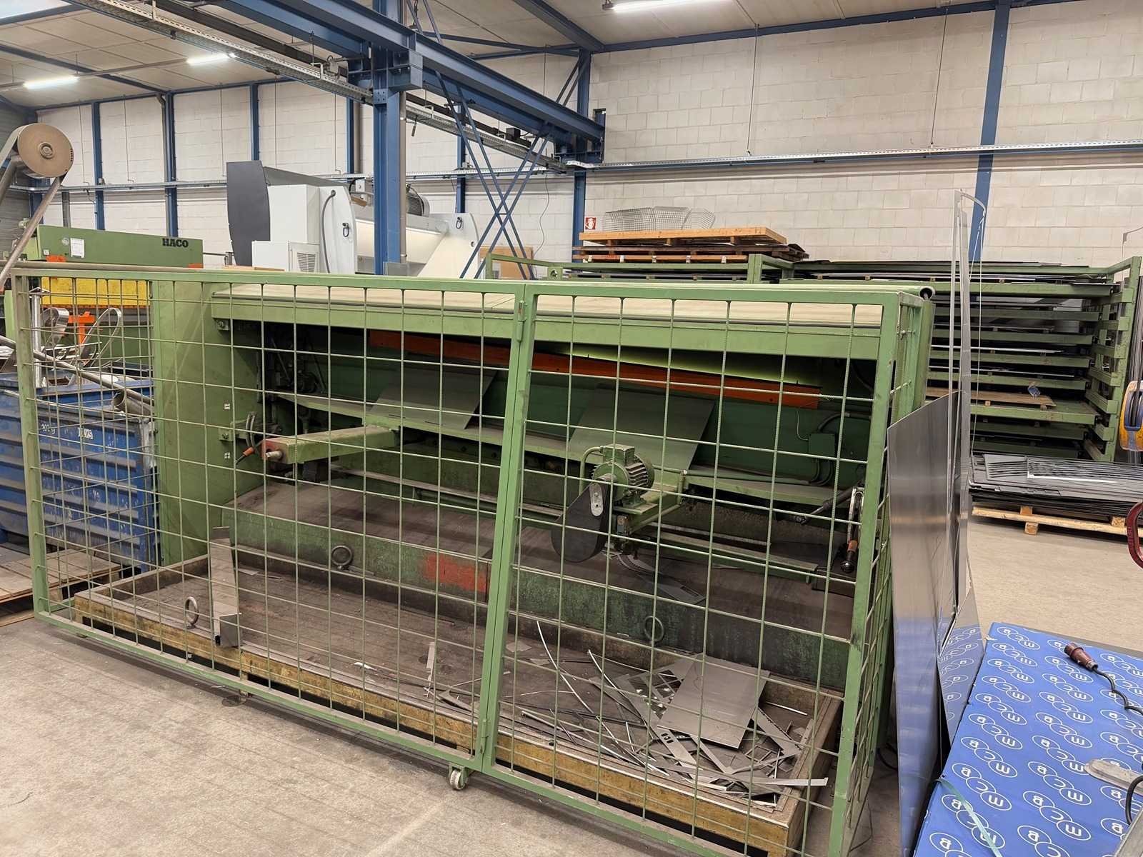 Snijspeling: handmatig Staat van messen: goed Minimale snijhoek: 0.5° Maximale snijhoek: 3° Aantal neerhouders: 13 Lengte en aantal plaatdragers: 8x 500 mm 1x1000mm linkeraanslag + meetlat Voorzien van hooghoudinrichting: Nee Slagen per minuut bij kleinste hoek: 10-15 Slagen per minuut bij grootste hoek: 6 Werk hoogte: 770mm Merk: HACO Type: TS 306 Bouwjaar: 1984 Serienummer: 65369 Snijlengte: 3050mm Max. plaatdikte: 6mm Achteraanslag bereik: 750mm Max. slagen p/min.: 15 Motorvermogen (kW): 7,5kW Machinegewicht: 4500kg Afmeting l: 3880mm Afmeting b: 1650mm Afmeting h: 1700mm Leveringsvoorwaarden: Niet gefundeerd - onverpakt