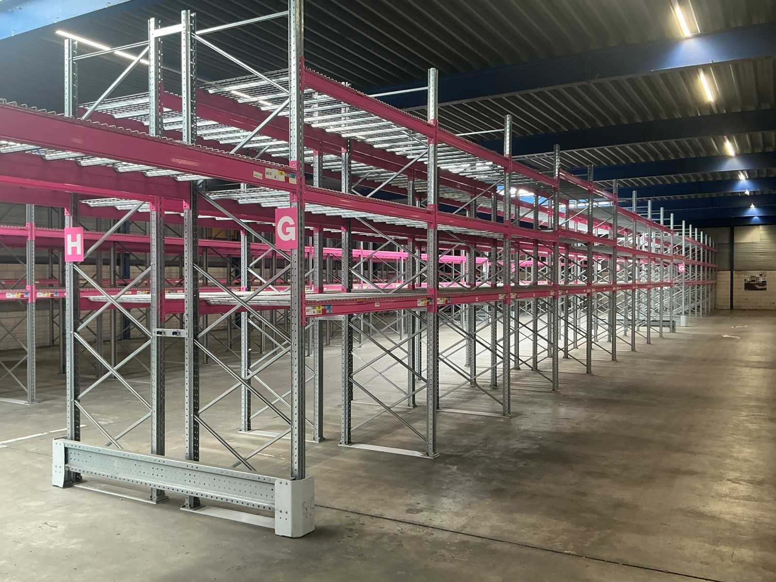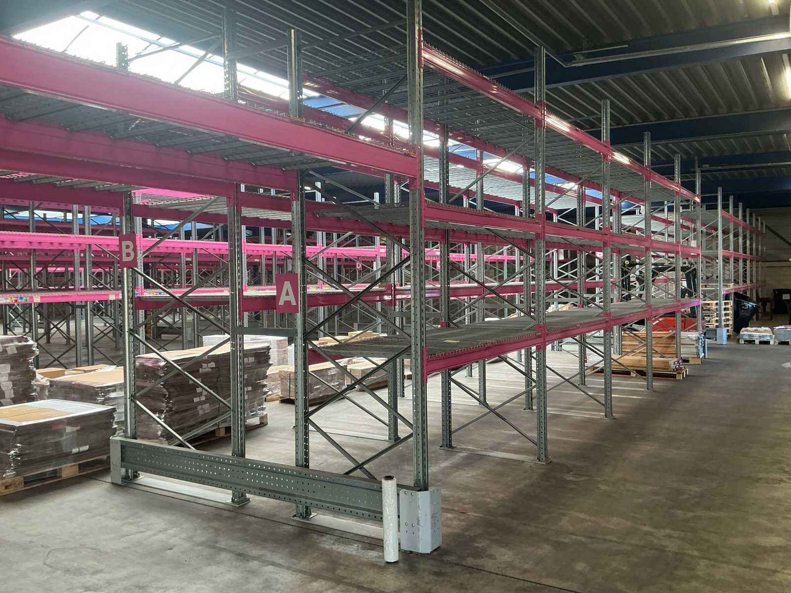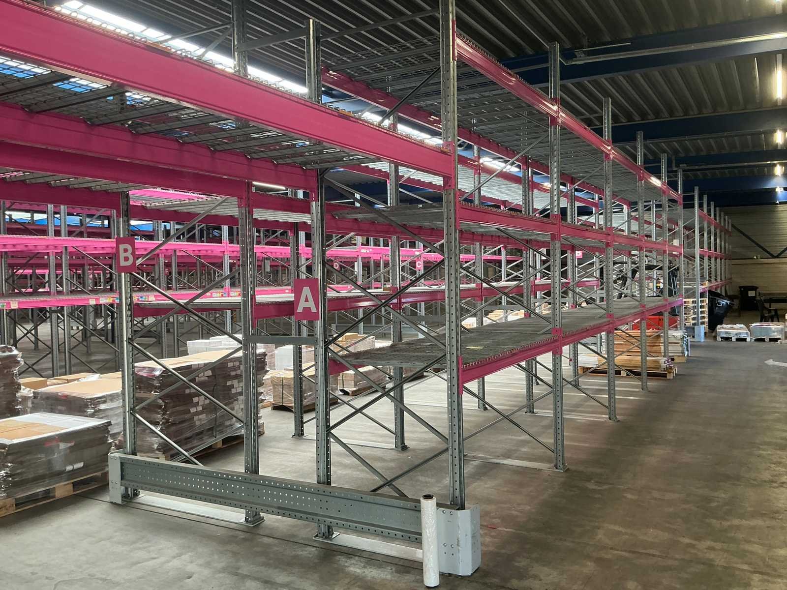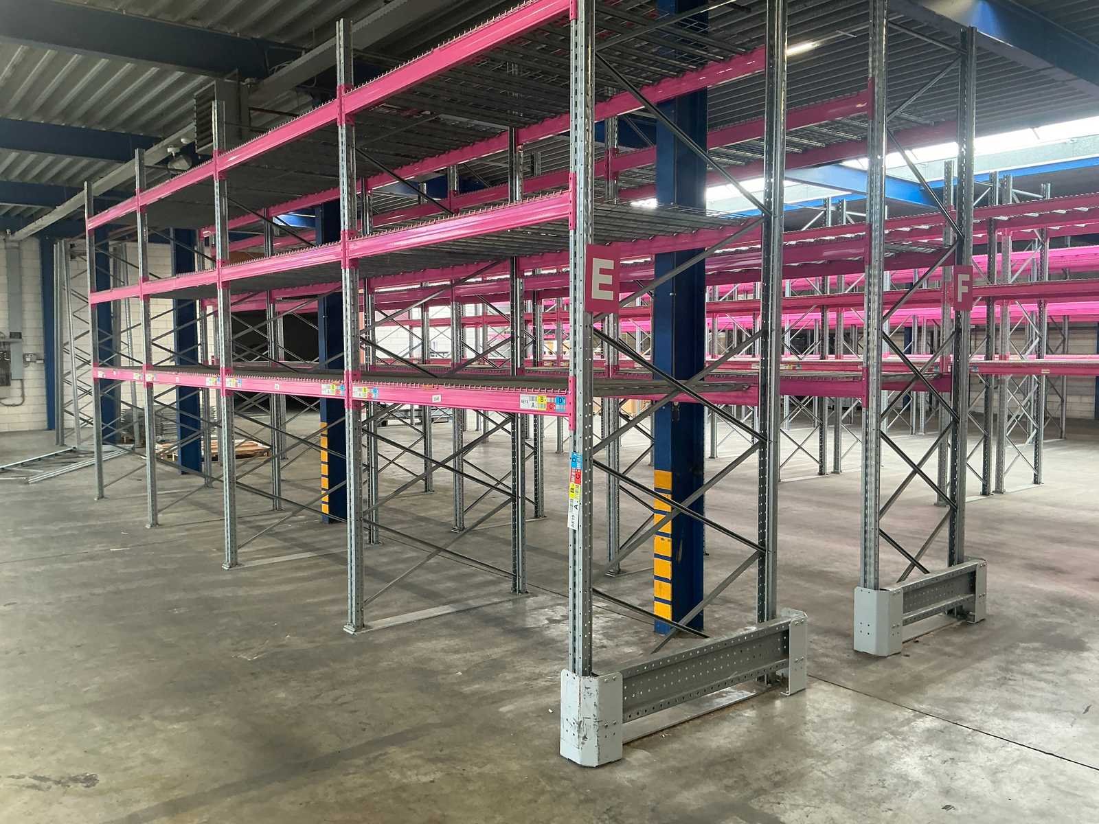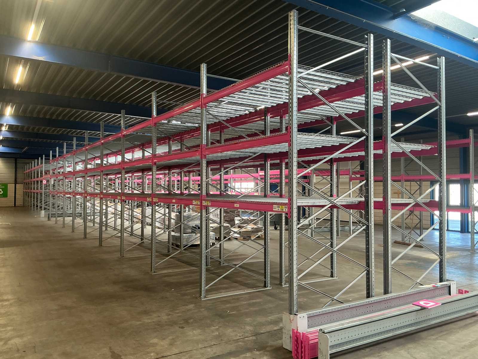 Voorzien van MantaMesh legborden in 750/1000/1250 kg UDL dit kan per sectie verschillen, Ligger type A1240 2225mm (228cm totaal) Elke sectie bestaande uit 3 niveaus (6 liggers + doorvalbeveiliging) Merk: Rosss Type: 90R Bouwjaar: 2021 Aantal secties: 217 Sectie afm. b: 2225mm Sectie afm. h: 3900mm Max. sectiebelasting: 9600kg Totale afmeting Breedte: 140cm Totale afmeting Hoogte: 390cm Breedte: 140cm Hoogte: 390cm