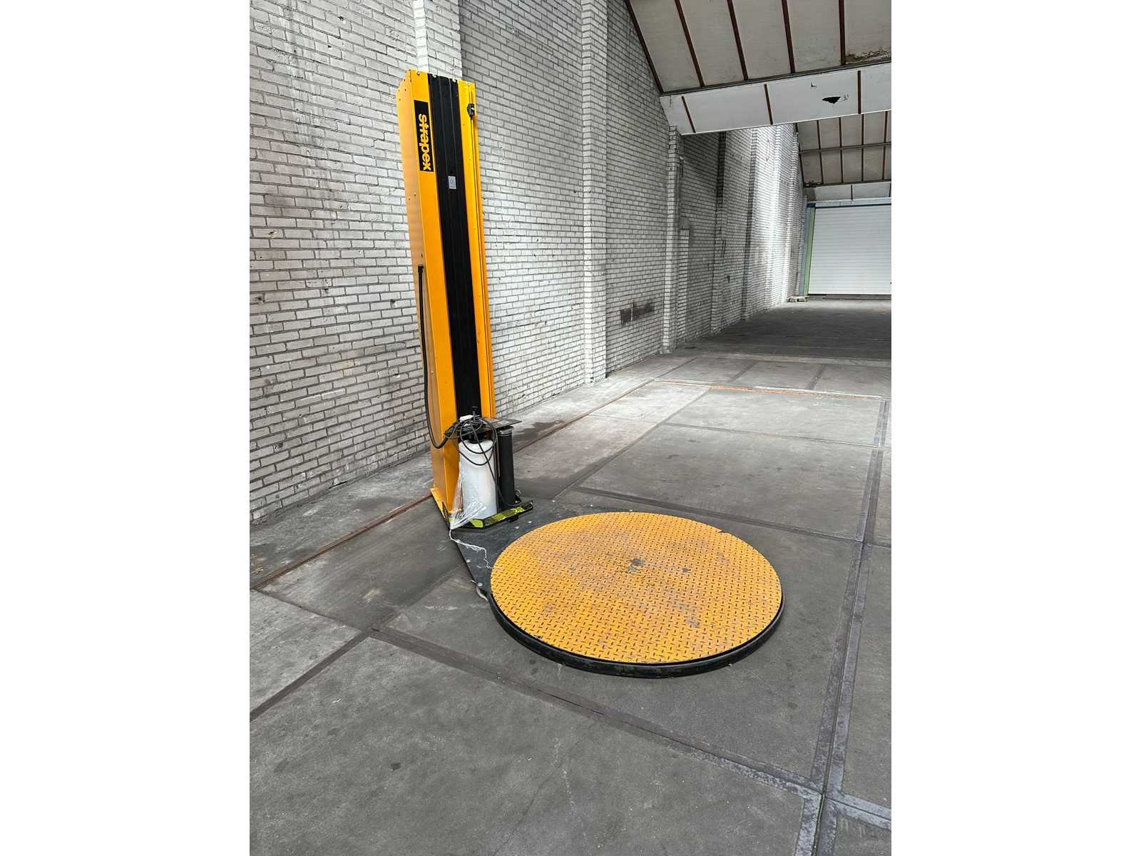 Voorzien van: folie, draaifunctie, liftfunctie, Max 1500kg lift capaciteit Merk: Strapex Type: 606 Bouwjaar: 2007 Serienummer: 8854 Plateau Ø: 1450mm Aansluiting: 230V Eigen gewicht: 640kg Totale afmeting L: 3000mm Totale afmeting Breedte: 1400mm Totale afmeting Hoogte: 2000mm