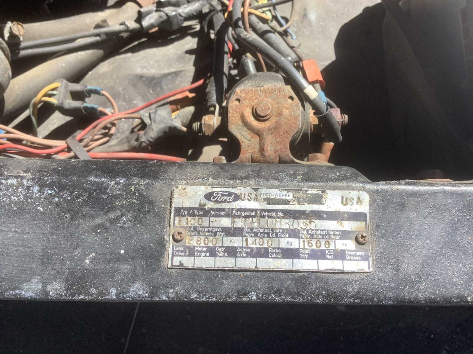 Goed rijdende auto Kenteken: 9vkt80 Merk: ford Type: f100 Bouwjaar: 1977 Chassisnummer: floh083035 Afgelezen mijlenstand: 65121mi Model: F 100 NAP status: Undetermined Brandstof: benzine Datum eerste toelating: 1977-02-02 APK vervaldatum: 2026-09-24 Kentekenpapieren compleet?: true Carrosserie: Vrachtwagen Vermogen (pk): 145 Vermogen (kW): 108kW Emissieklasse: 0 Aantal deuren: 2 Aantal zitplaatsen: 3 Startinformatie: start en rijdt Kleur: blauw Cilinderinhoud: 5689 Aantal cilinders: 8 Ledig gewicht: 2040 Self drive export possible : true
