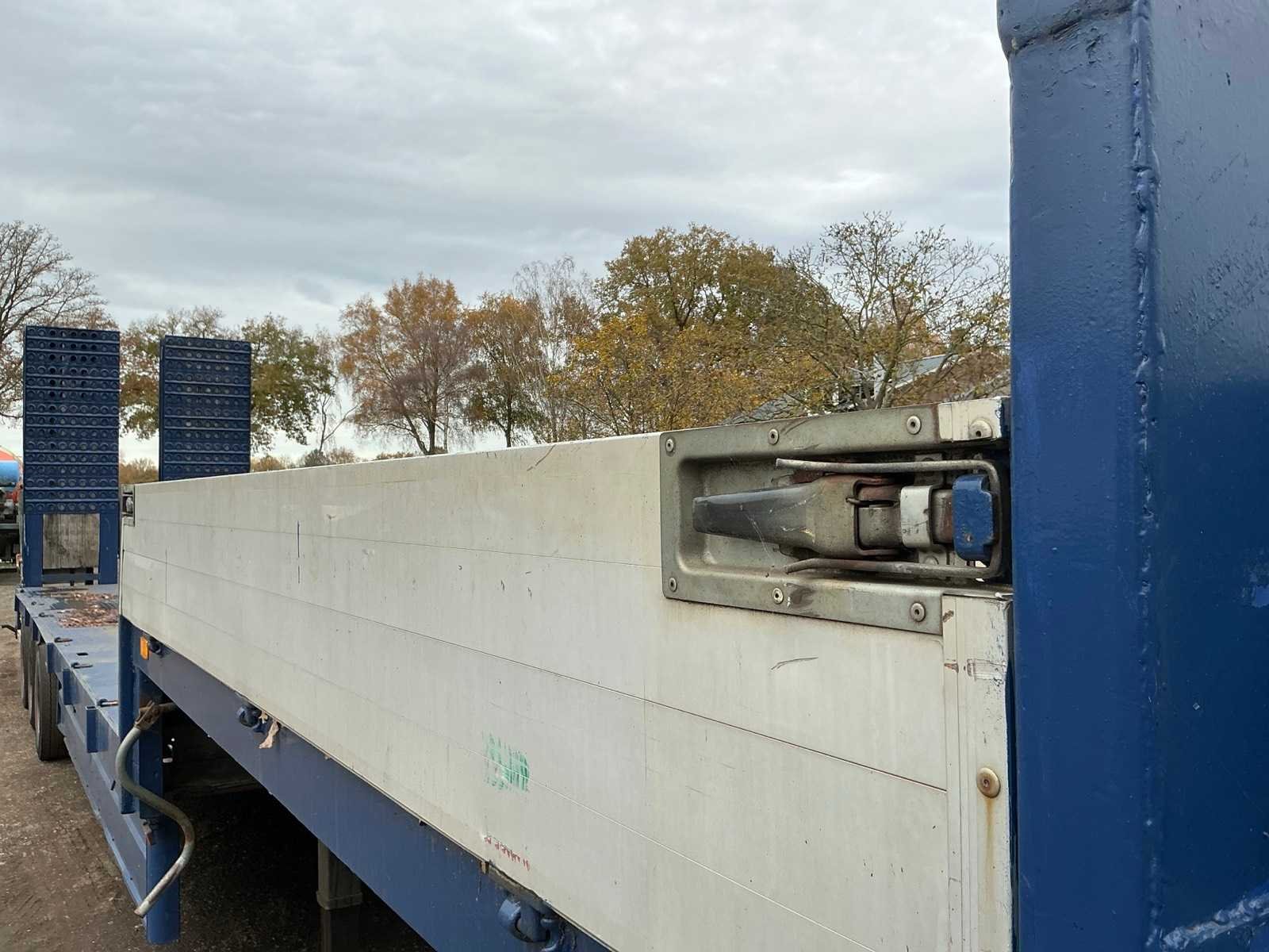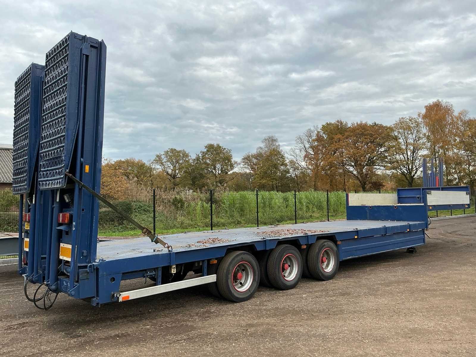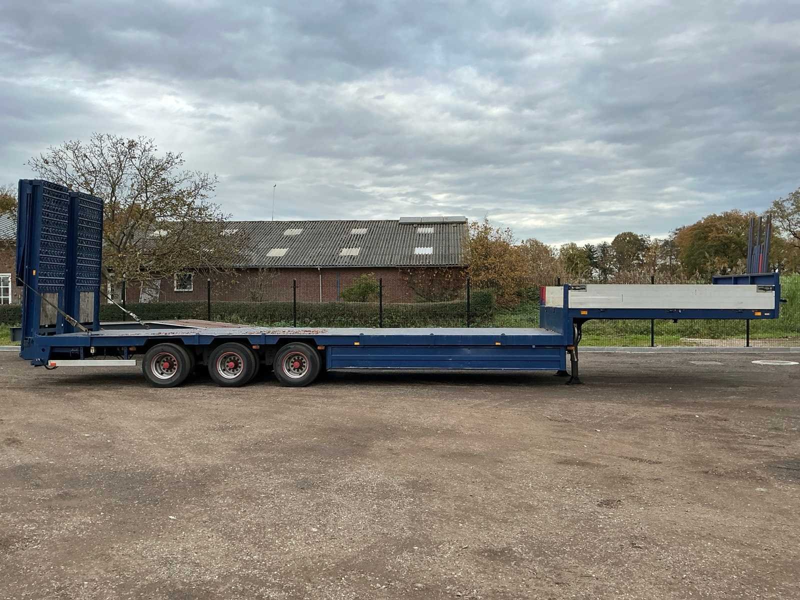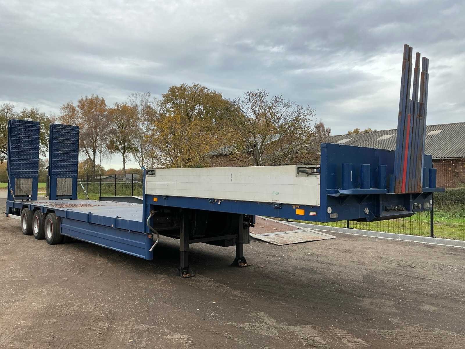 Voorzien van: 3-assen, sjorogen op laadplatform, hydraulische uitklapbare rijplaten, steunpoten, bladgeveerd voor en achter, Michelin banden, BPW Assen, Nato plug, luchtremmen, NL Kenteken Merk: Bulthuis Kenteken: OD-63-00 Laadvermogen: 28230kg Eigen gewicht: 7770kg Aantal assen: 3 Kleur: Blauw Datum eerste toelating: 1981-06-25 Datum eerste toelating (NL): 1981-06-25 APK vervaldatum: 2025-06-21 Zelf rijdend exporteren: Ja Gewicht: 7770 Lengte: 14100 Breedte: 2400 Hoogte: 3700