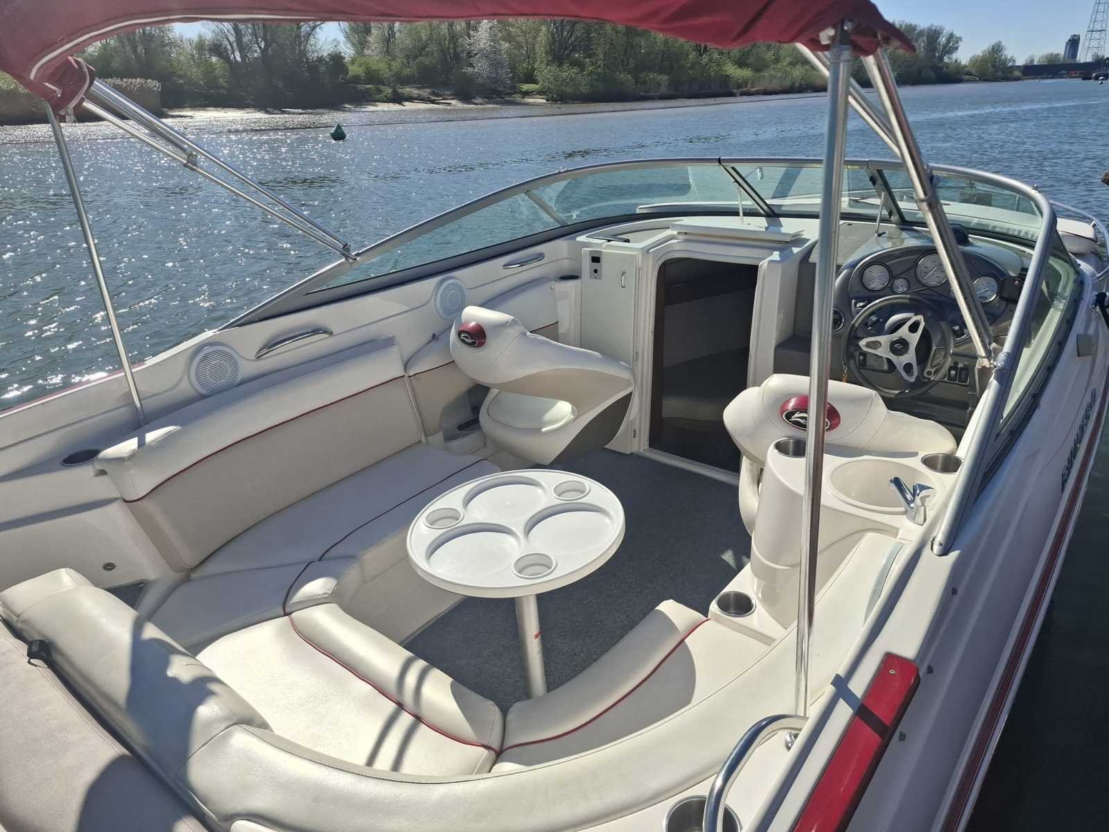 Motor: Volvo Penta 5.7 V8 Lengte x Breedte: 7,98m x 2,54m Aandrijving: Duo-Prop Biminitop: Aanwezig Zonnedek: Aanwezig Kussenset: Compleet Elektrische ankerlier: Aanwezig Buitendouche: Aanwezig Merk: Rinker Type: 246 Captiva Brandstof: Benzine Bouwjaar: 2007 Type motor: Volvo Penta 5.7 V8 Aantal cilinders: 8